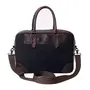 his is a handmadeblack coloured Portfolio / Office Bag / Laptop Bag / Travel Bag made from 100% genuine full grain leather & canvas. Features of the bag: It closes fully with a zipper on top. Inside the bag there is a padded laptop compartment that is fastened with a small velcro flap & fits a 15 inch laptop or ipad apart from the main large compartment that can carry all your office essentials like files folders documents etc. It is also suitable for a weekend getaway as it can accommodate a set of clothes. Also there are two open pockets inside for cellphone and small stuff and a zipper compartment at the back. The bag can be carried in hand or over your shoulder using the comfortable adjustable detachable shoulder strap. Dimensions of the bag: Length: 15.35 inches Height: 11.2 inches Width (at base): 4.3 inches