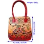 Handcrafted from Genuine Leather a Beautiful Ethnic Art of West Bengal. Design on Both Sides Double Handle One Main Zipper compartment One Zipper pocket in Back and Two zipper Compartments inside Closes fully with zip. This purse is a classic example of age old Shantiniketan craft which was introduced in West Bengal India during the 1940s. The Shantiniketan style evolved as a result of the Art Movement and these products have now become world famous for their applique batik and embossed craft work. The process of burnishing the leather gives it an elegant sheen and brings out the colors. The major embossing craft is done by hand and is an intricate process. After the final leather made it is then stitched into the desired product coated with a lacquer finish for making the product shiny and long lasting. We are happy for your interest SHANTINIKETAN EMBOSSED LEATHER PRODUCTS and artist of Shantinikan thanks to you.