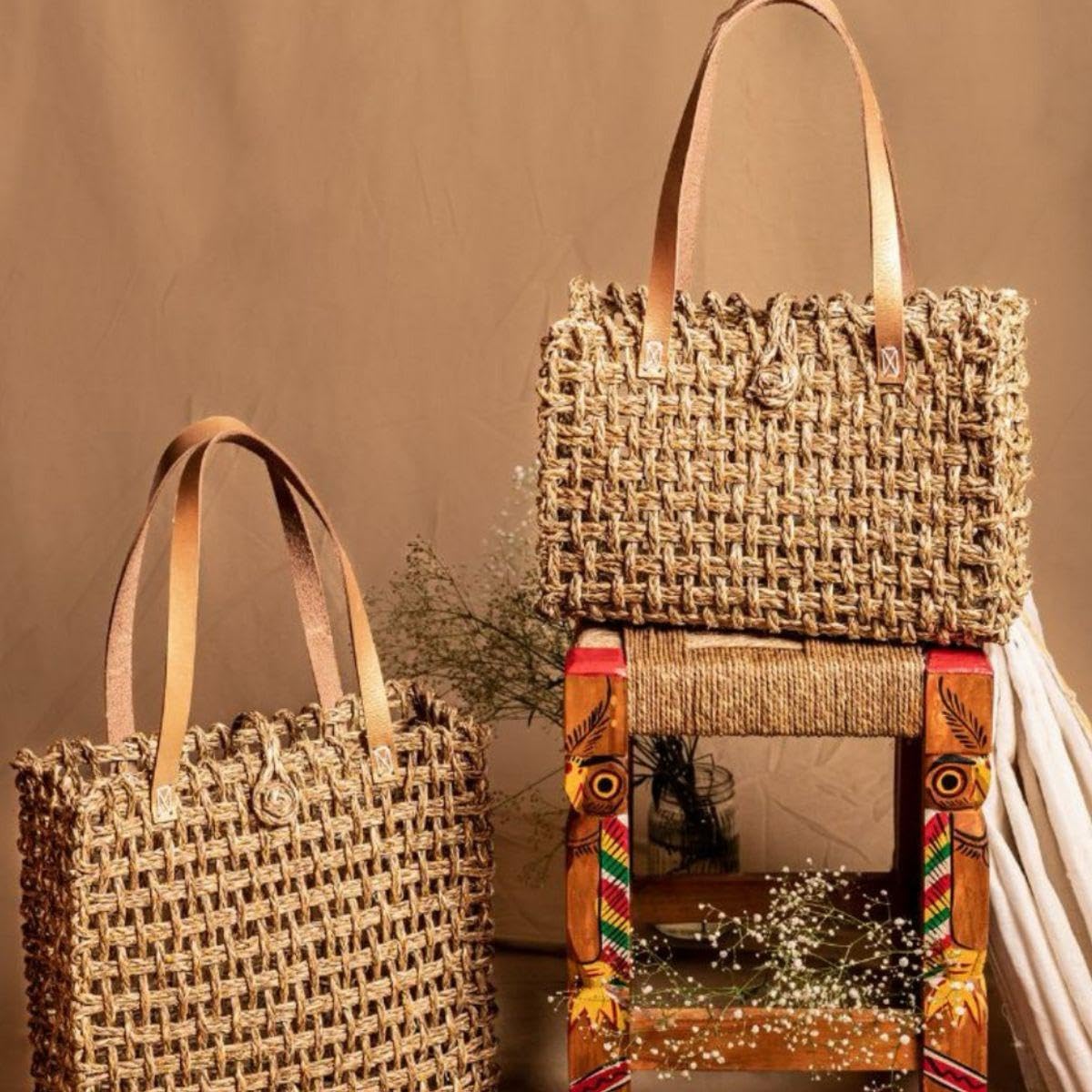 SIKKI CRAFThaat Handmade Zari Mesh Sabai Grass Bag |The natural Sabai zari mesh bag is a gorgeous blend of rustic charm and elegant detailing. Made from Sabai grass the bag features a delicate mesh design with hints of shimmering zari thread. It's perfect for adding a touch of glamour to your everyday style or for special occasions. Get ready to turn heads with this unique and beautiful accessory.