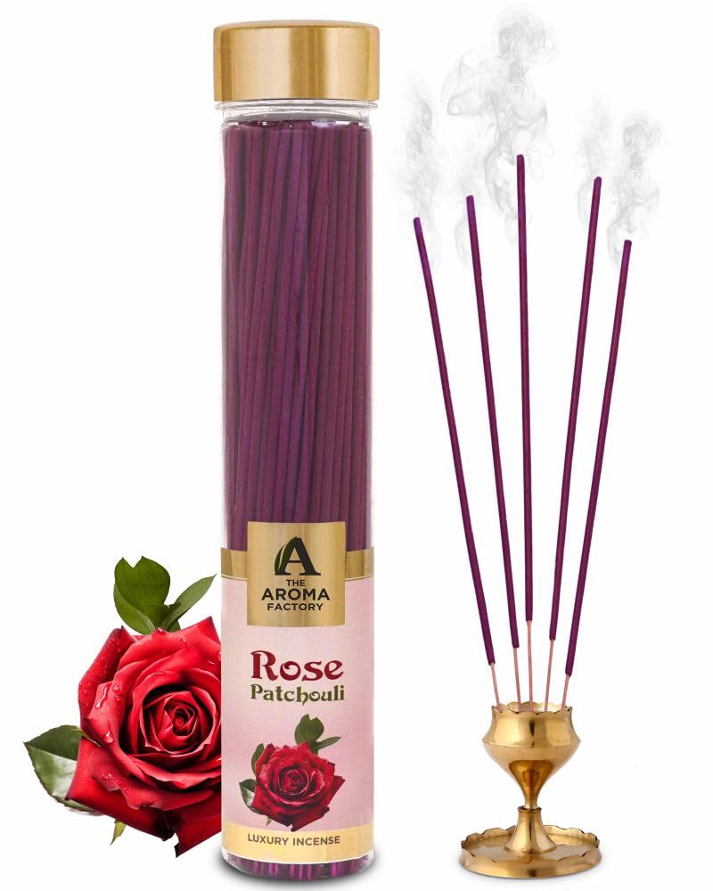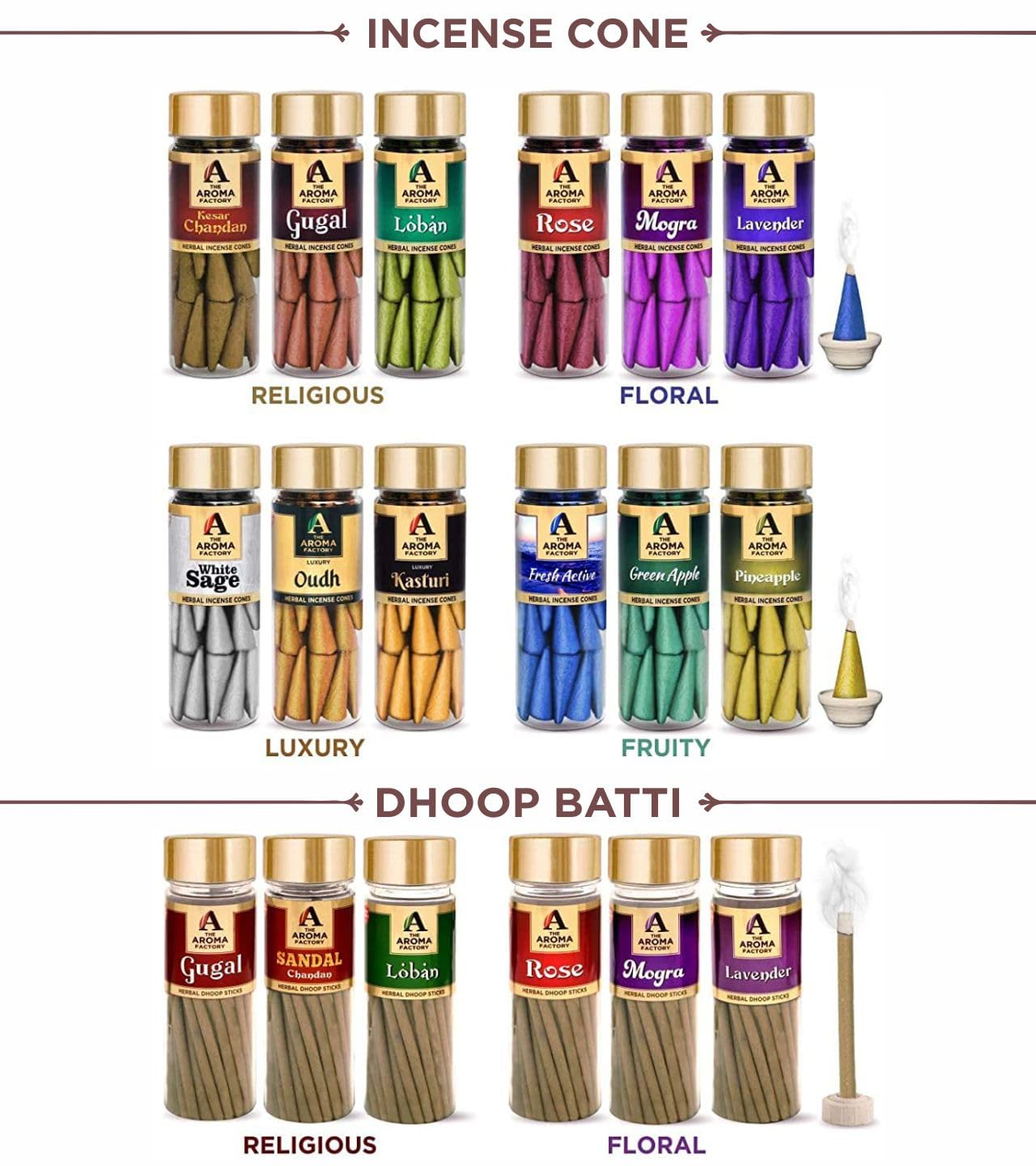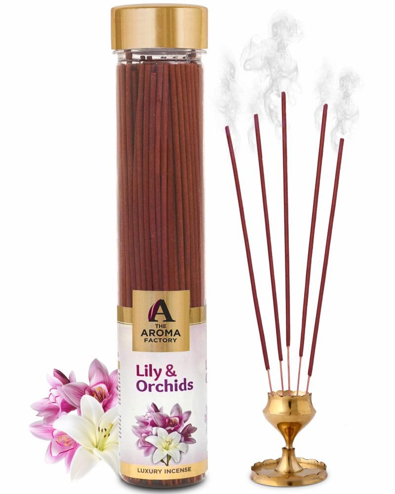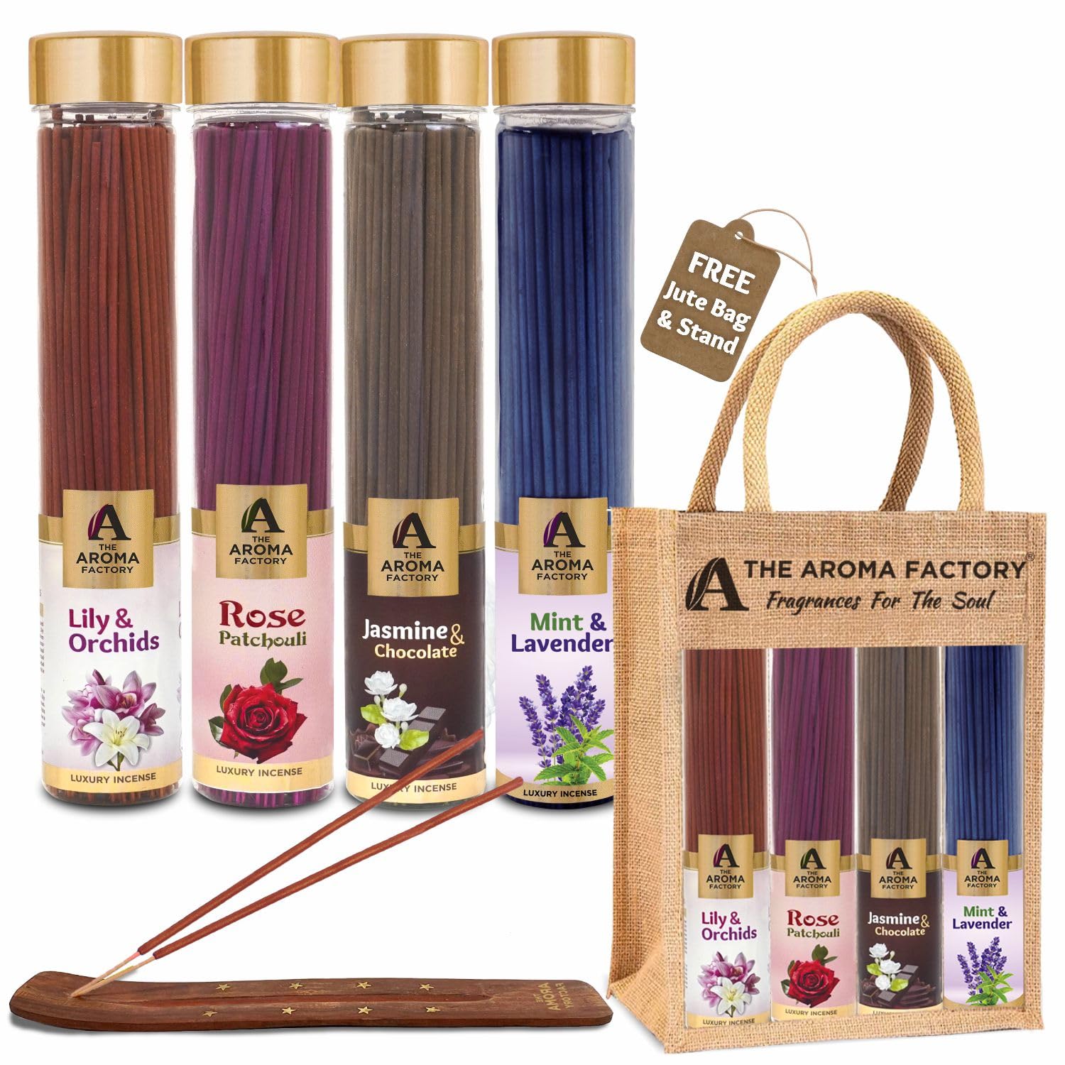 Envelop your sacred space in the divine essence of Lily & Orchid Rose Patchouli Jasmine & Chocolate & Mint & Lavender with The Aroma Factory Organic Incense Sticks. Meticulously crafted with purity and reverence these Herbal Agarbatti are designed to elevate your pooja rituals infusing your surroundings with heavenly fragrances. Each bottle contains 4 packs of 100g ensuring an abundant supply of aromatic tranquility.Free from charcoal and sulphur these incense sticks offer a pure and natural fragrance allowing you to deepen your spiritual connection. The delicate floral notes of Rose intertwine with the soothing warmth of Kesar Chandan while the invigorating freshness of Fresh Active and the sacred aura of Palo Santo create a harmonious ambiance of serenity and sanctity. Transform your pooja ceremonies into moments of profound connection and reverence with The Aroma Factory Organic Incense Sticks. Let the enchanting fragrances transport you to a realm of spiritual harmony and inner peace guiding you on a journey of divine blessing and enlightenment.