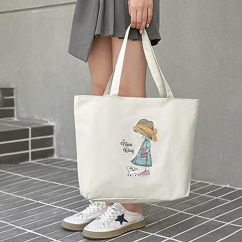 Fashionable And Spacious: Canvas Tote Bag - Your Stylish Companion For College And Office Elevate Your Fashion Game With The Tote Bag For Women And Girls. Designed To Seamlessly Blend Style And Functionality This Canvas Handbag Boasts A Large Capacity Making It An Ideal Choice For Carrying Your Essentials To College Or The Office. The Delightful "Nice Day Girl" Print Adds A Touch Of Charm Making It A Versatile Accessory For Your Everyday Adventures.