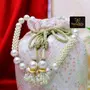 Trendifly handmade embroidered with Dopian & Pearl beaded inspired by nature our artisans have crafted this Embroidery Work Potli Bag. It's our approach to bring substitute to the modern day clutches hence crafting this opulent potli bag.Craft: Embroidery WORK. VERSATILE: Trendifly Potli Bags are designed for ladies to carry at any party or special occasions at any time of the day. Even brides love to carry this at their weddings as a purse. The closure is with a drawstring that is adorned by beautiful pearl tassels Outer fabric used is beautiful Cream-Gold coloured dupion silk fabric. It has a beaded Pearl handle & drawstrings are made out of Golden lace and beaded tassel with pearl.GREAT GIFTING OPTION: You can gift this to your loved ones. At weddings you can even use this as a return gift.