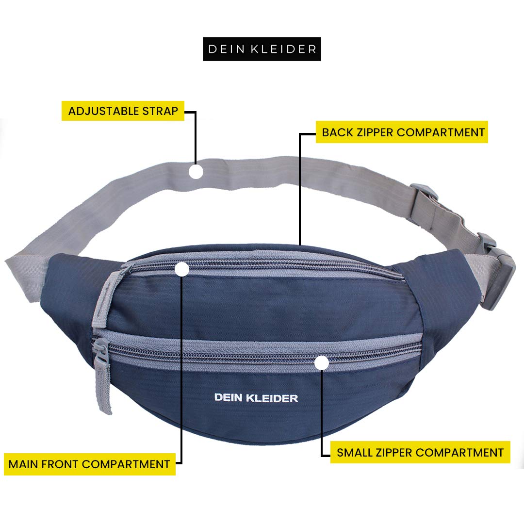 WATER & DIRT RESISTANT: This waist pouch by Dein Kleider is ideal for people who are adventurous and always on the go. Its padded storage is resistant to water dirt and even a slash by sharp objects so you dont have to worry about anything. This bag is d