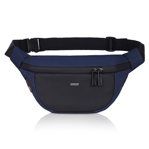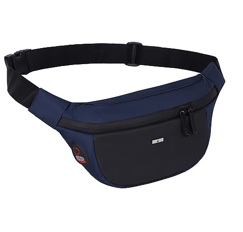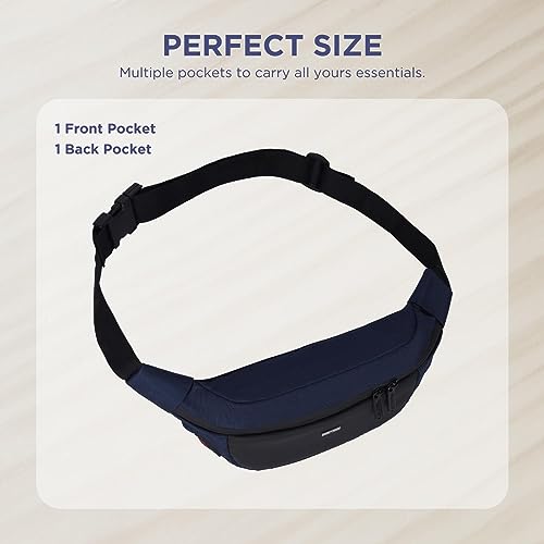 WILDHORN 2.4L Waist Bag for Men Women I Headphone Hole I Ultra Strong Stitching, Sturdy Zippers, Waterproof, Fanny Pack for Hiking Travel Camping Running Sports with Adjustable Strap, Navy & Black, M,