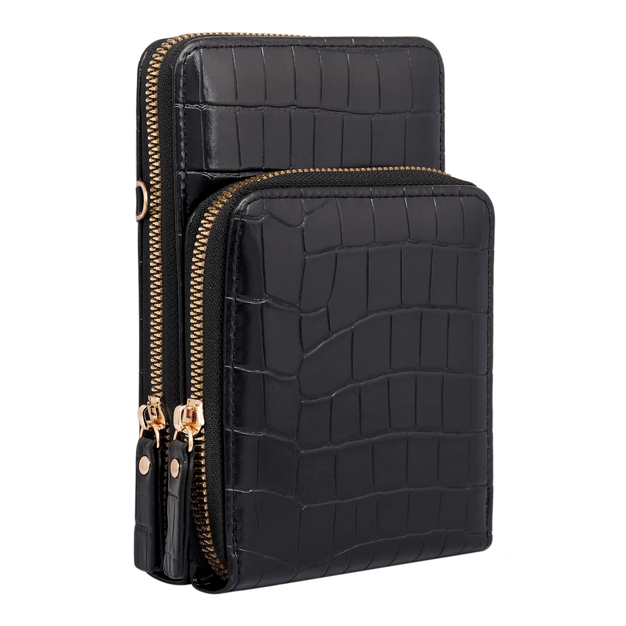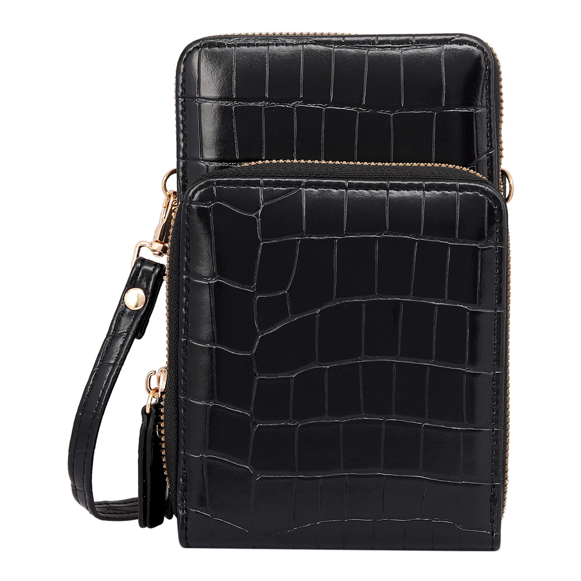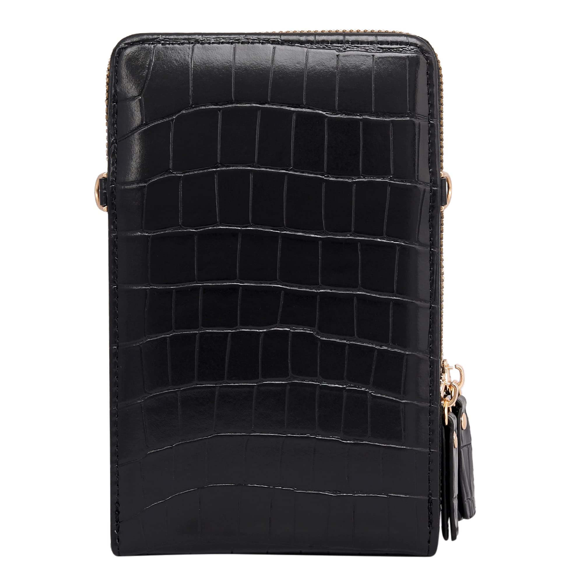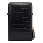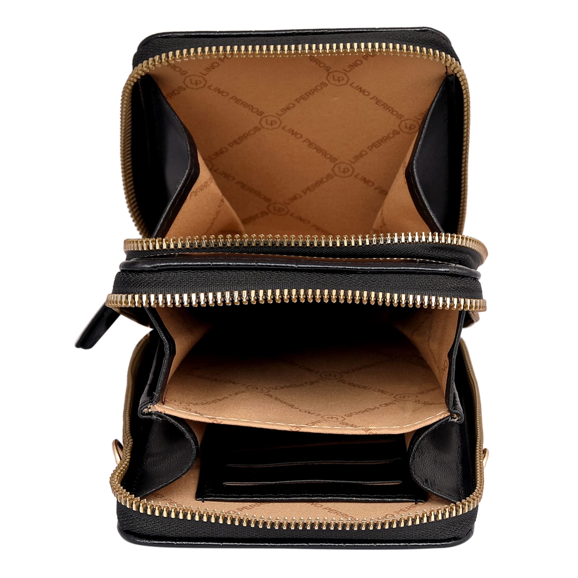 Made of high quality croc embossed PU this Lino Perros black women sling bag is stylish durable and light weight. It has 2 zippered compartments with adjustable sling strap. The main compartment has adequate space for keeping mobile phone lipstick and sanitizer and so on along with 6 card holder pockets. The gold finished trims add to its elegance. The Lino Perros is known for their excellent quality and design.