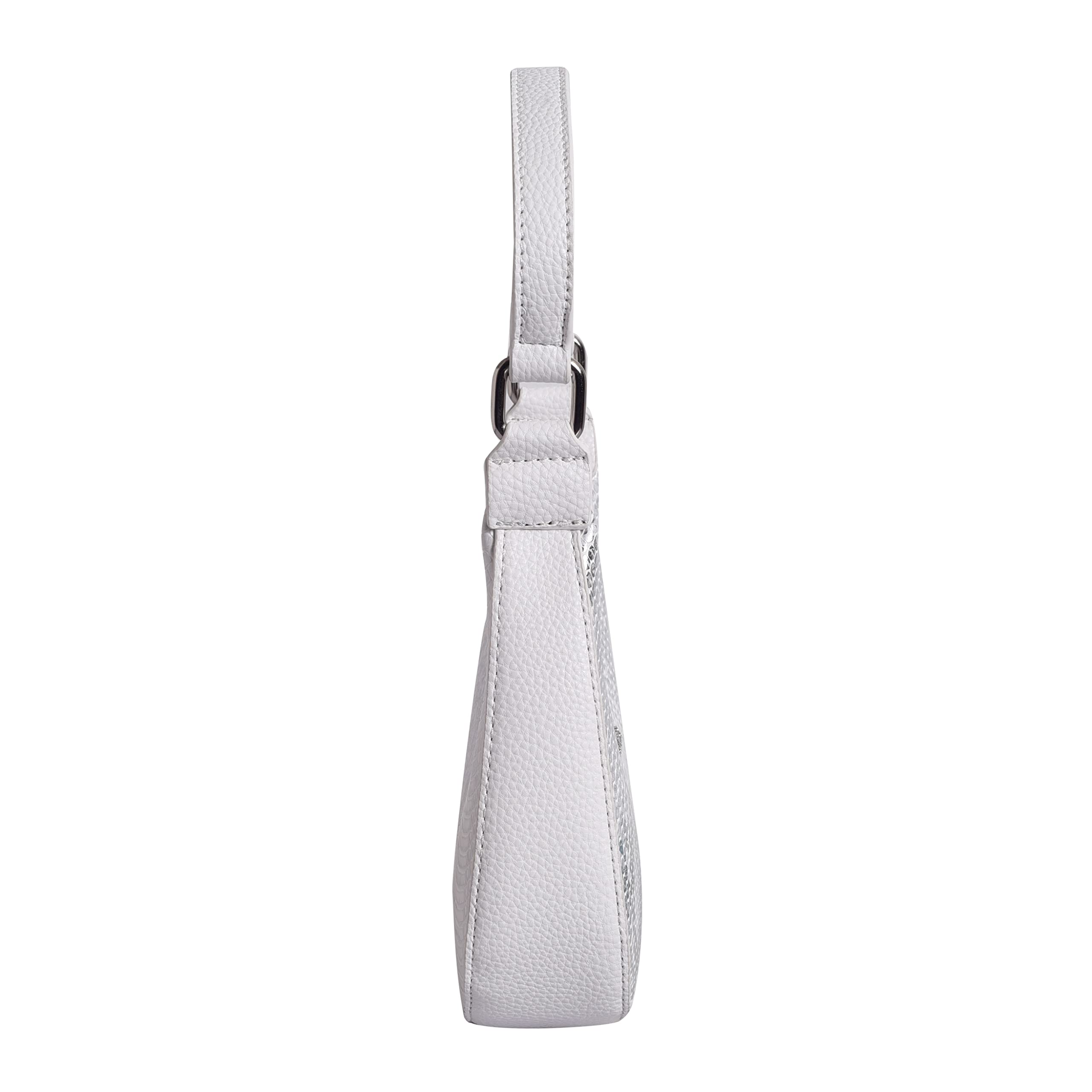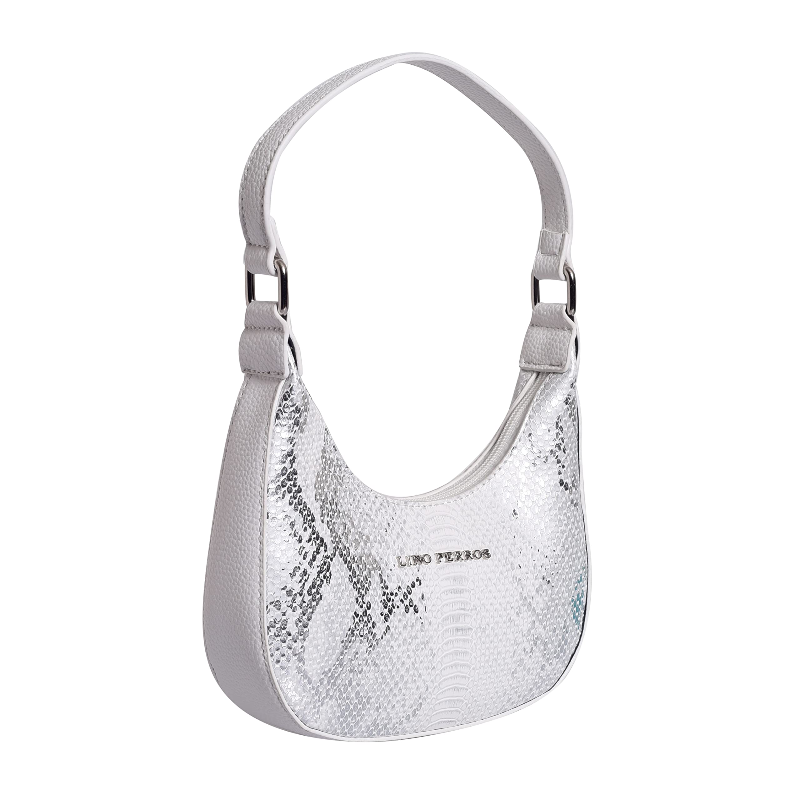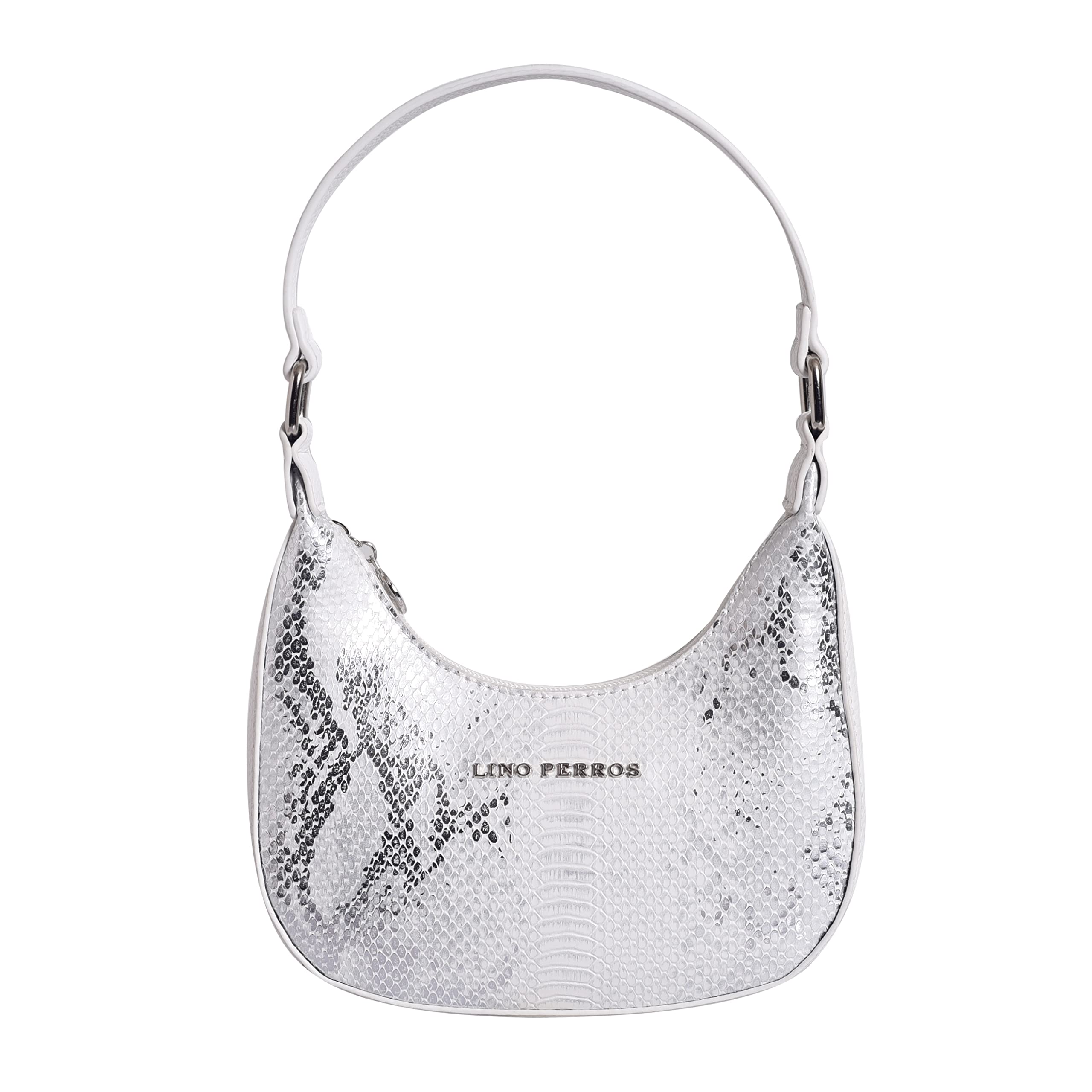 Enrich your look with this women white shiny & classy snake embossed textured PU shoulder bag from the brand Lino Perros. This bag is durable and ample interior space with one main compartment and one zippered interior coin pocket. quality of trims and sleek handle adds an edge to this bag. Itâs a perfect accessory that goes with all types outfits. The Lino Perros brand is known for their excellent quality and design.