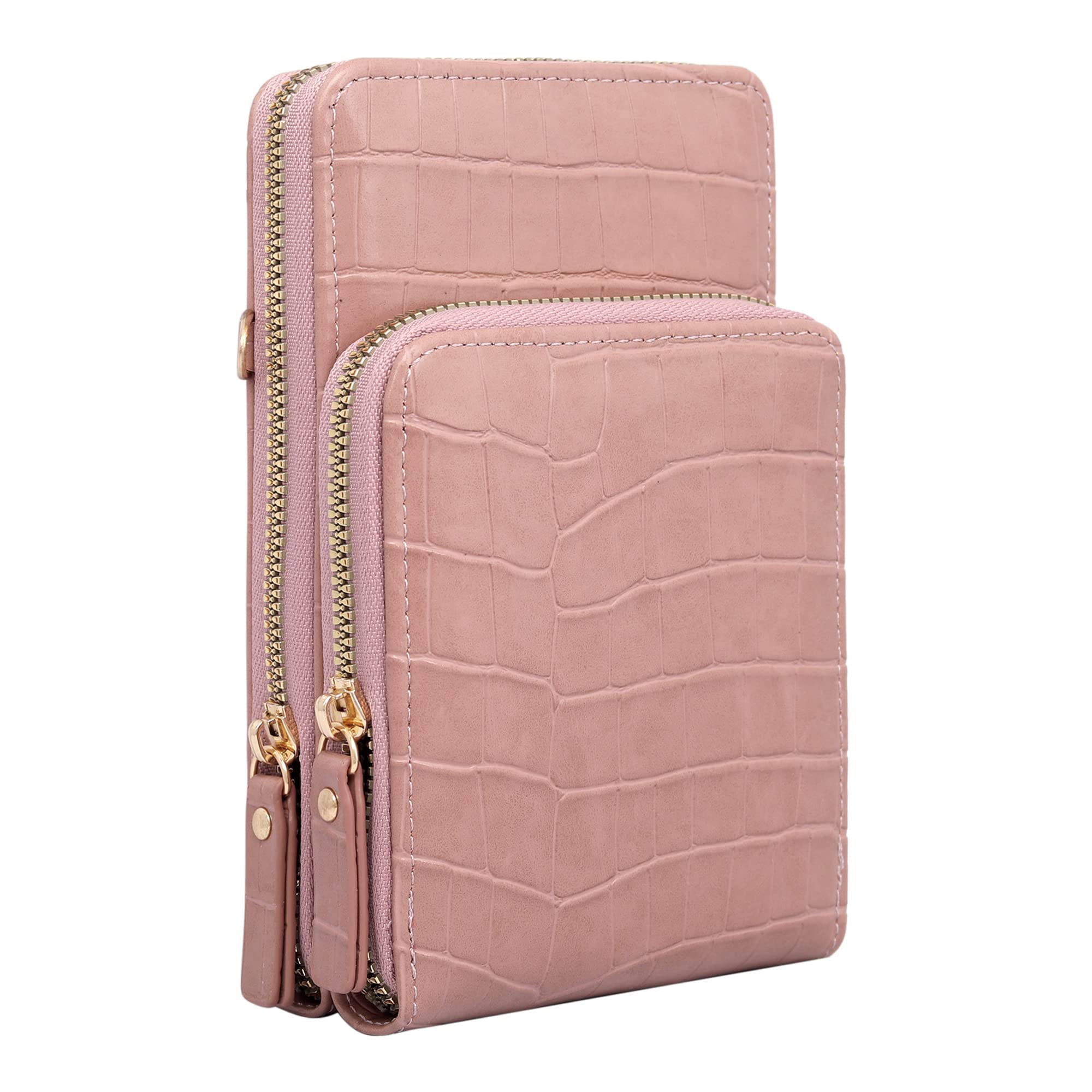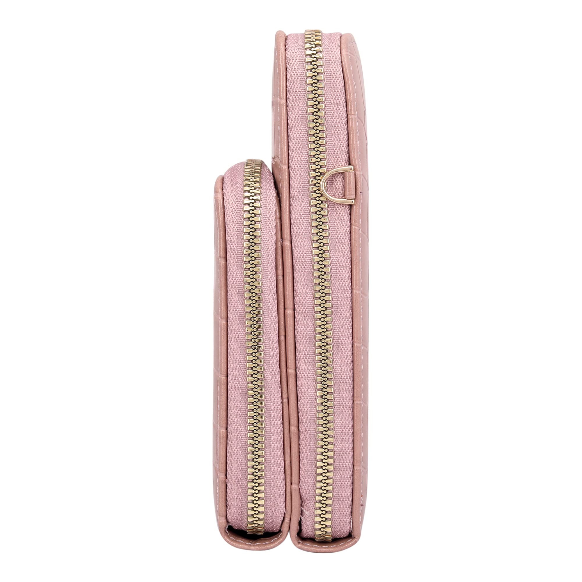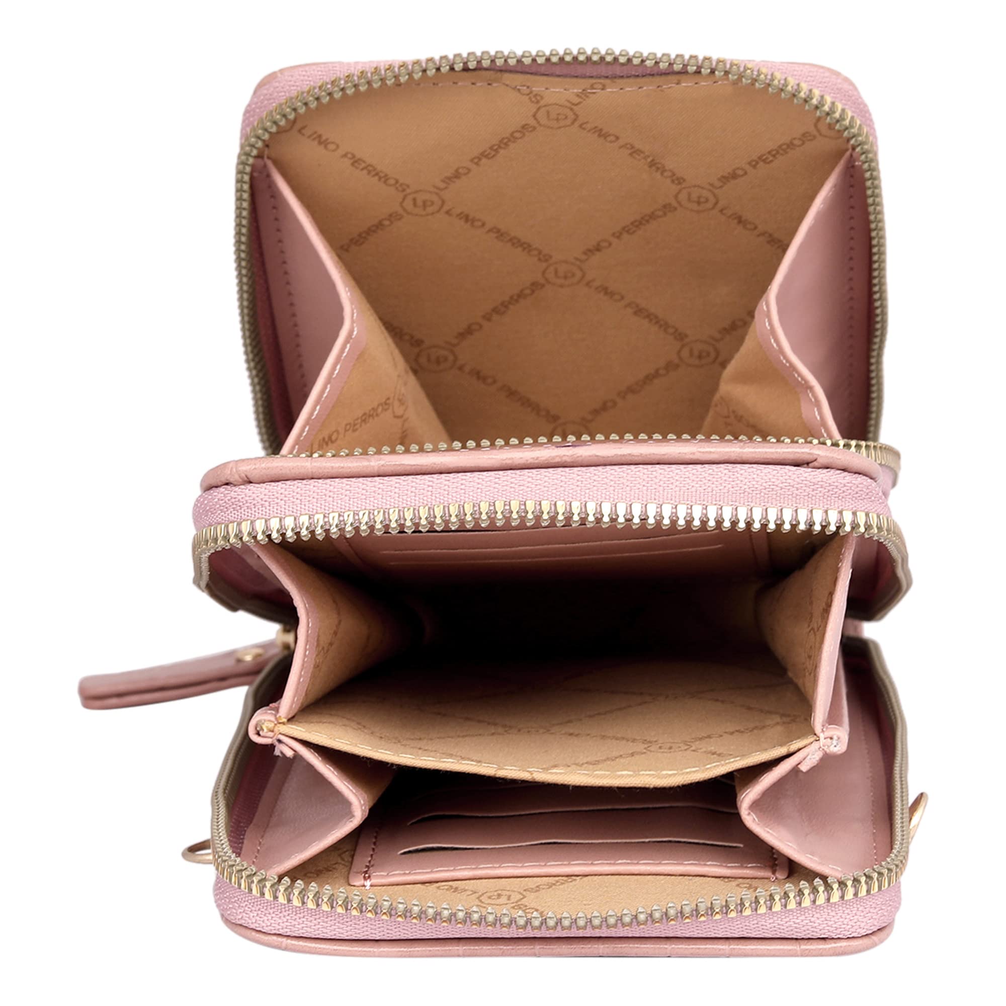 Made of high quality croc embossed PU this Lino Perros peach women sling bag is stylish durable and light weight. It has 2 zippered compartments with adjustable sling strap. The main compartment has adequate space for keeping mobile phone lipstick and sanitizer and so on along with 6 card holder pockets. The gold finished trims add to its elegance. The Lino Perros is known for their excellent quality and design.
