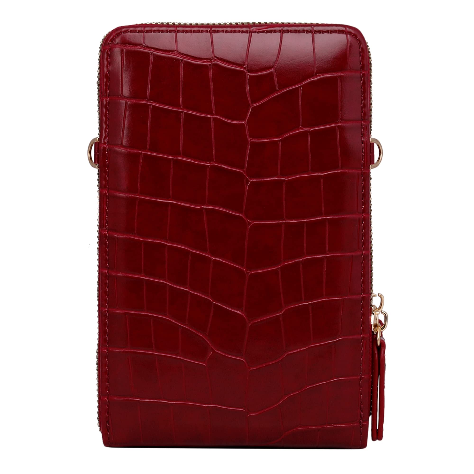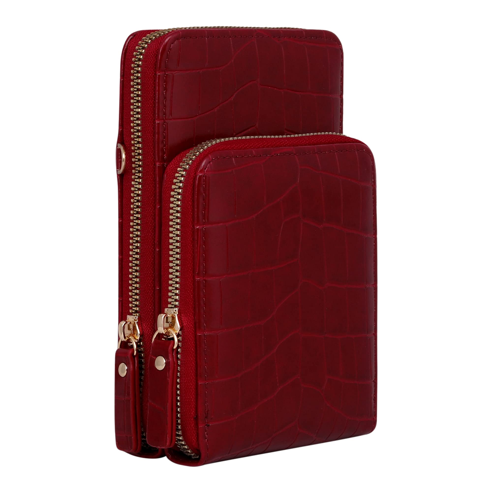 Made of high quality croc embossed PU this Lino Perros red women sling bag is stylish durable and light weight. It has 2 zippered compartments with adjustable sling strap. The main compartment has adequate space for keeping mobile phone lipstick and sanitizer and so on along with 6 card holder pockets. The gold finished trims add to its elegance. The Lino Perros is known for their excellent quality and design.