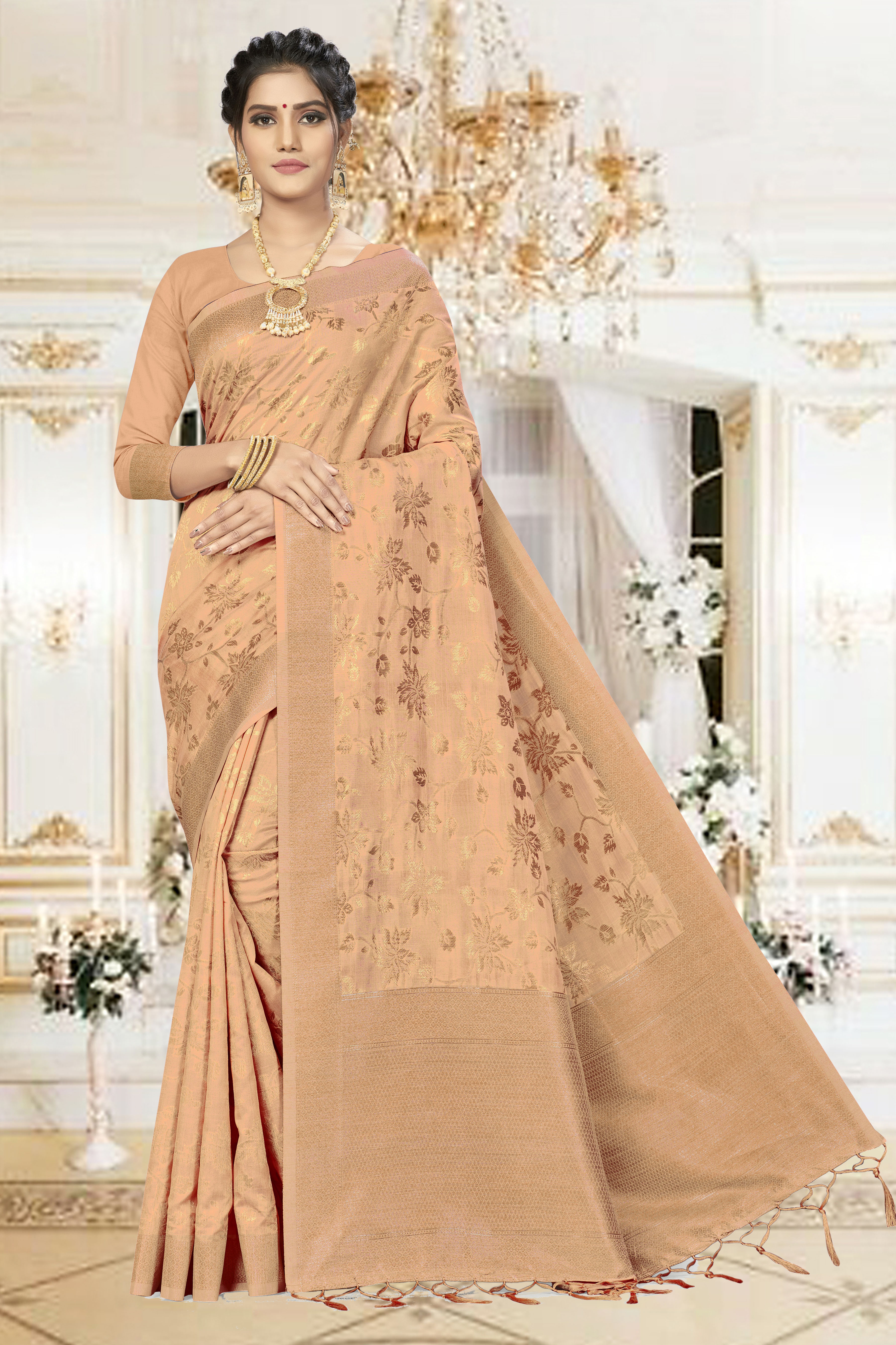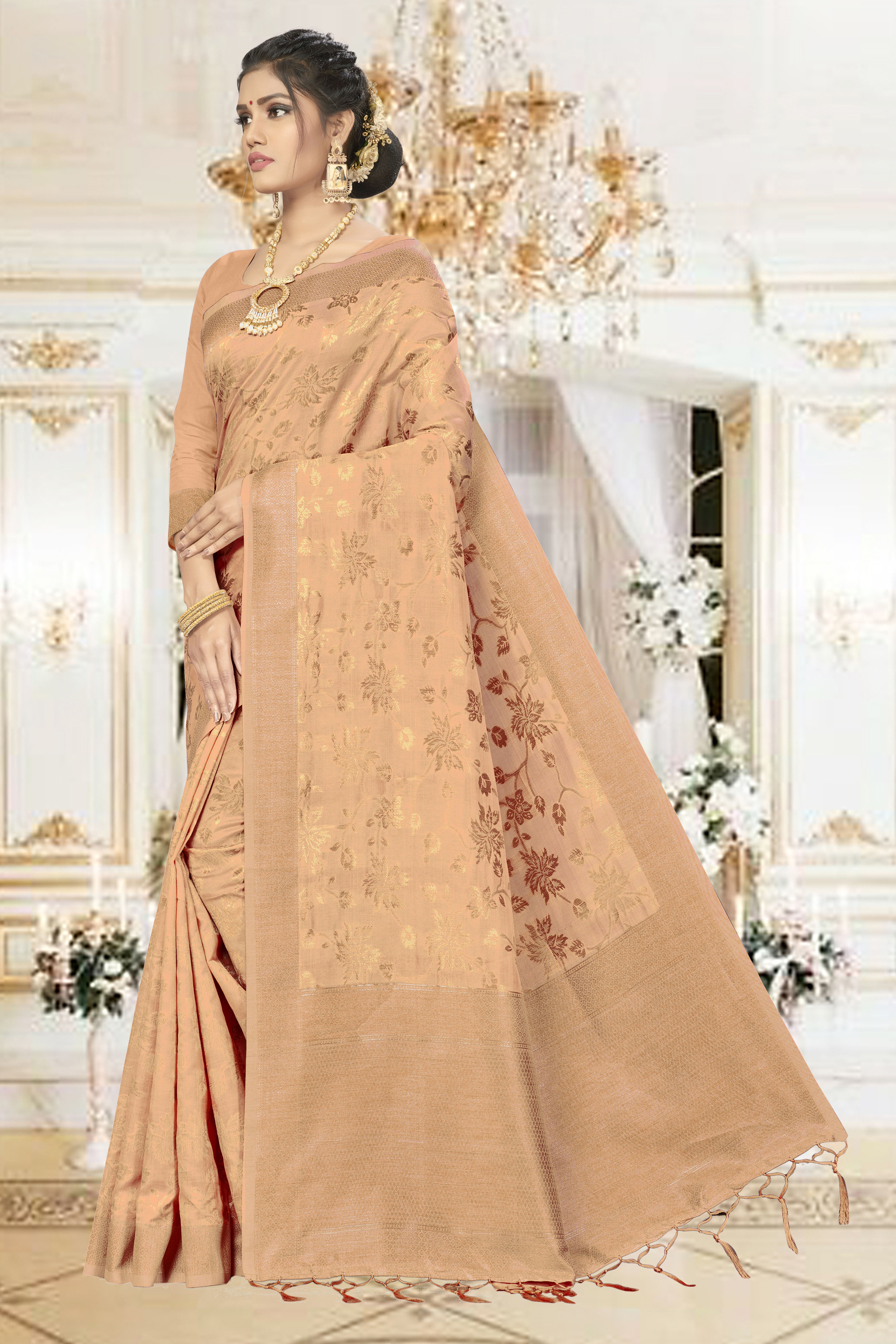 AASTHA FASHION Fashion Dream Womens BEIGE BANARASI SILK Saree | Soft & Elegant Traditional Wear