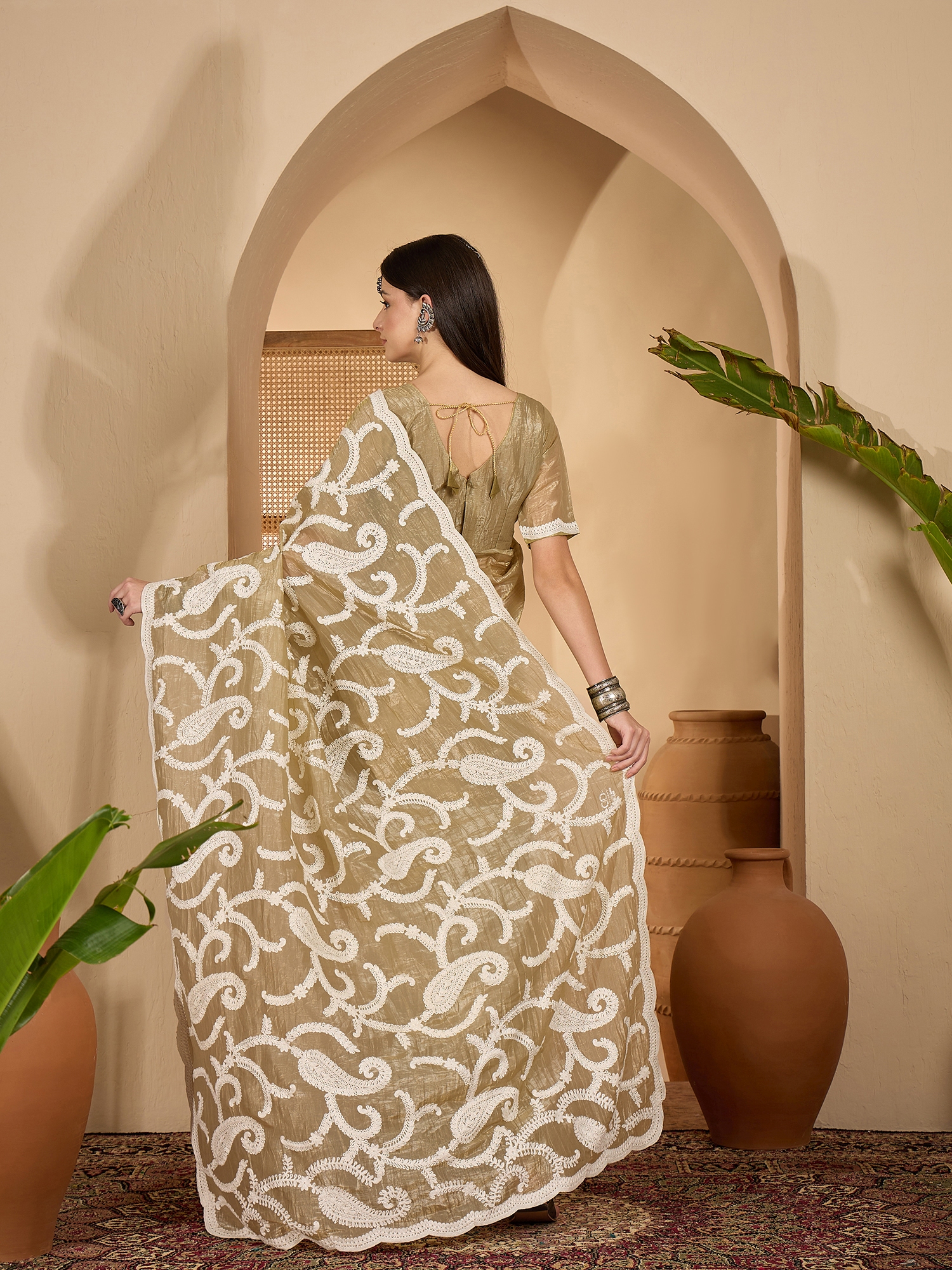 • Saree Fabric-Gold Crush ,Blouse Fabric-Gold Crush