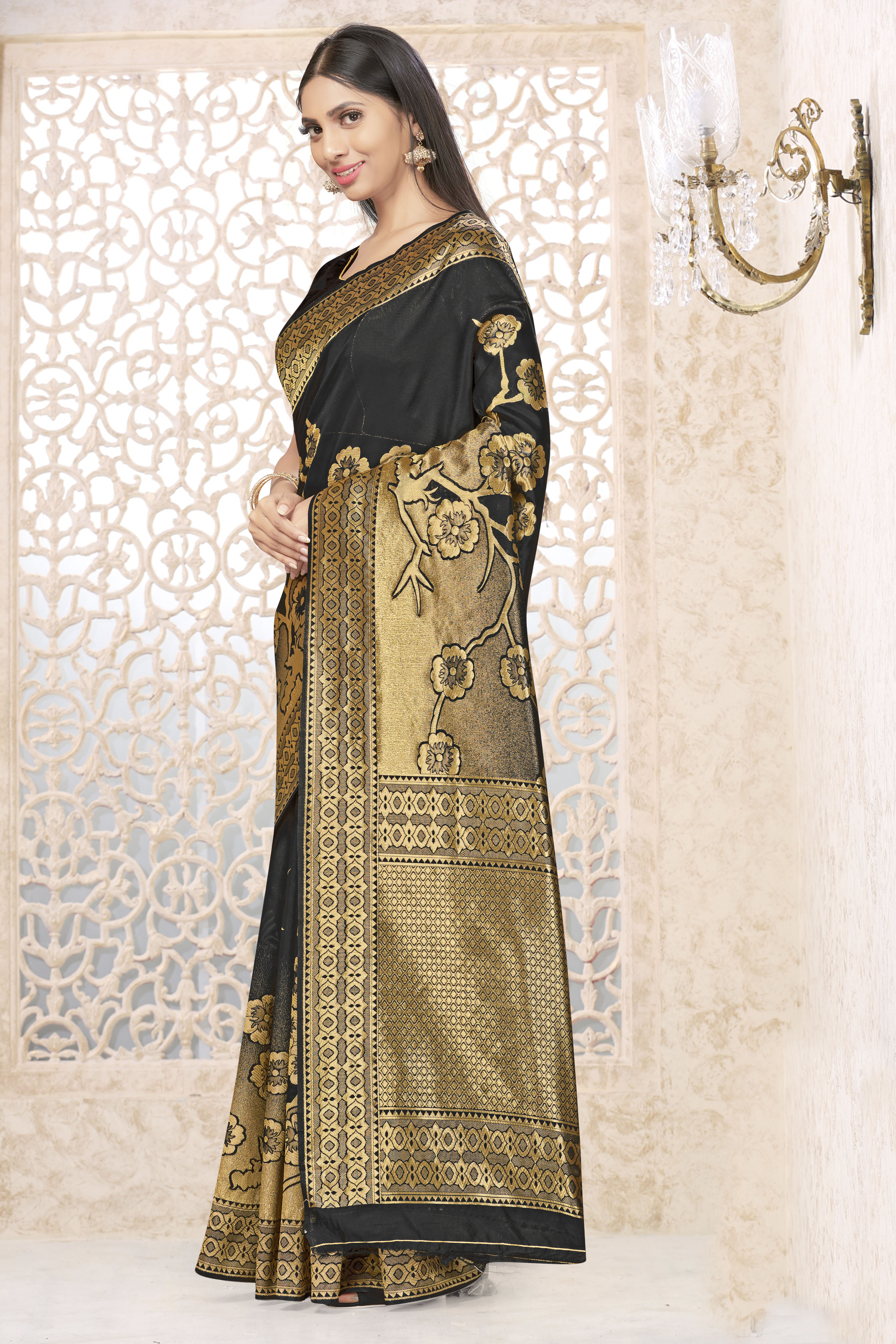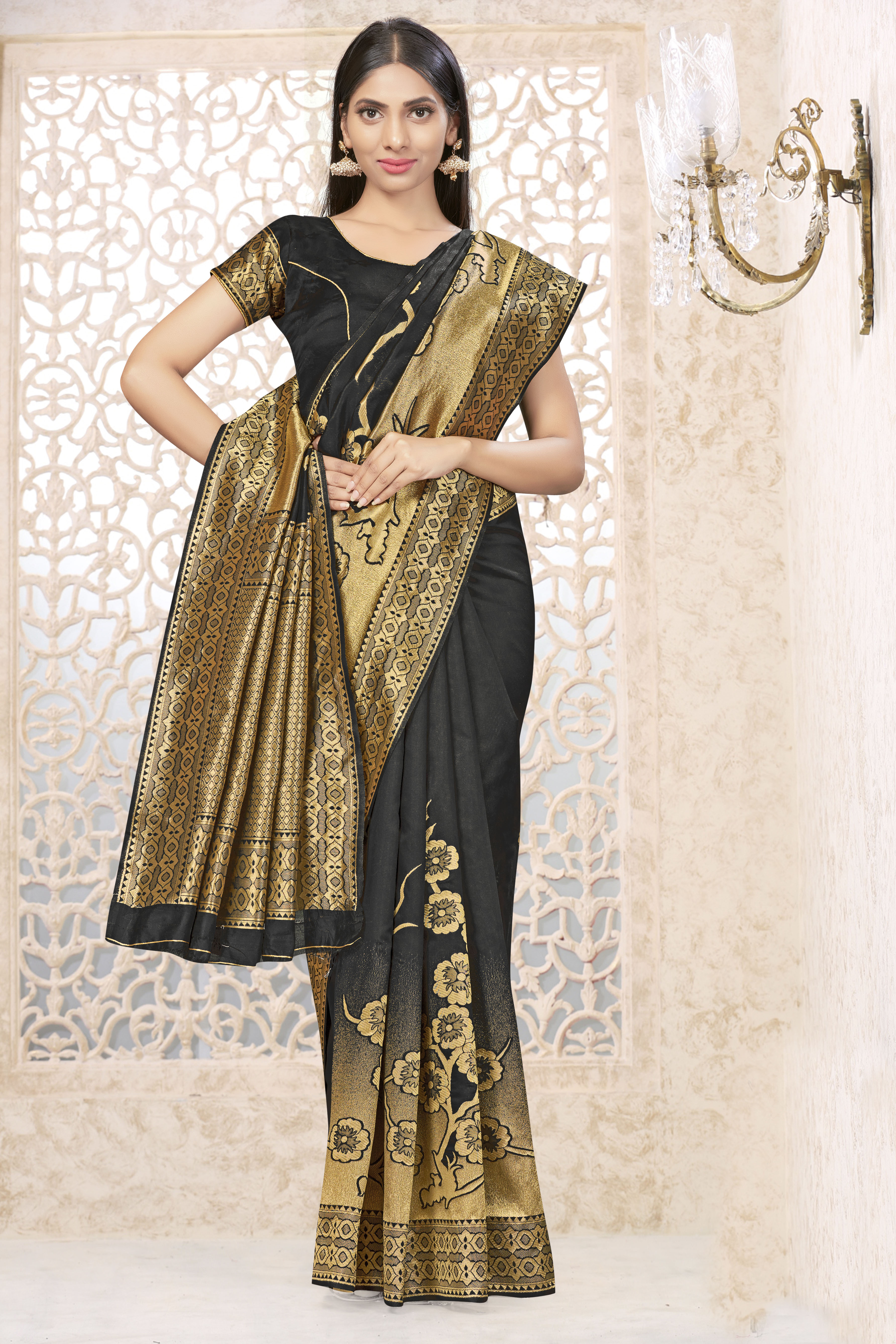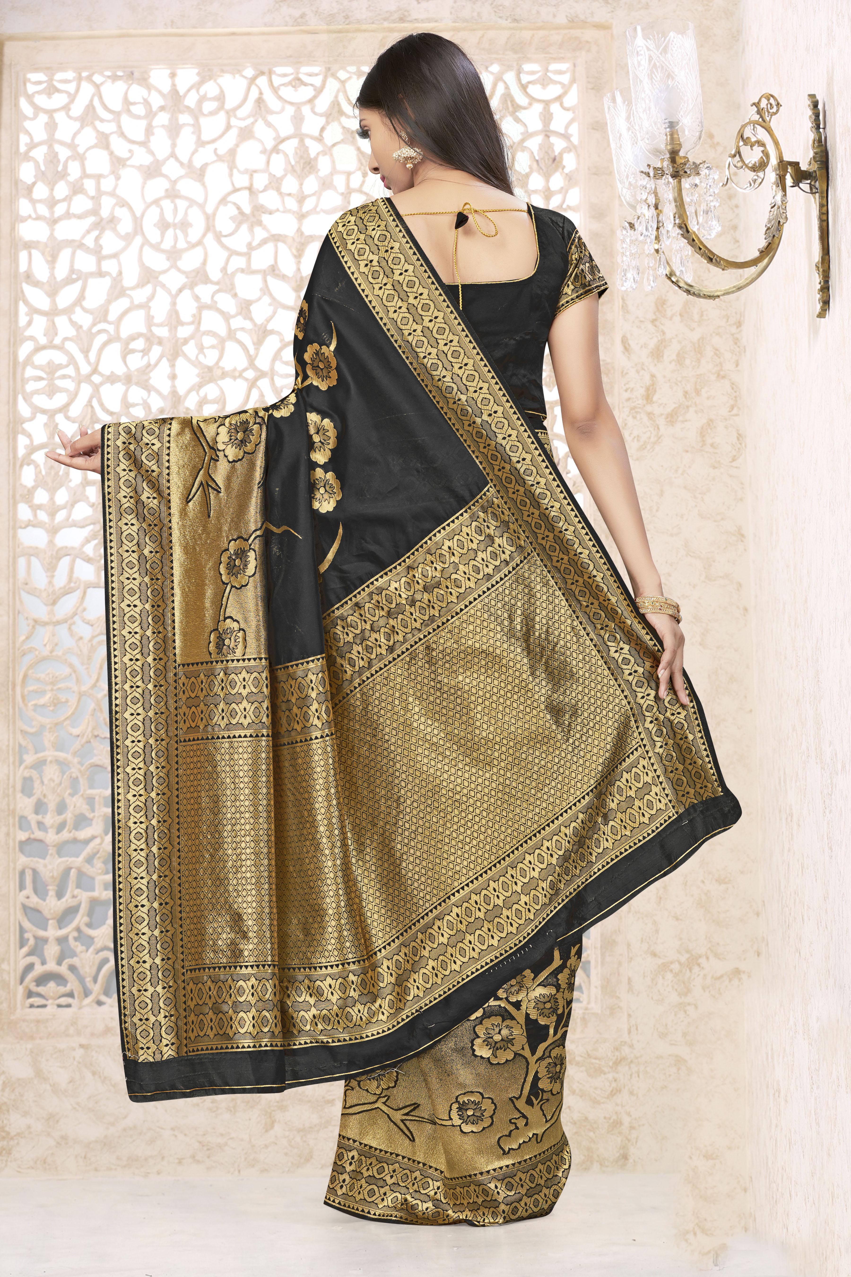 AASTHA FASHION Fashion Dream Womens Black BANARASI SILK Saree | Soft & Elegant Traditional Wear