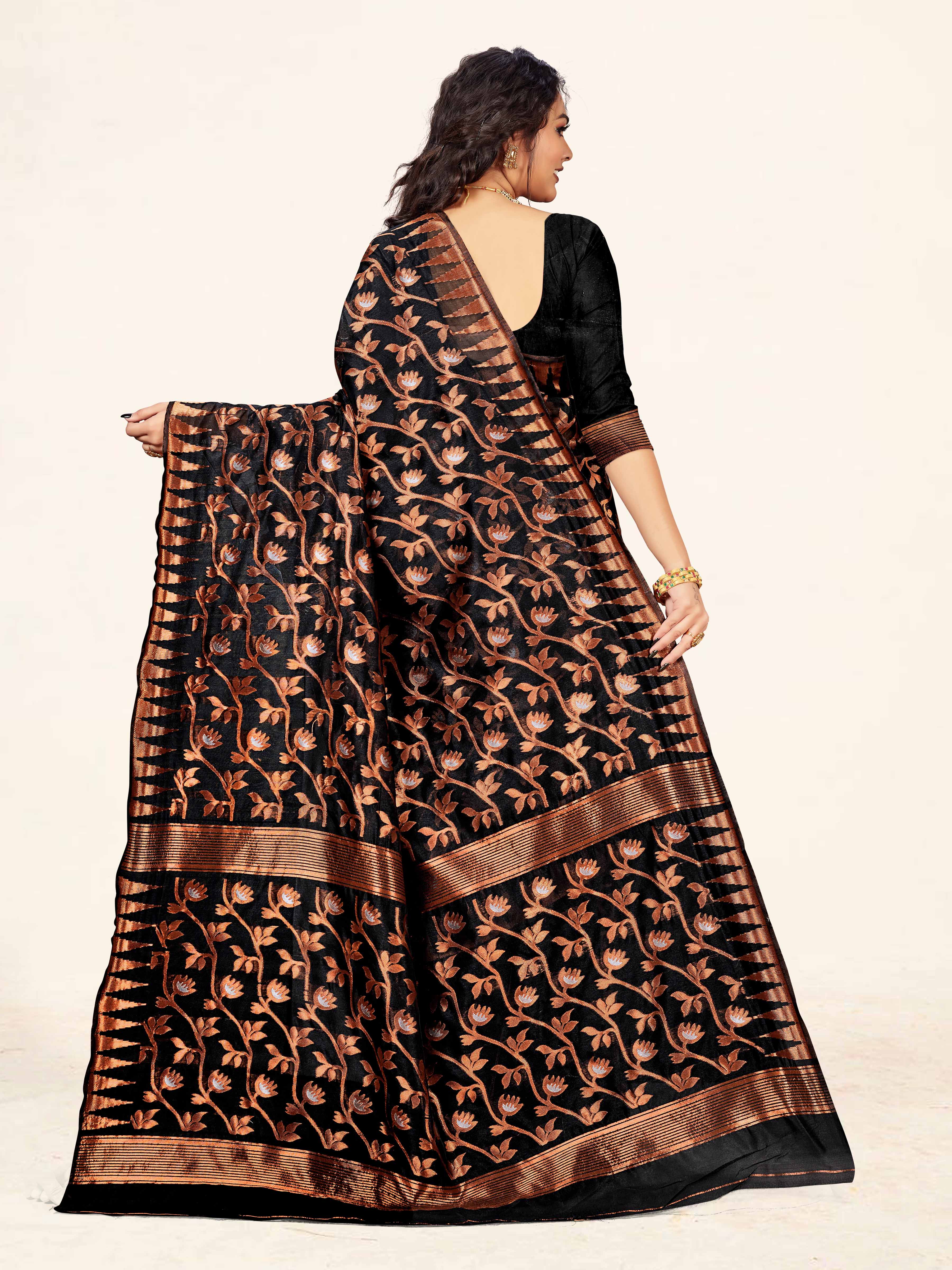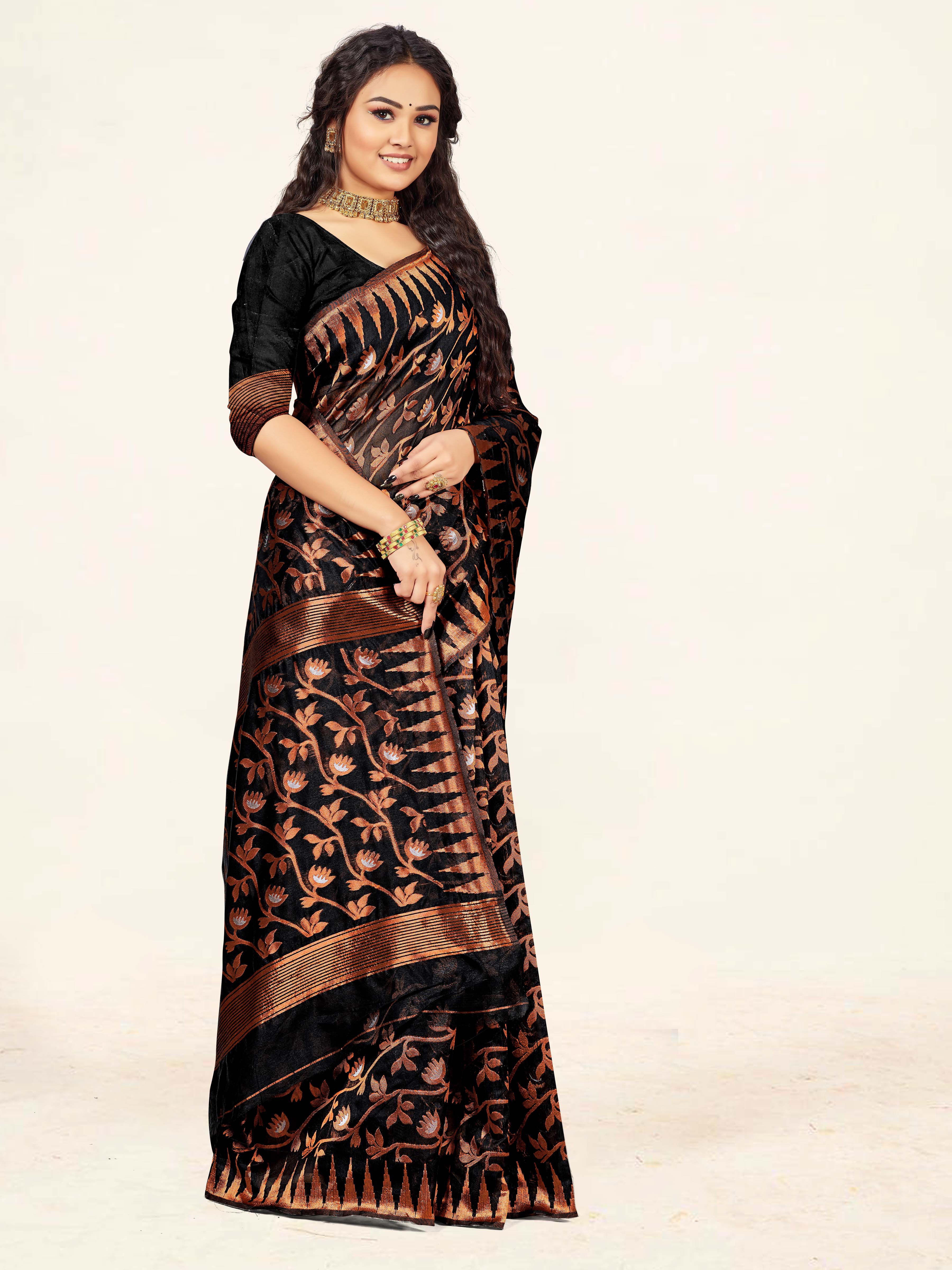 AASTHA FASHION Fashion Dream Womens Black Cotton Saree | Soft & Elegant Traditional Wear