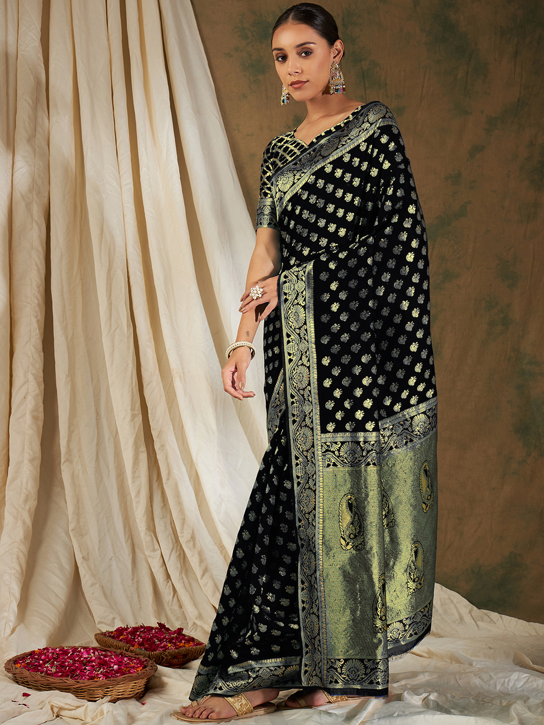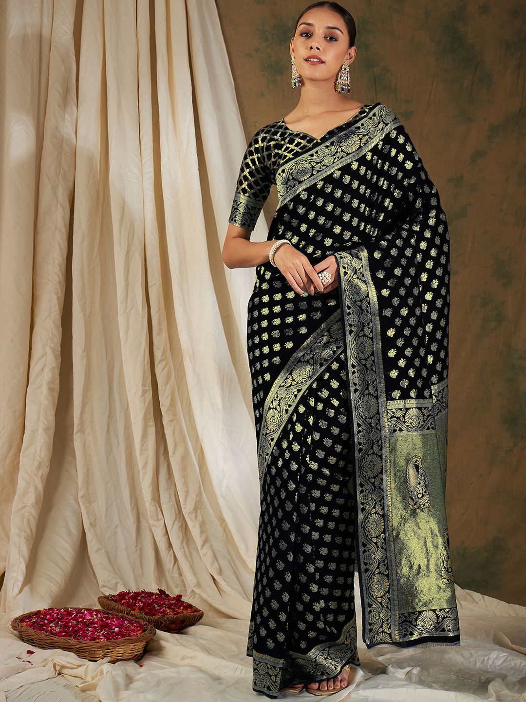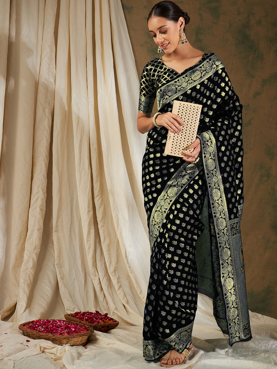 AASTHA FASHION Fashion Dream Womens Black Kanjivaram Silk Saree | Soft & Elegant Traditional Wear