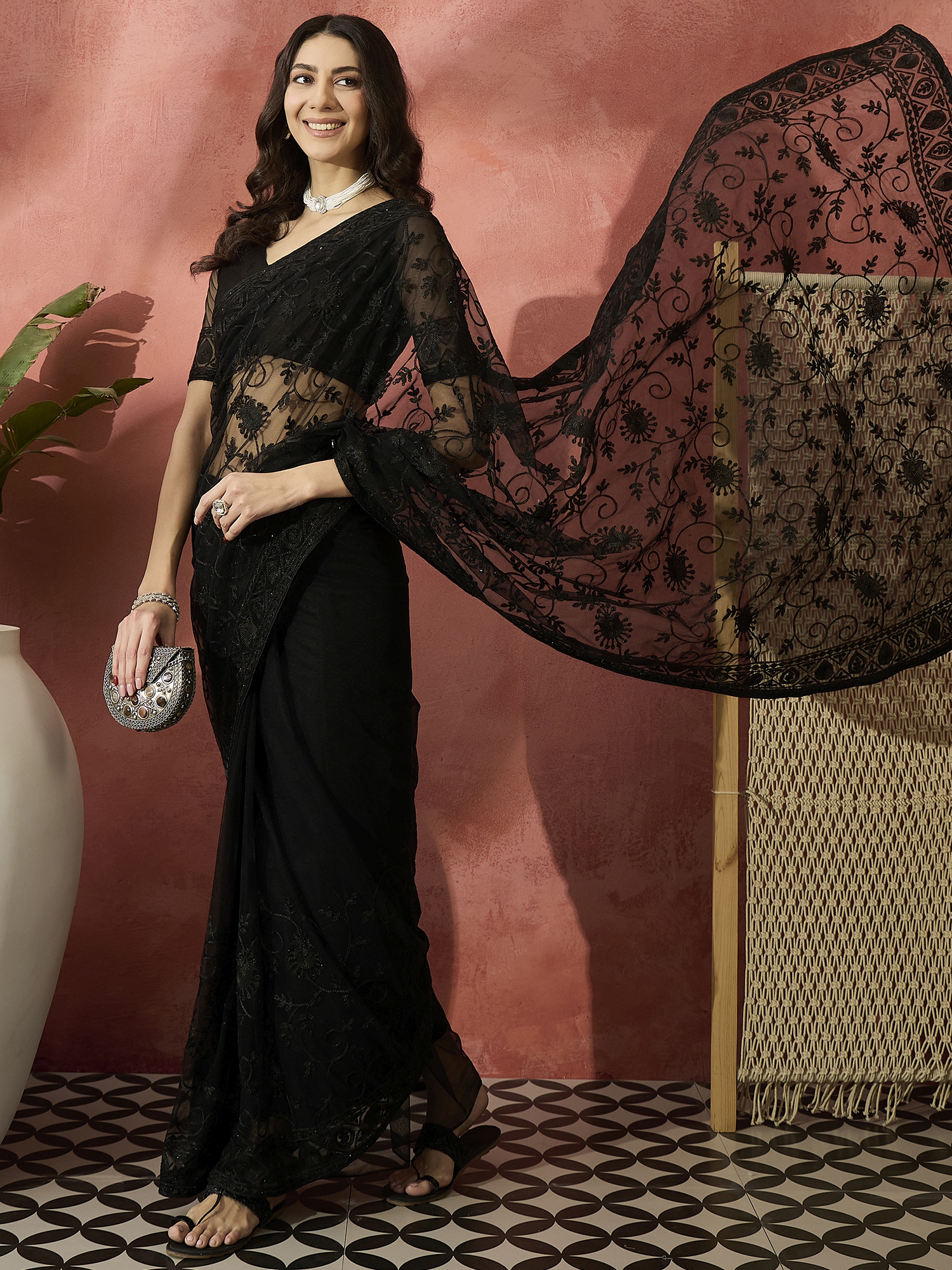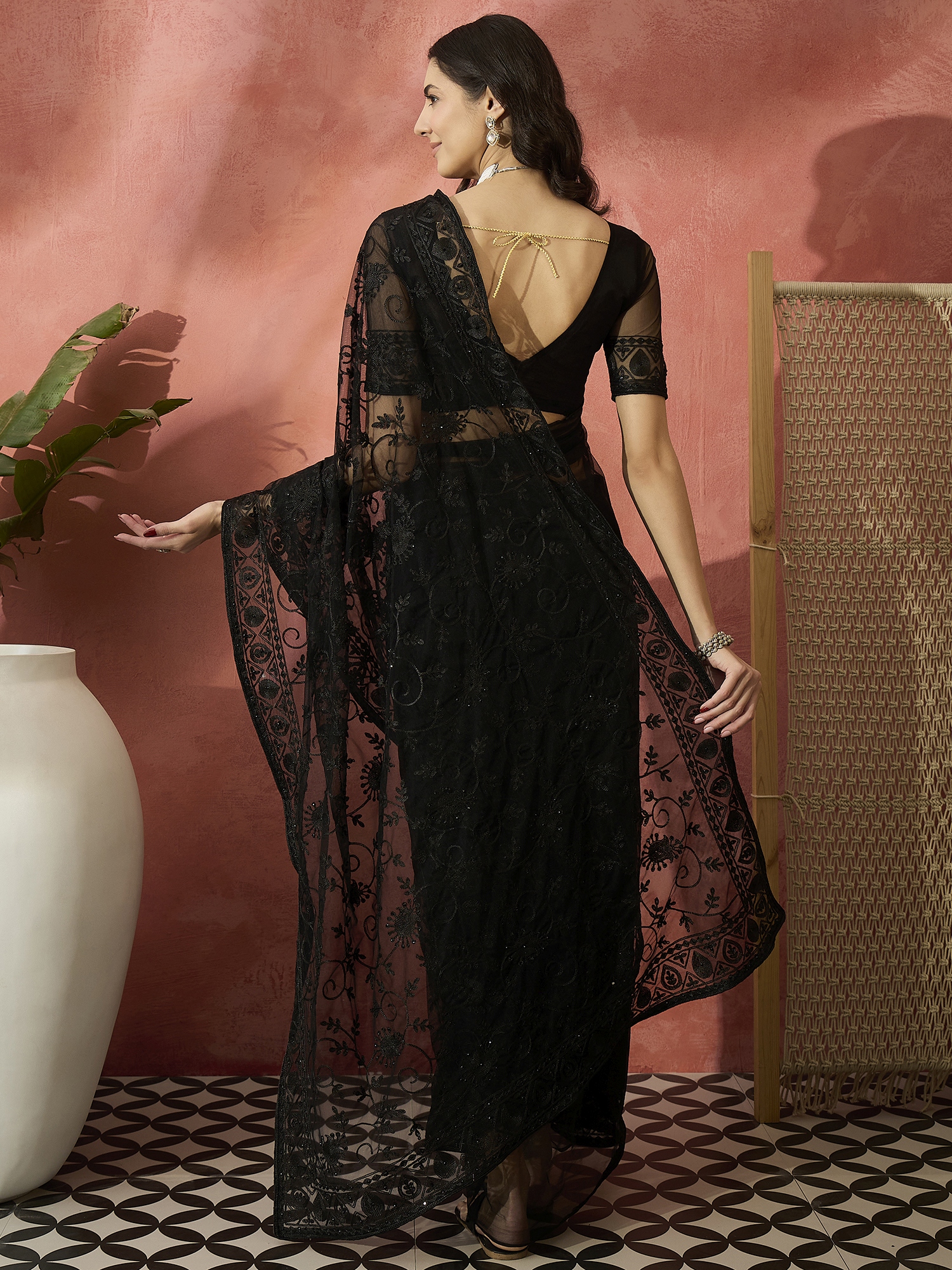 Fashion Dream Womens Black Net Saree | Soft & Elegant Traditional Wear