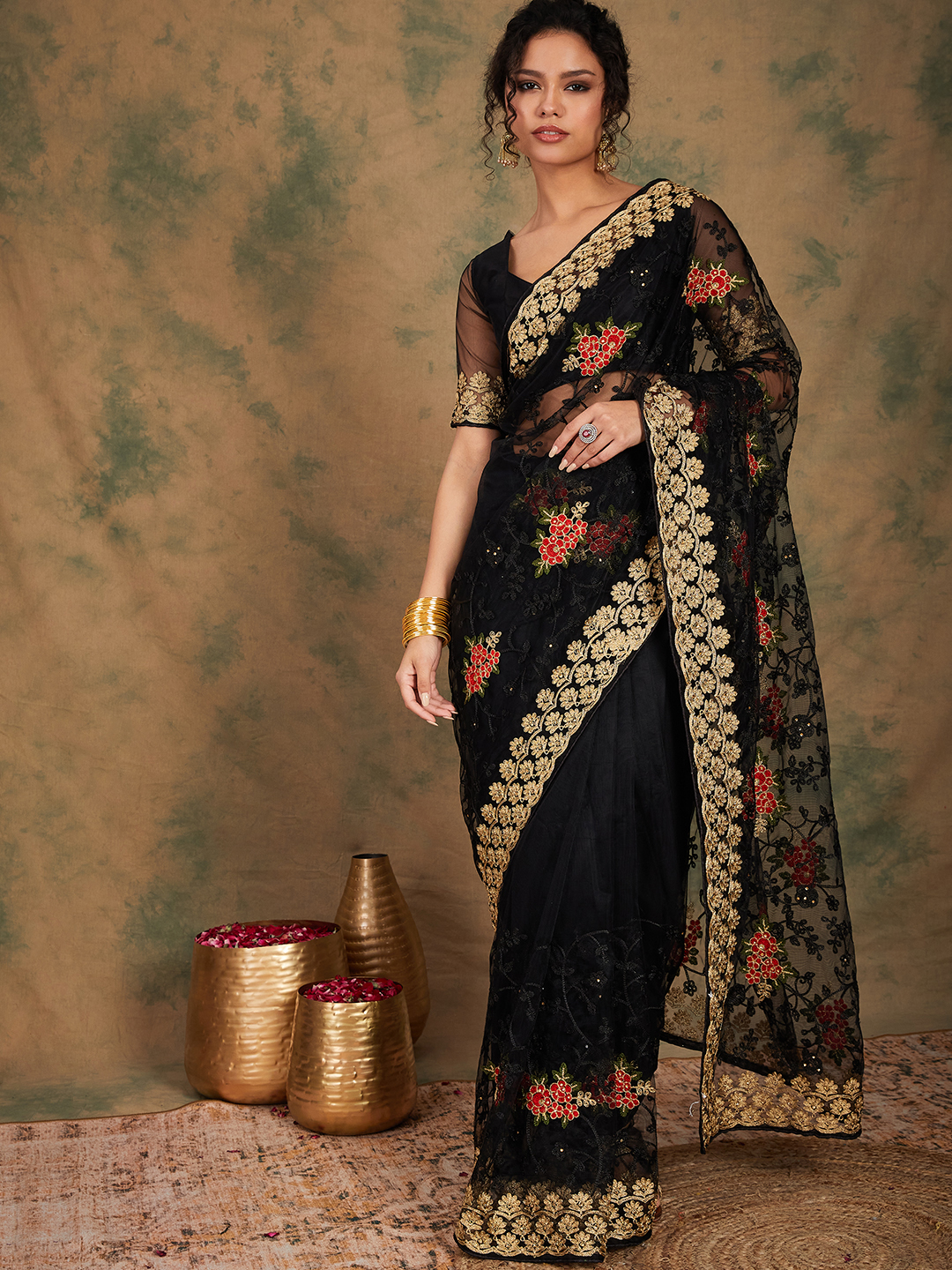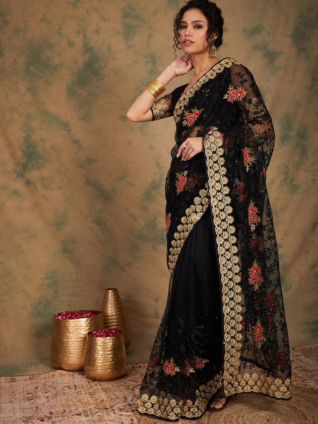 Fashion Dream Womens Black Net Saree | Soft & Elegant Traditional Wear