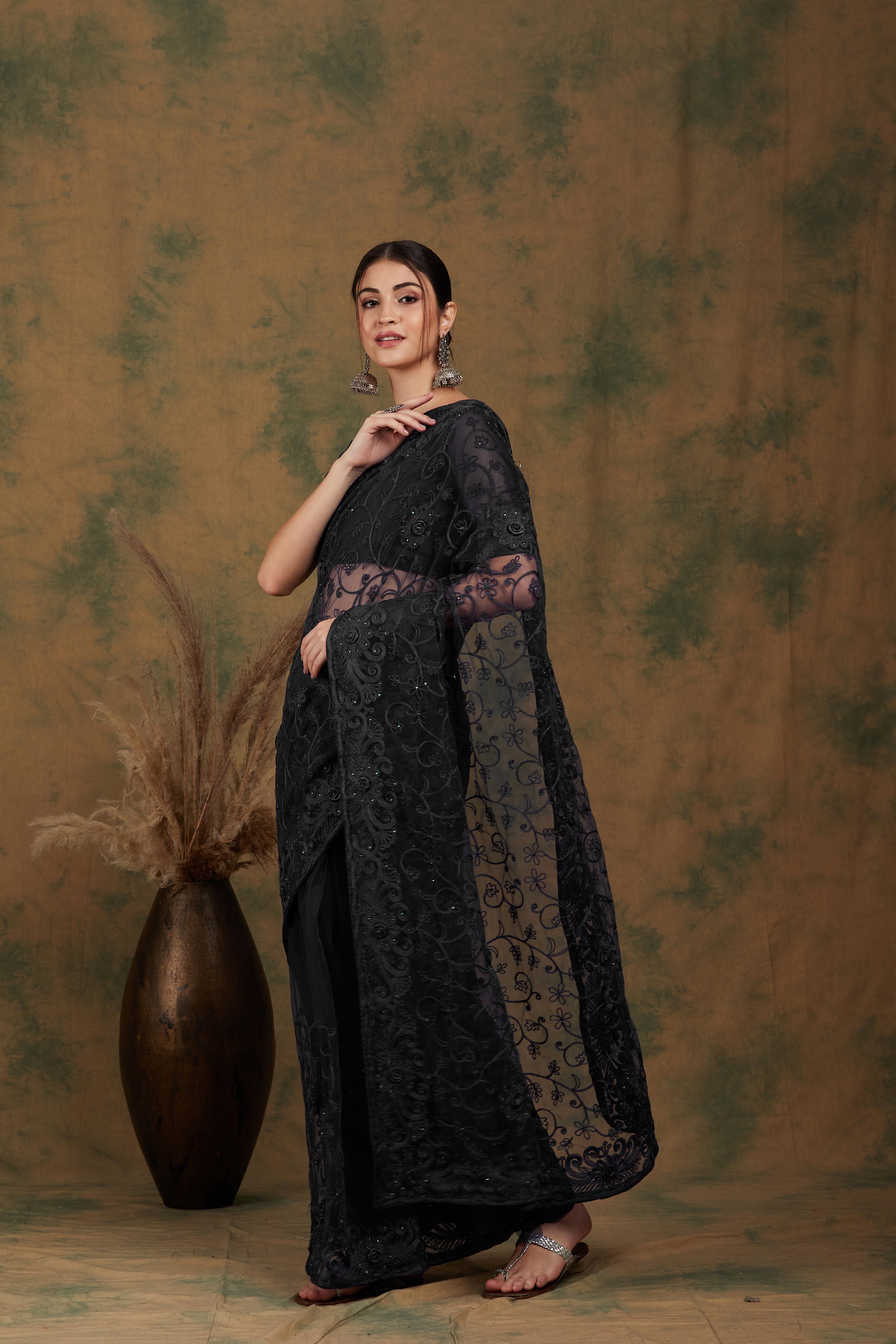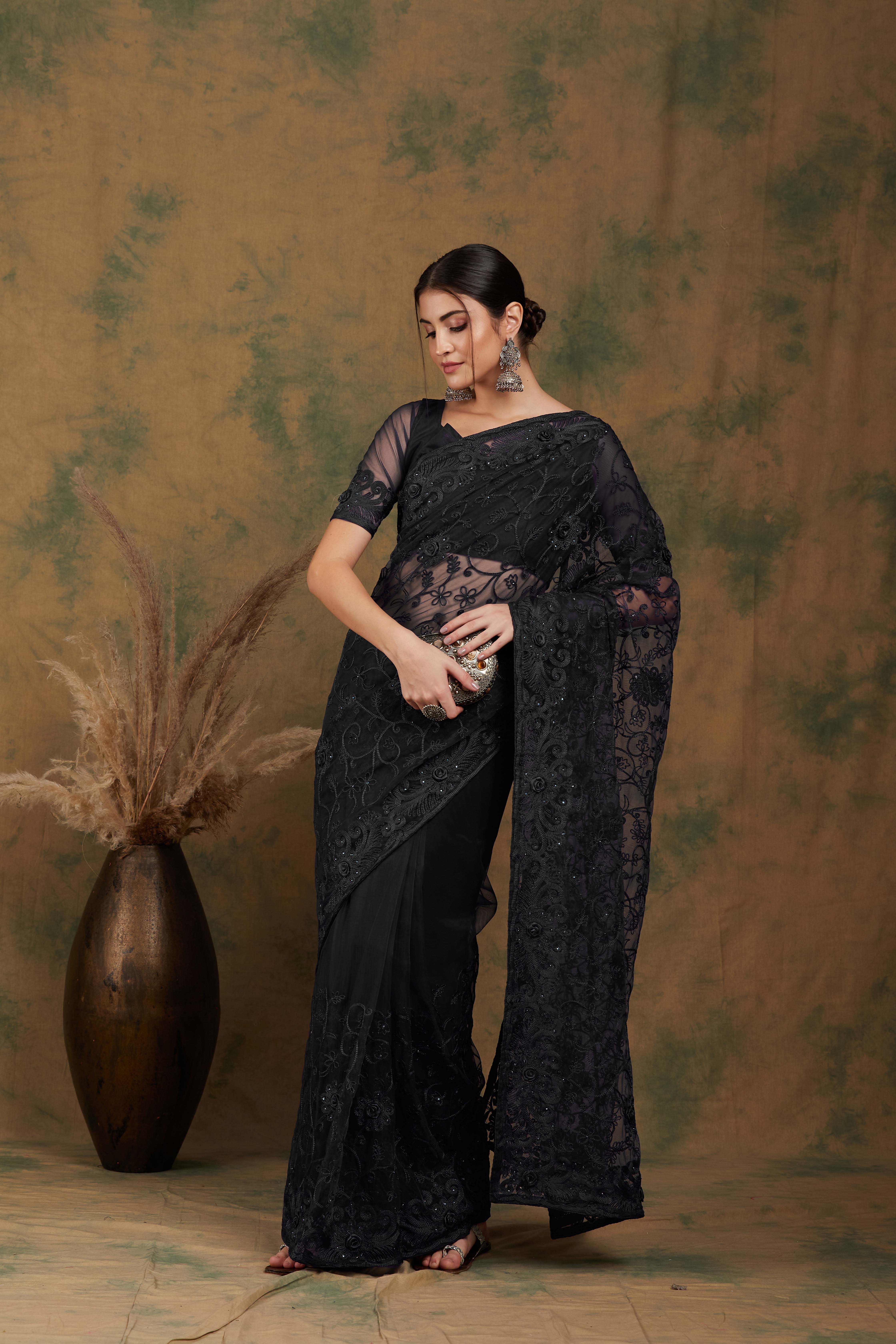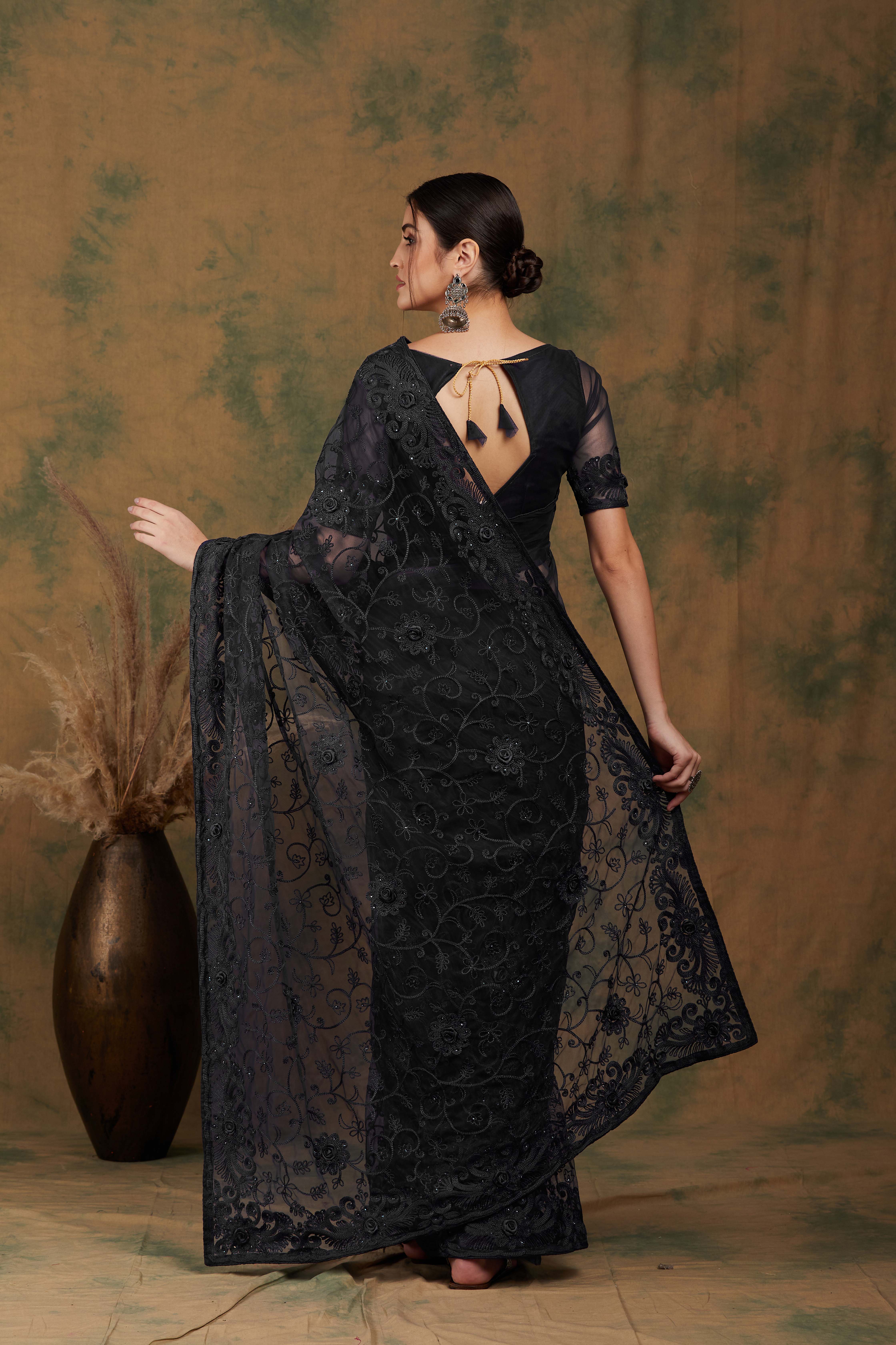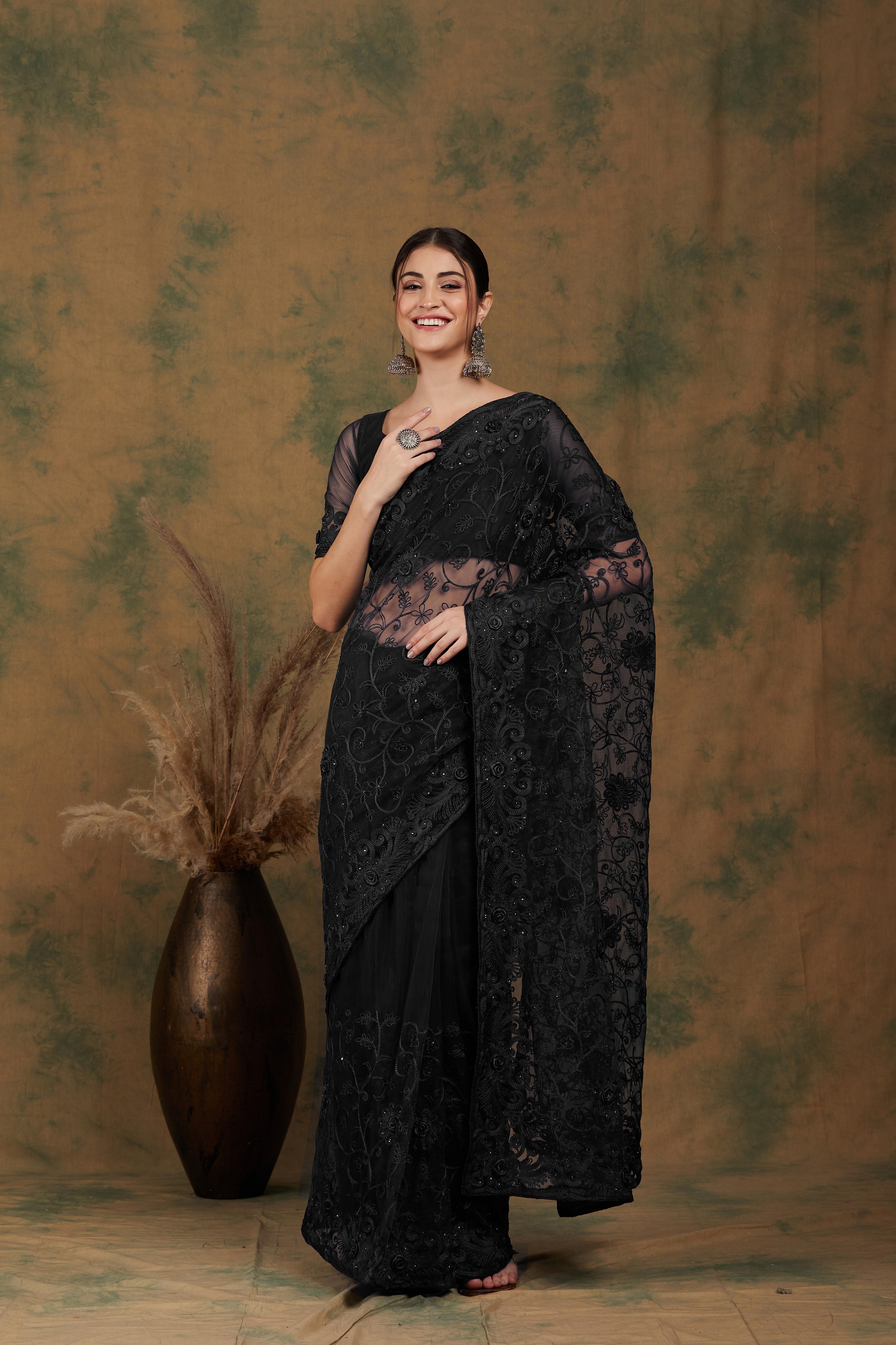 AASTHA FASHION Fashion Dream Womens BLACK NET Saree | Soft & Elegant Traditional Wear