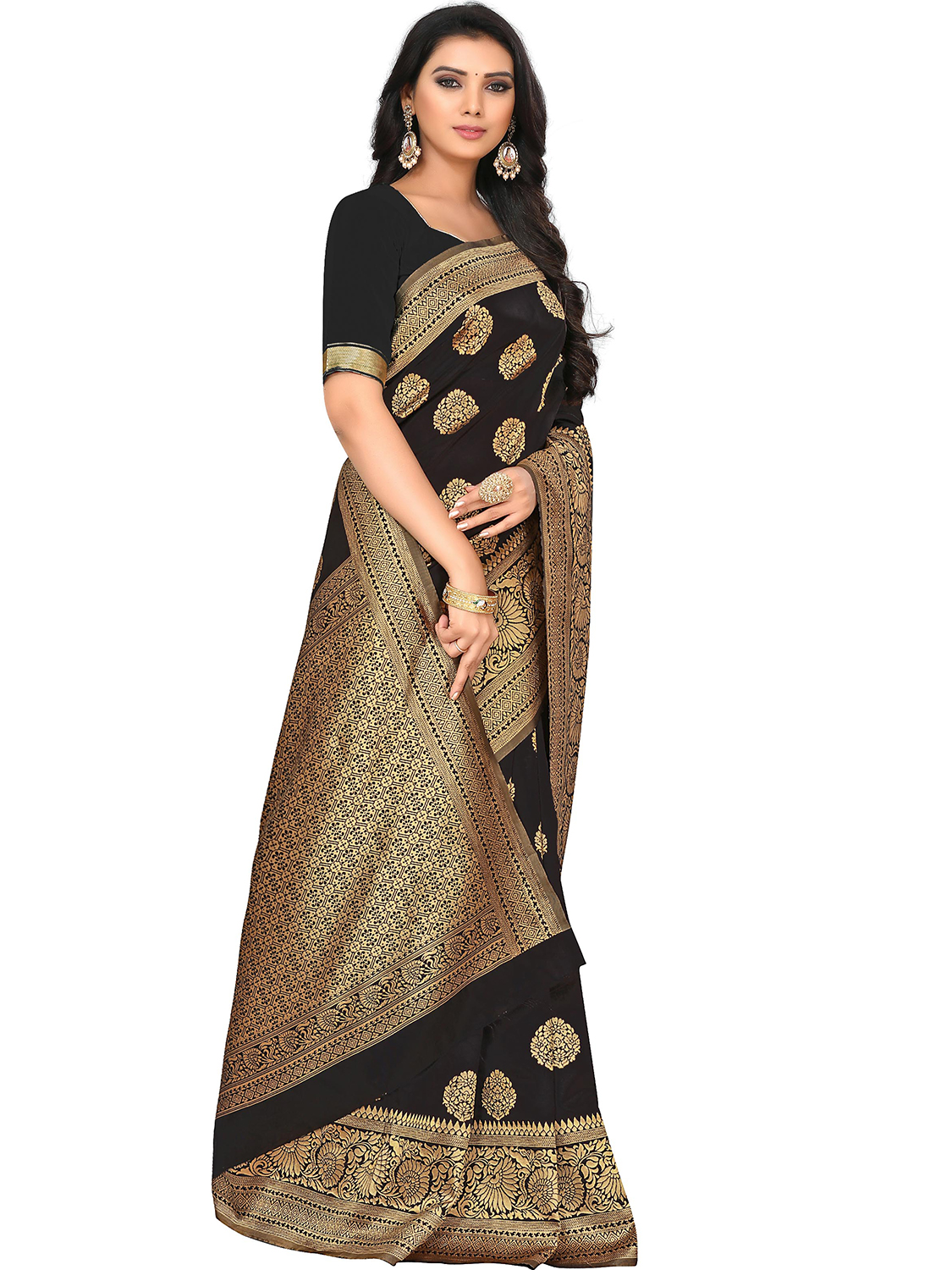 AASTHA FASHION Fashion Dream Womens Black Silk Blend Saree | Soft & Elegant Traditional Wear