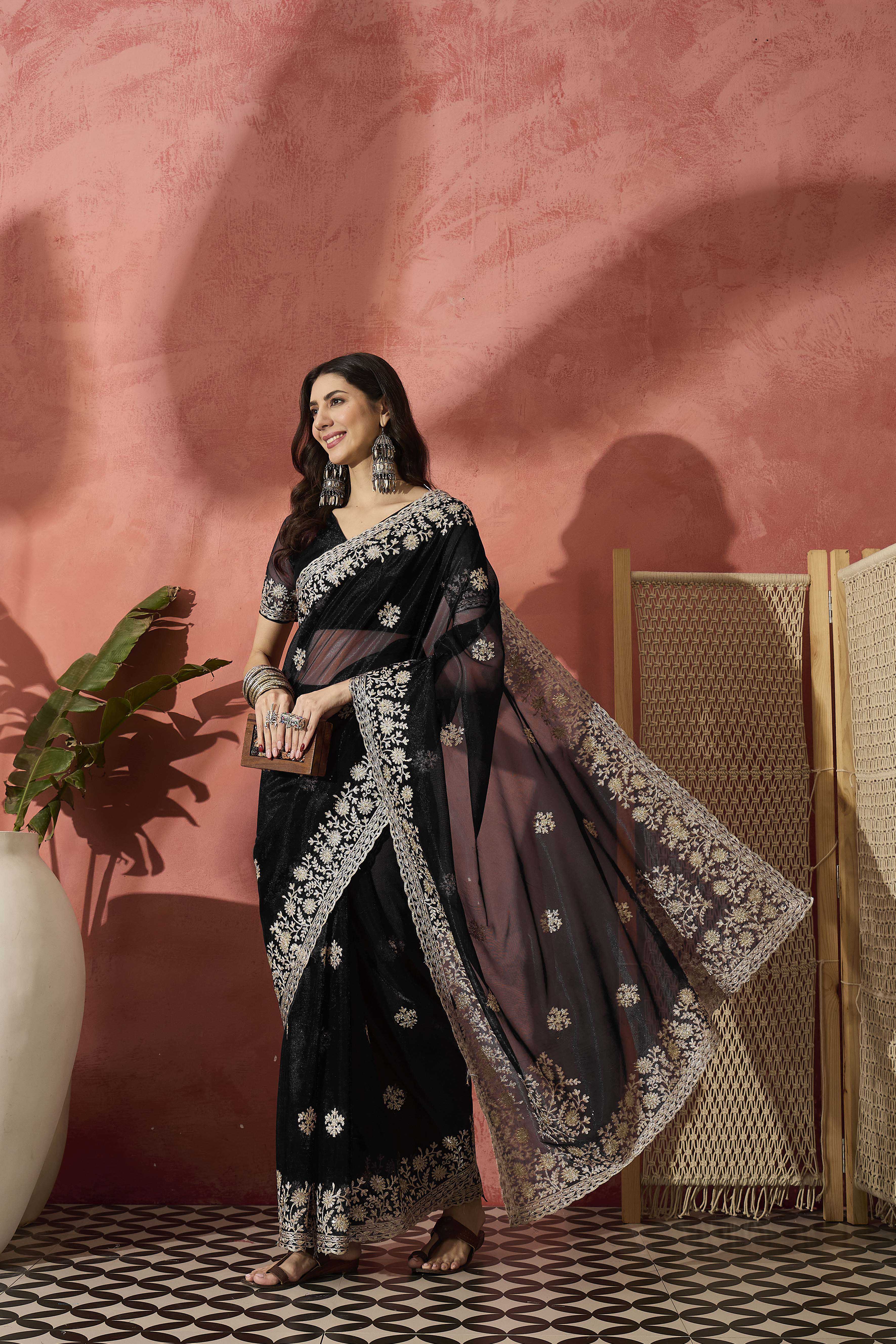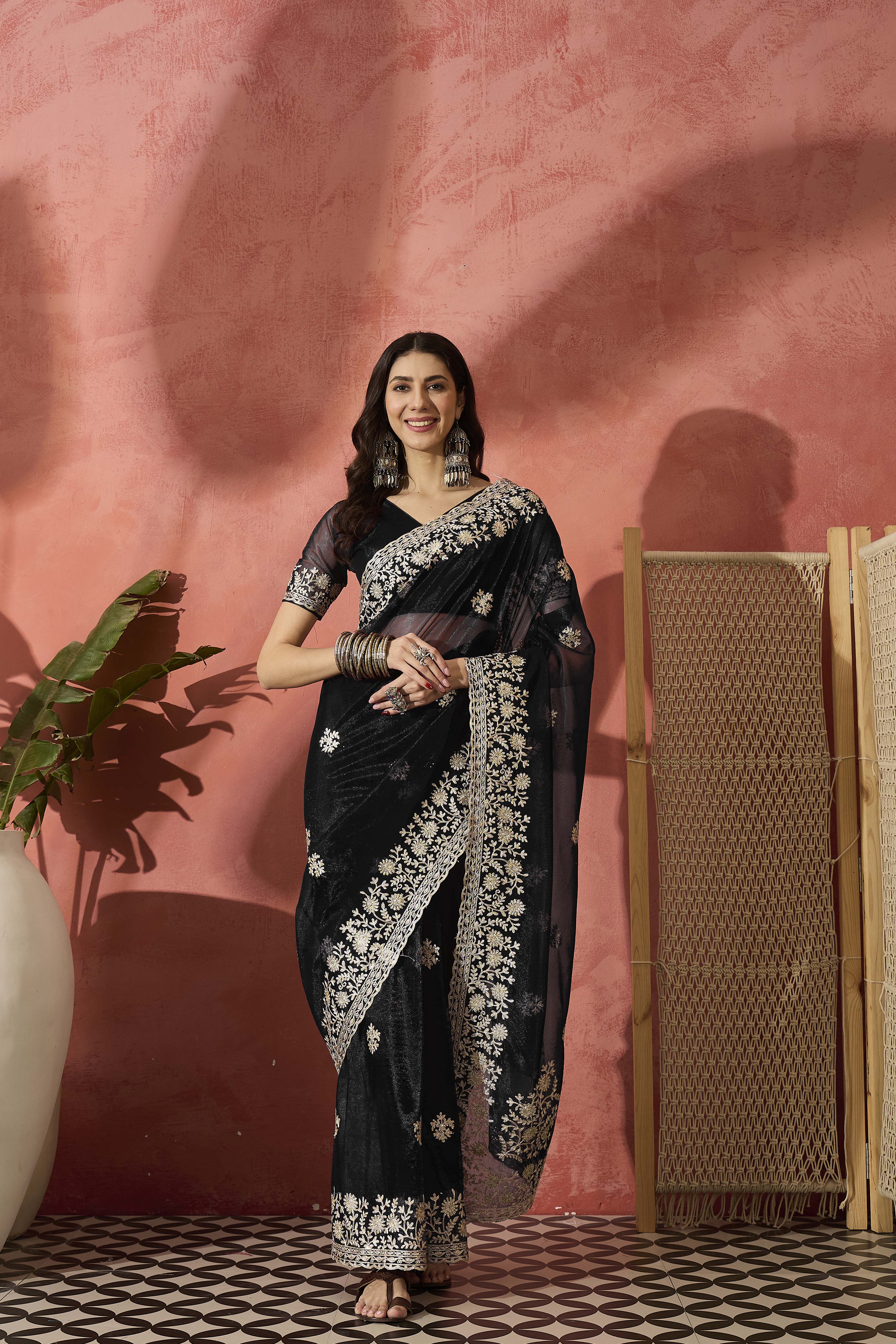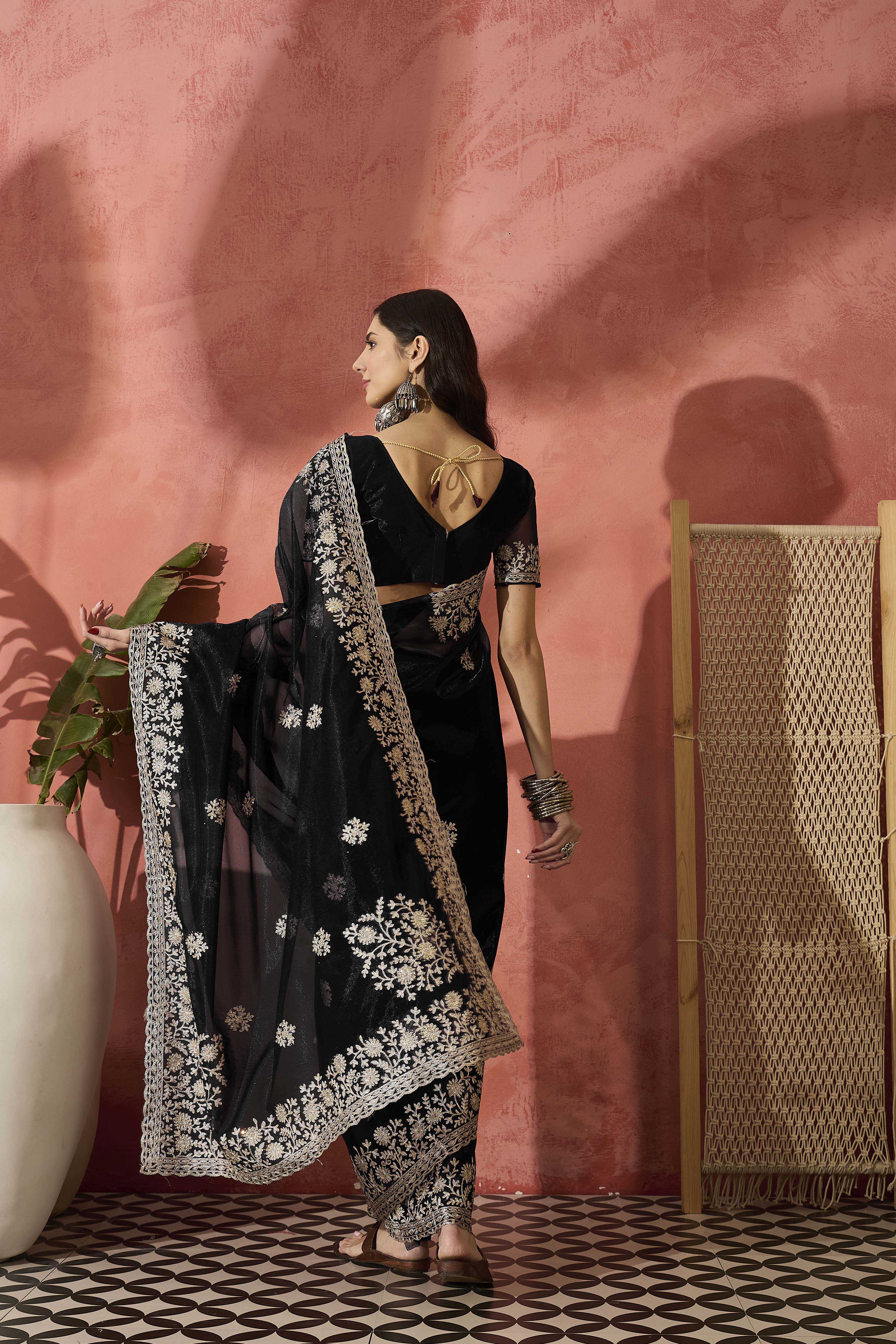 • Saree Work-Embroidered ,Blouse Work- Twil Net