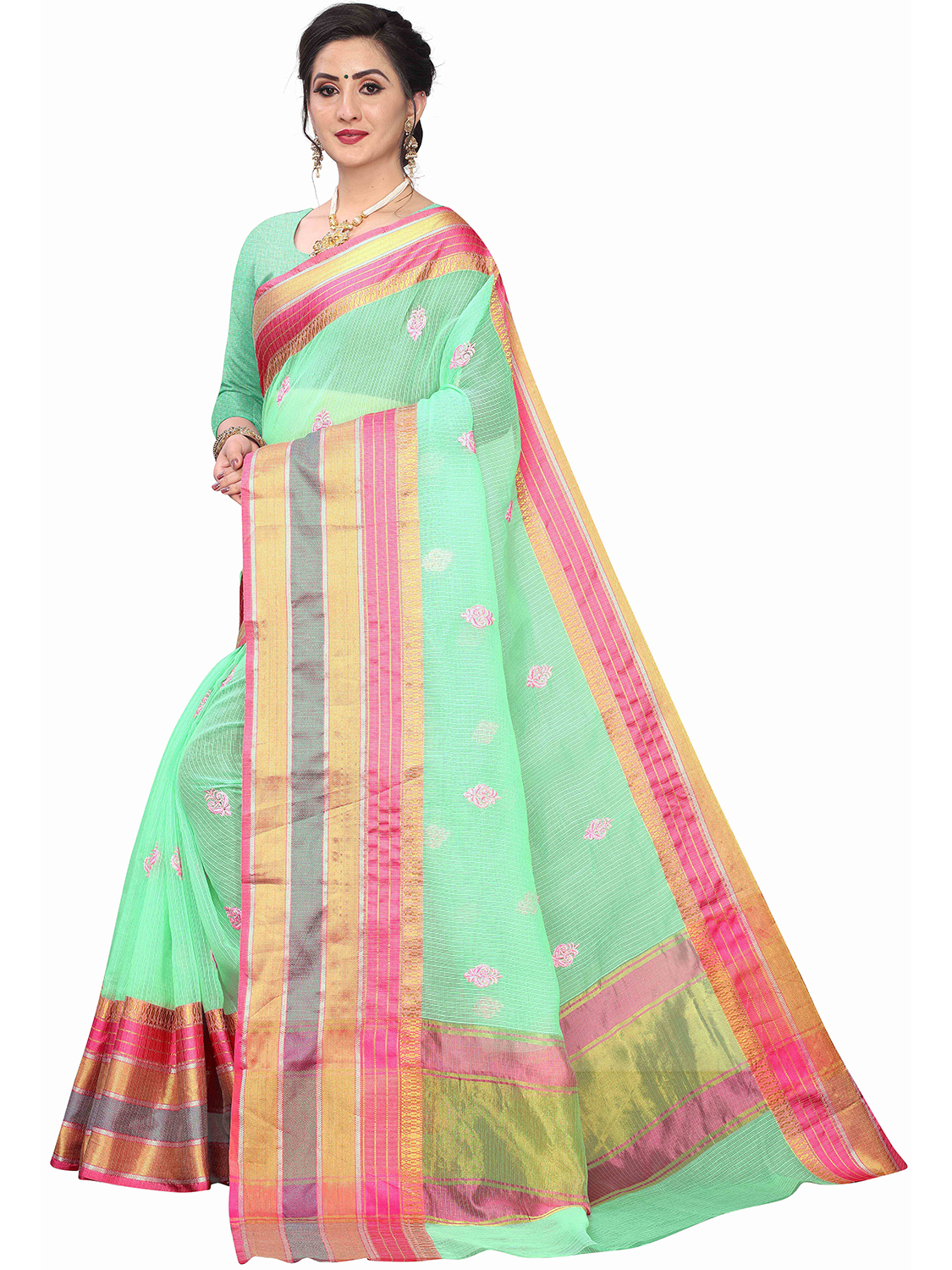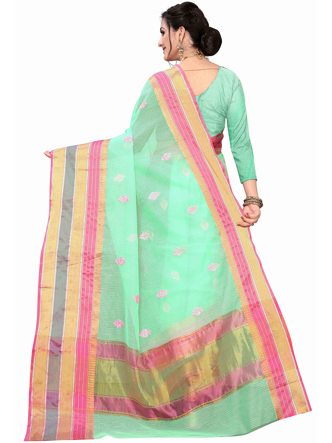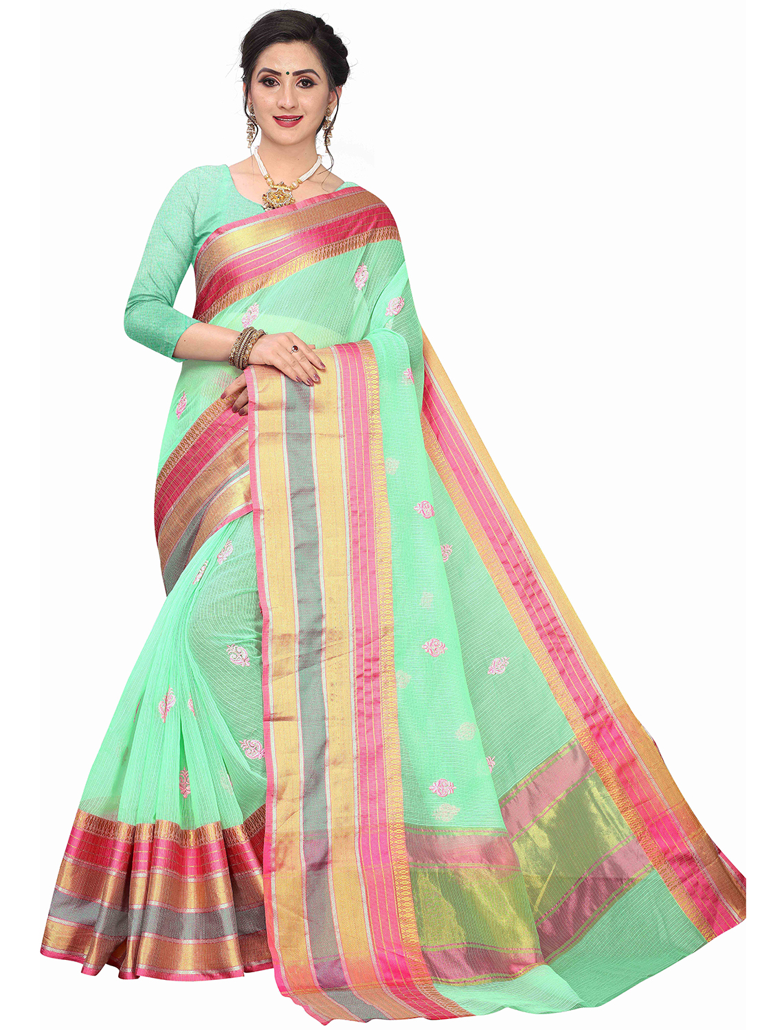 AASTHA FASHION Fashion Dream Womens Bluish Green Cotton Silk Saree | Soft & Elegant Traditional Wear