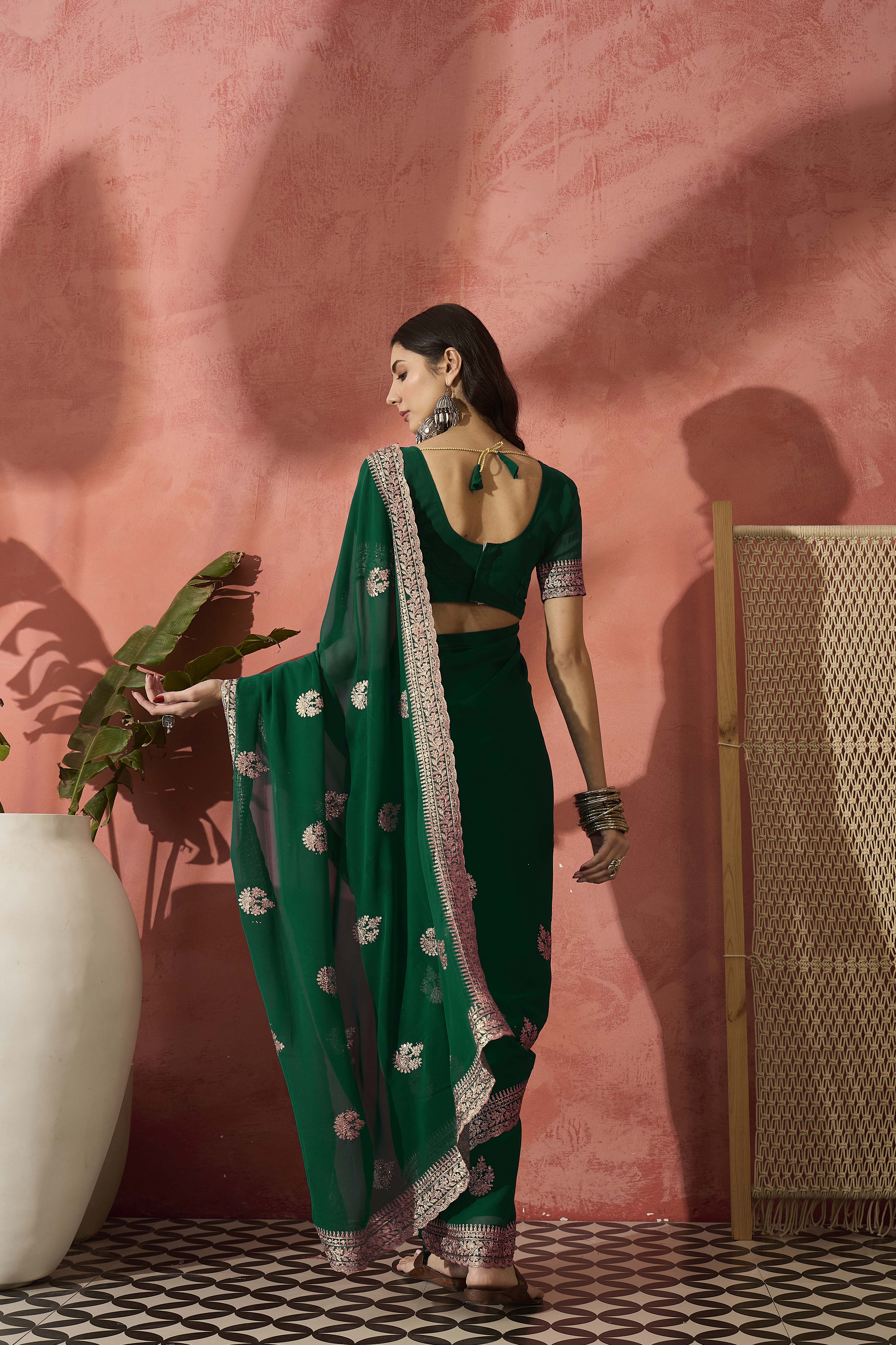 AASTHA FASHION Fashion Dream Womens Bottle Green Georgette Saree | Soft & Elegant Traditional Wear