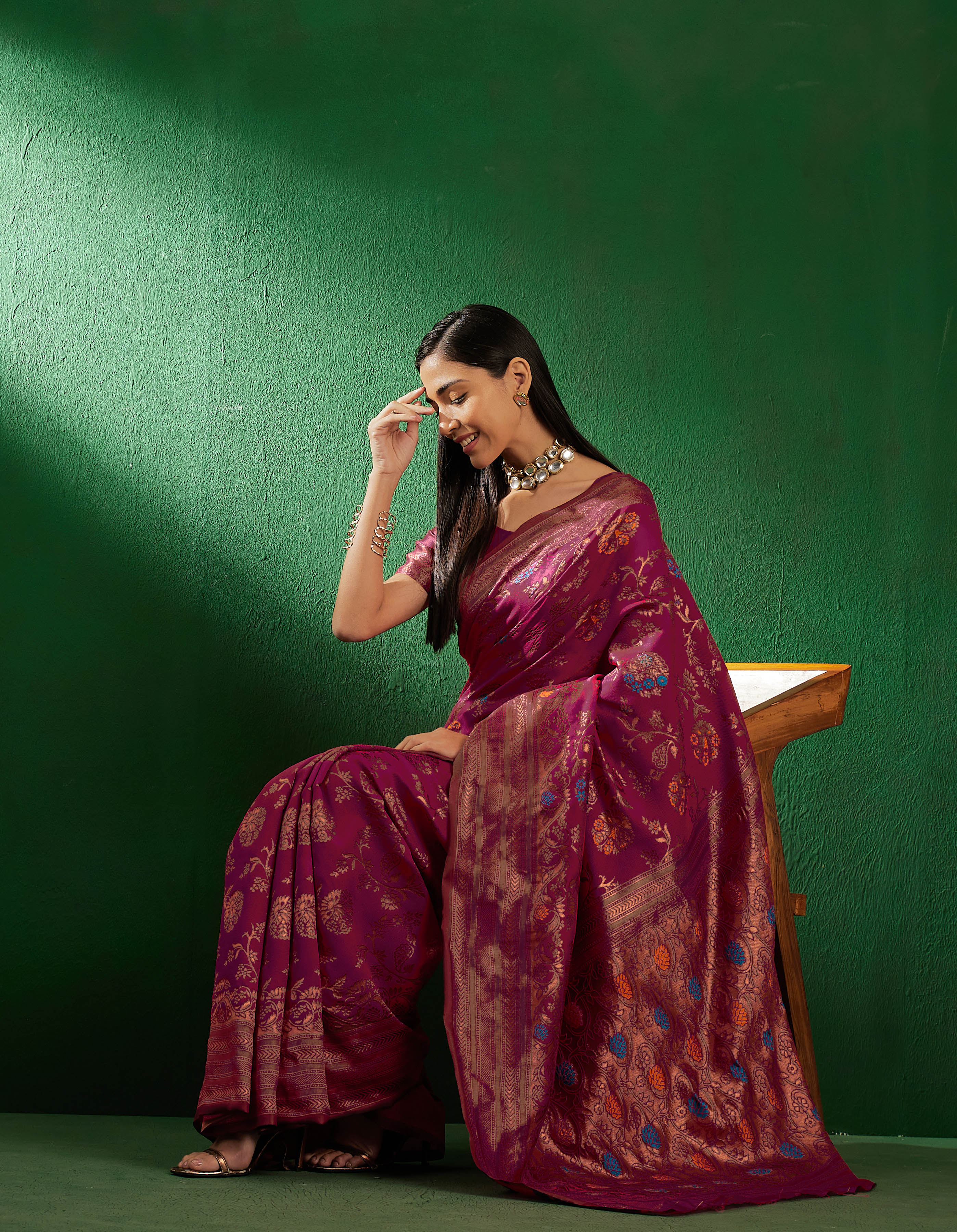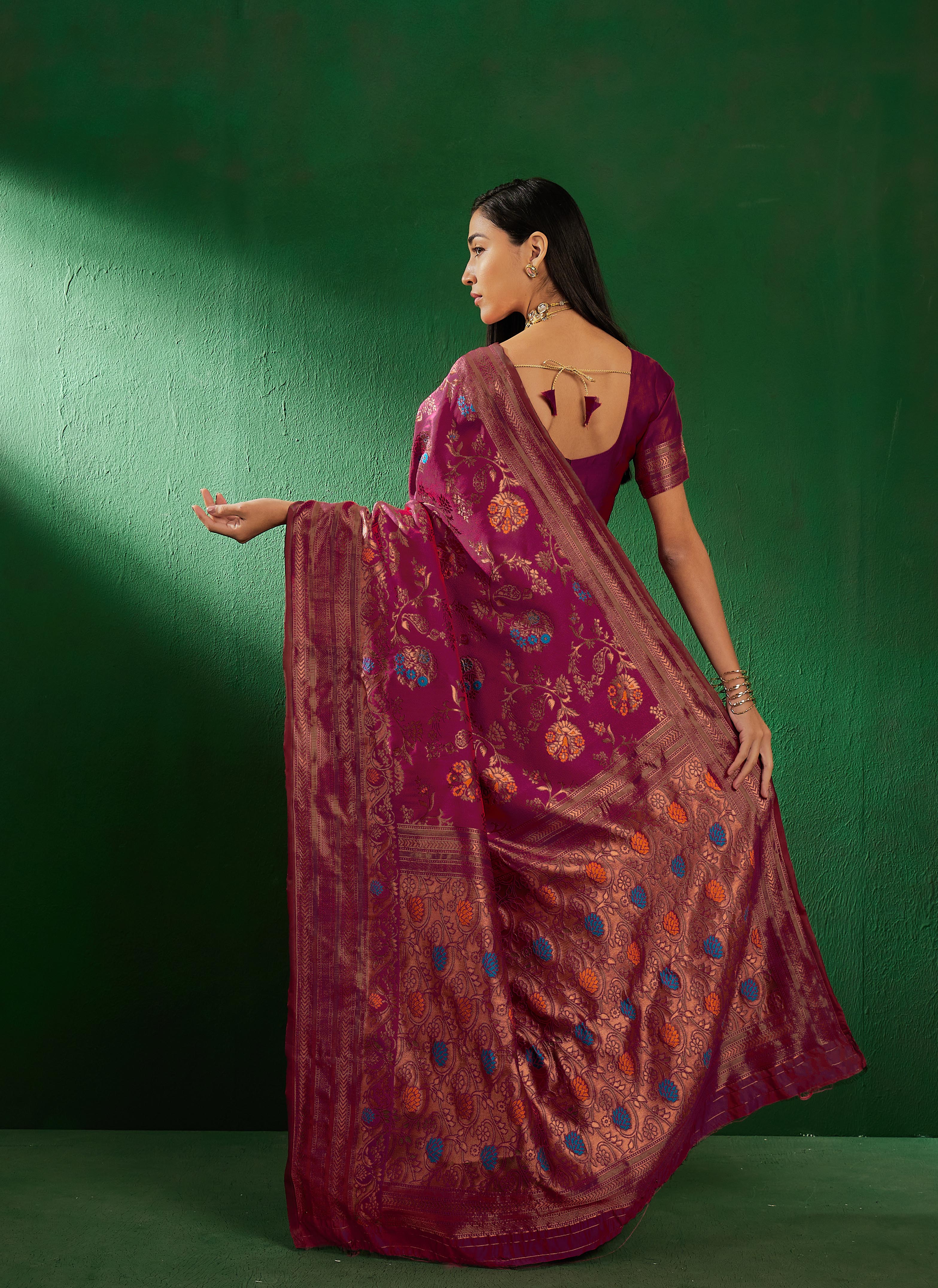 AASTHA FASHION Fashion Dream Womens Burgundy Banarasi Silk Saree | Soft & Elegant Traditional Wear