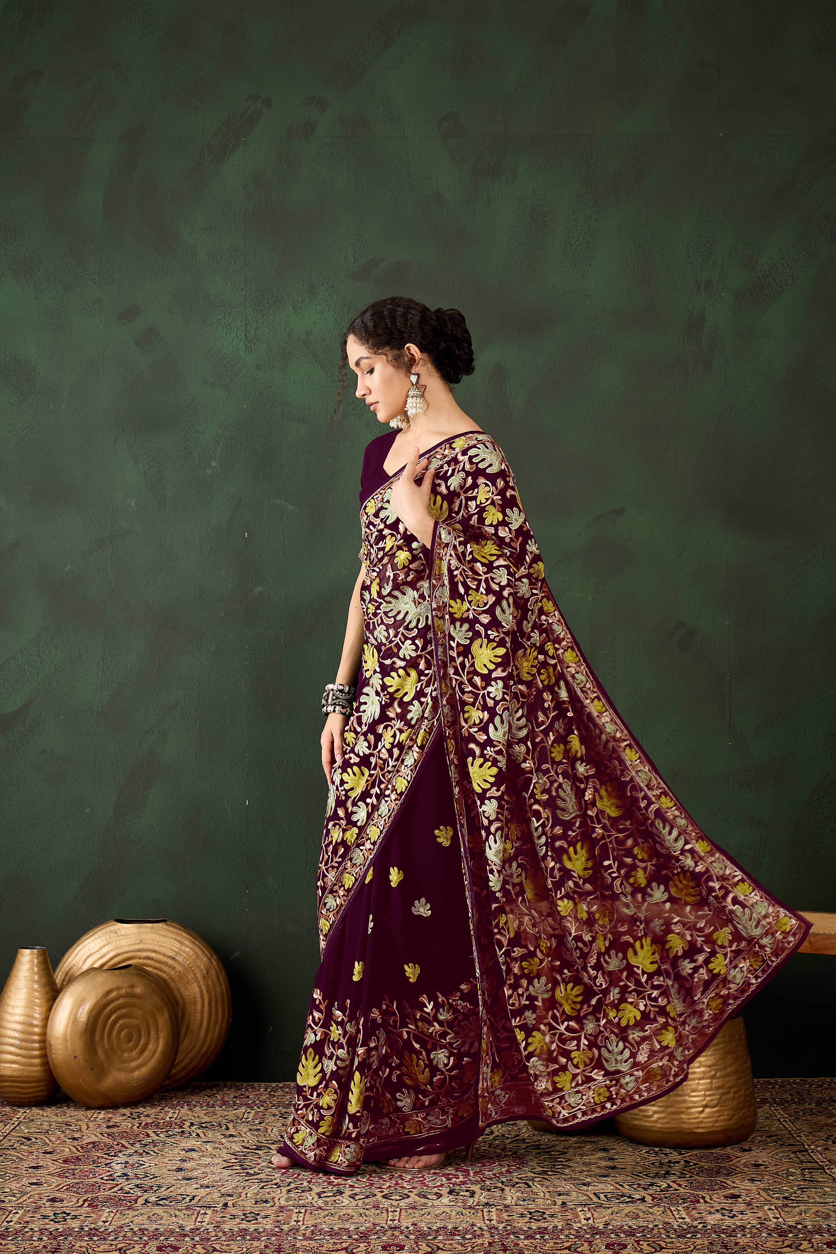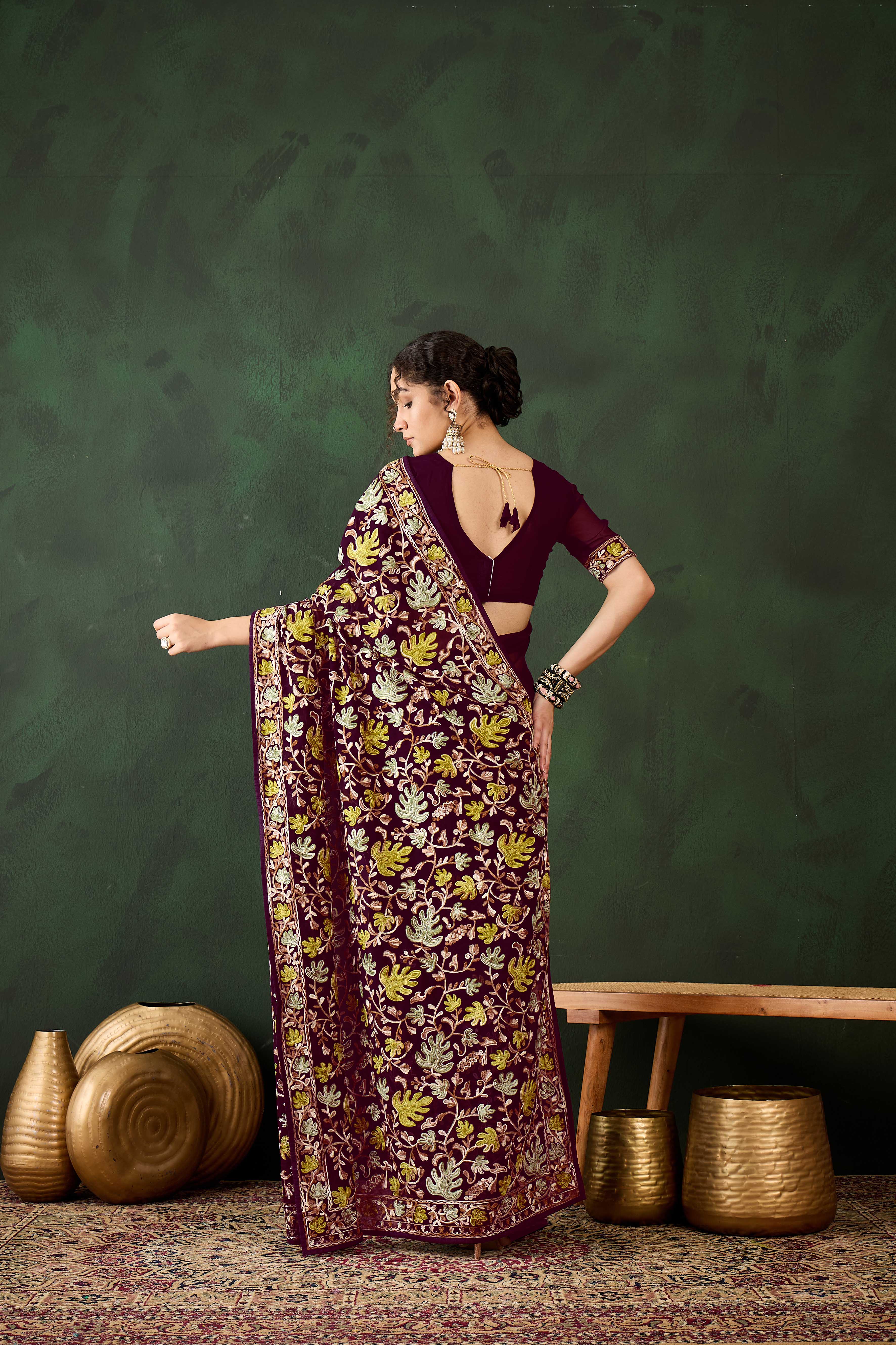 AASTHA FASHION Fashion Dream Womens Burgundy Georgette Saree | Soft & Elegant Traditional Wear