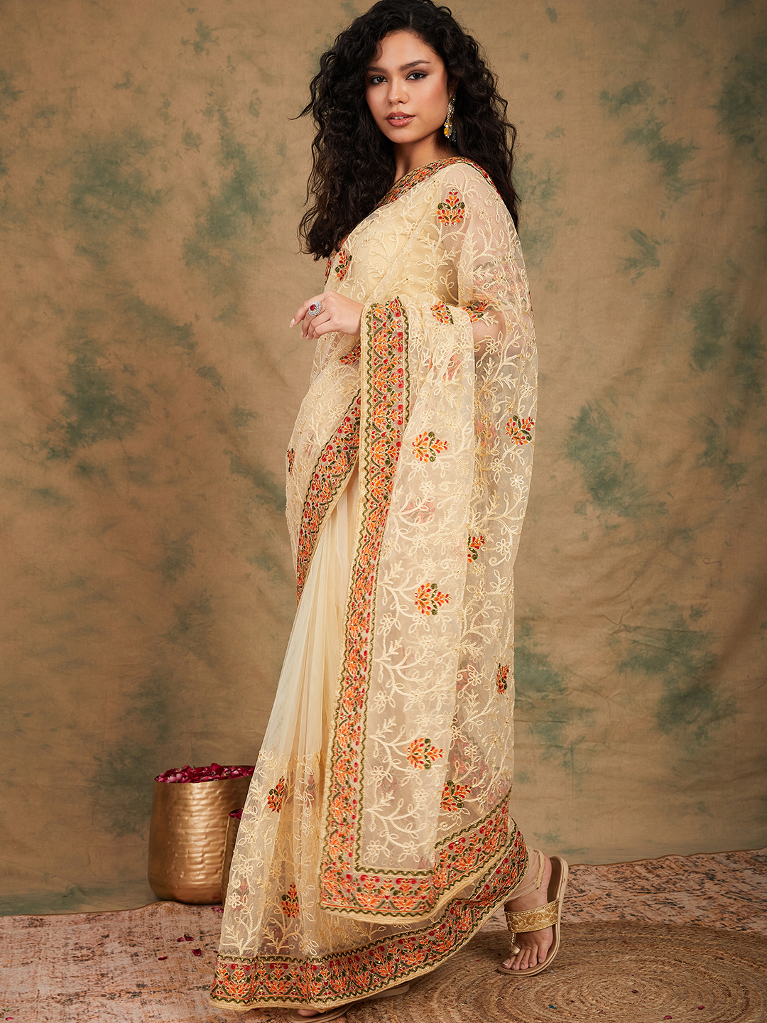 Fashion Dream Womens Chiku Net Saree | Soft & Elegant Traditional Wear