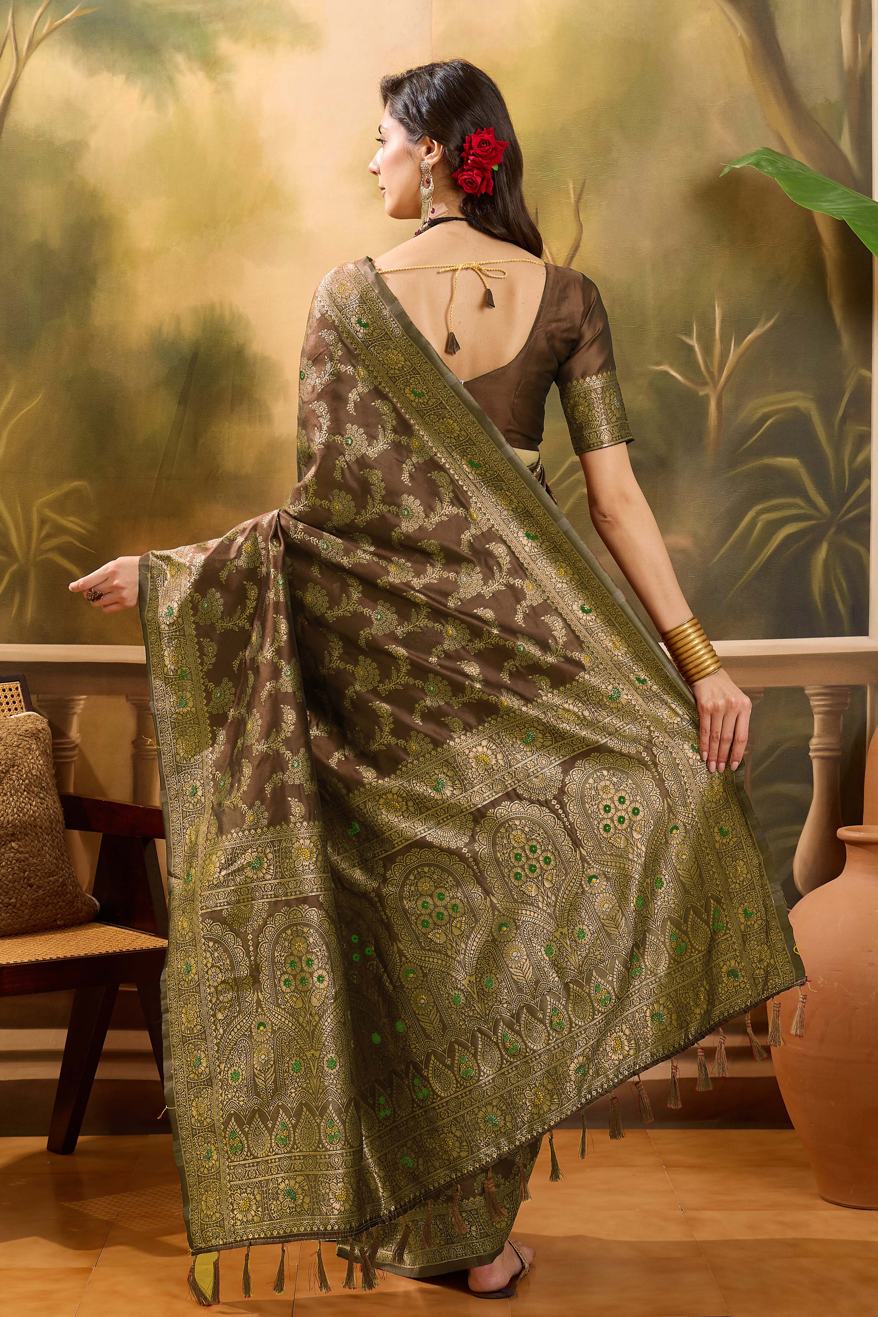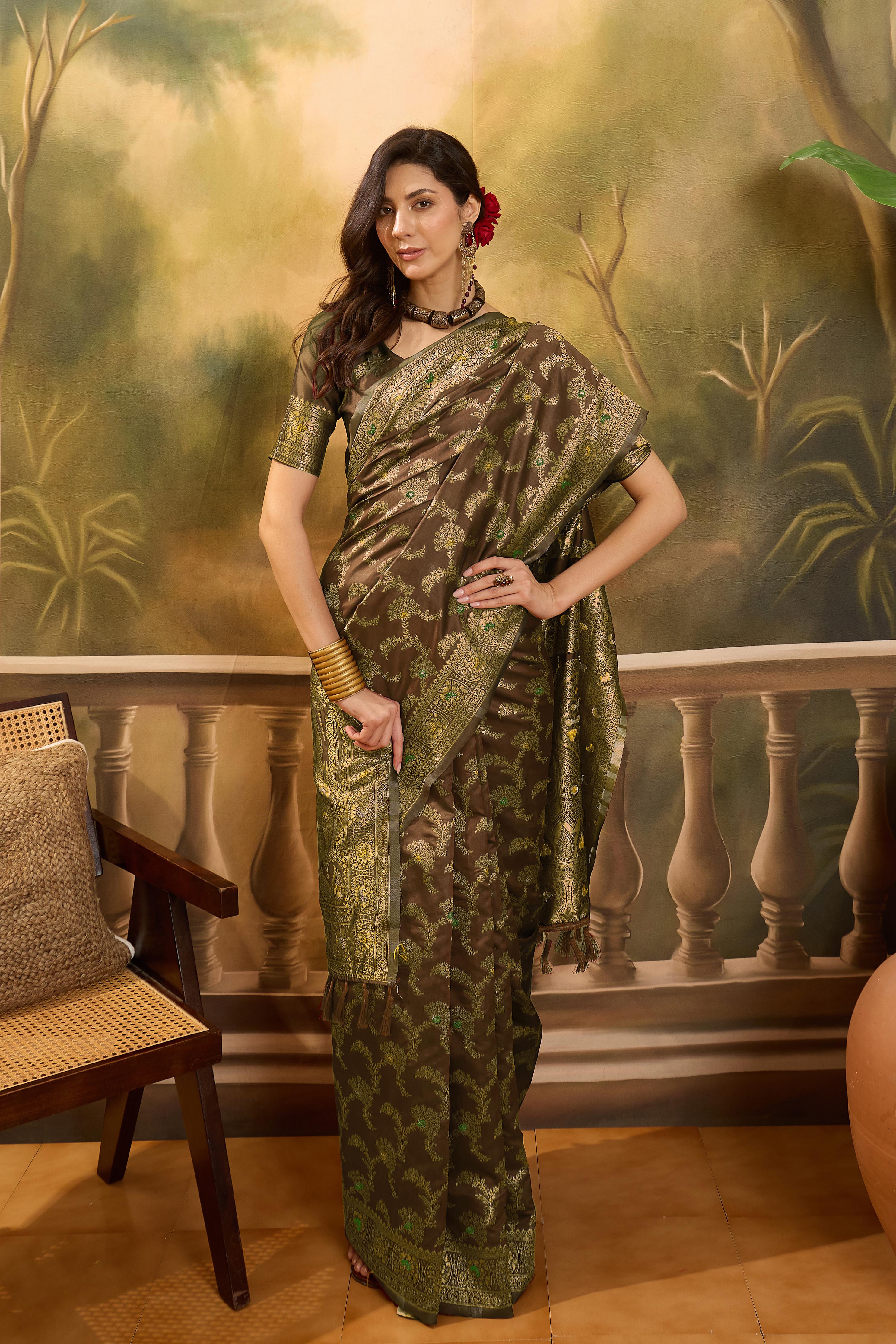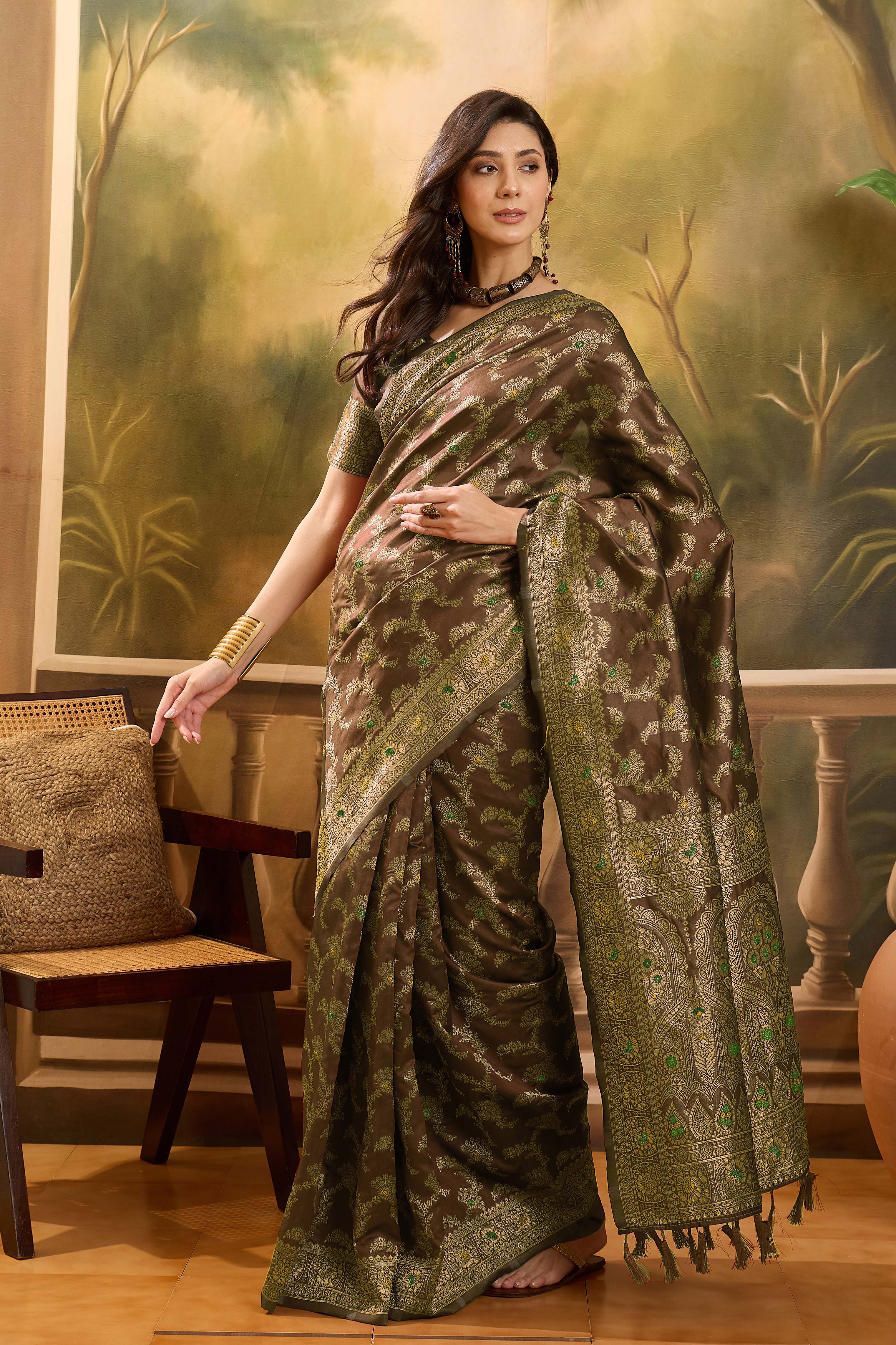 AASTHA FASHION Fashion Dream Womens Coffee Brown Banarasi Jacquard Saree | Soft & Elegant Traditional Wear