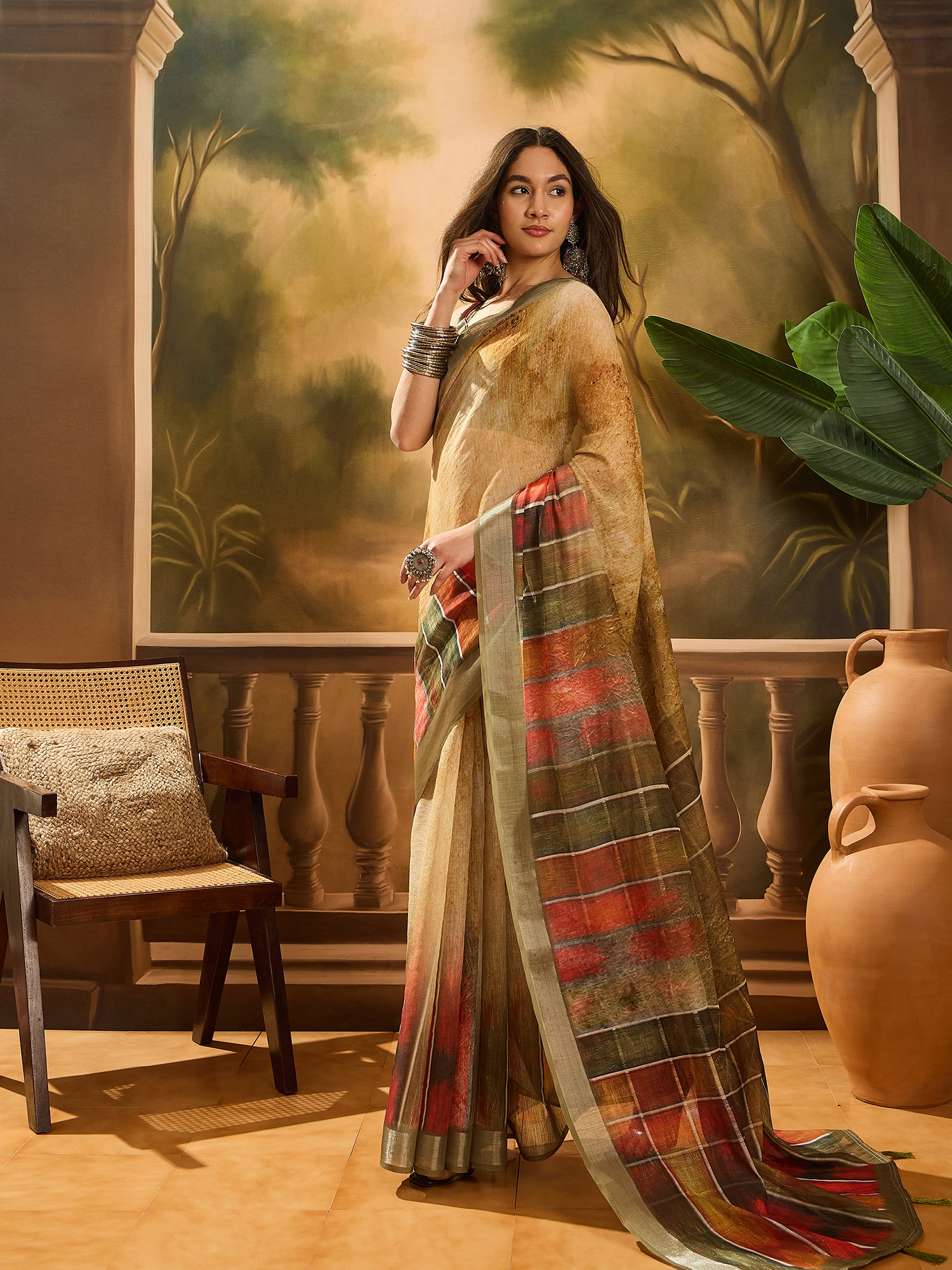 • Saree Work-Digital Print ,Blouse Work- Linen Cotton Blend