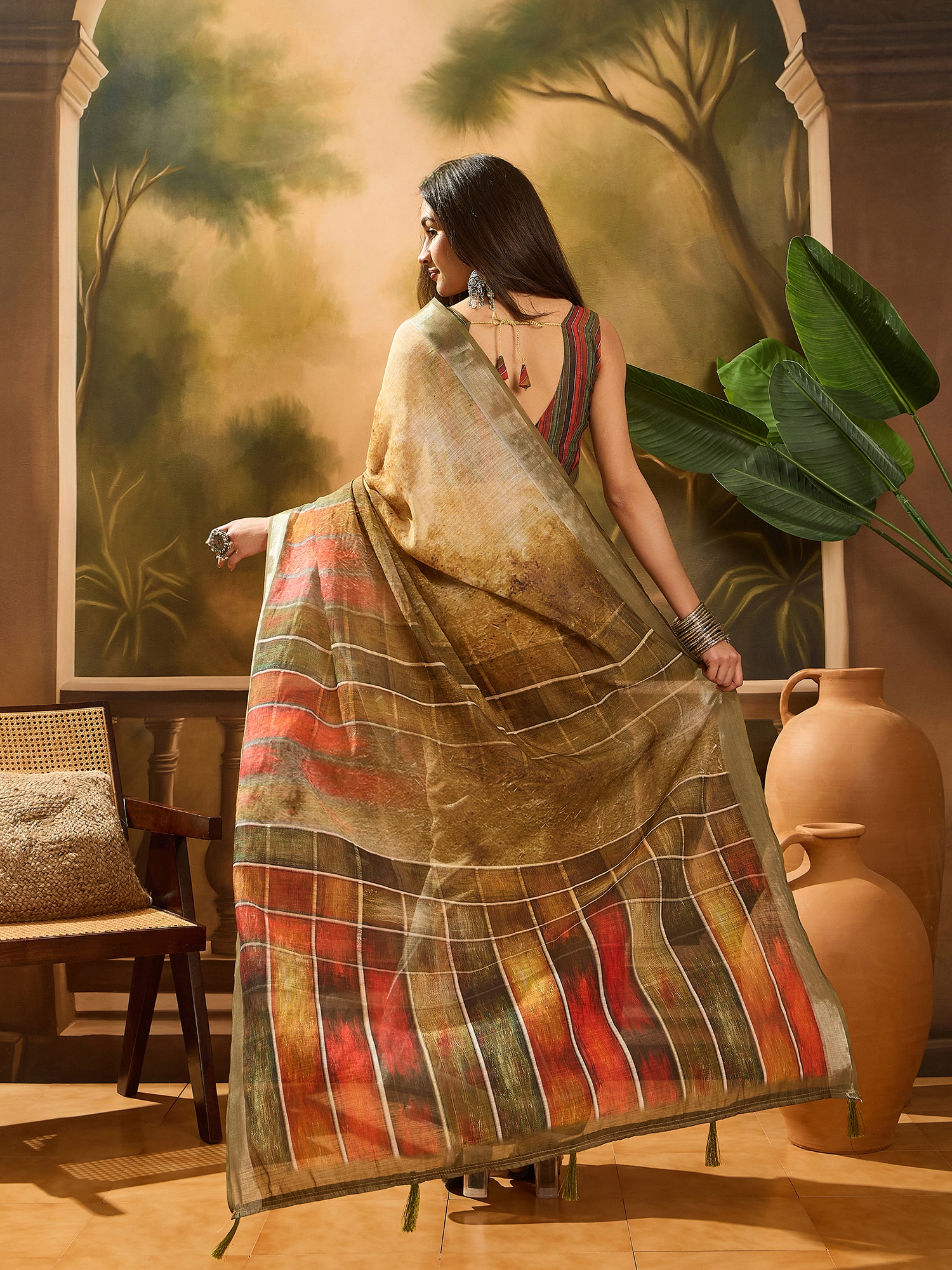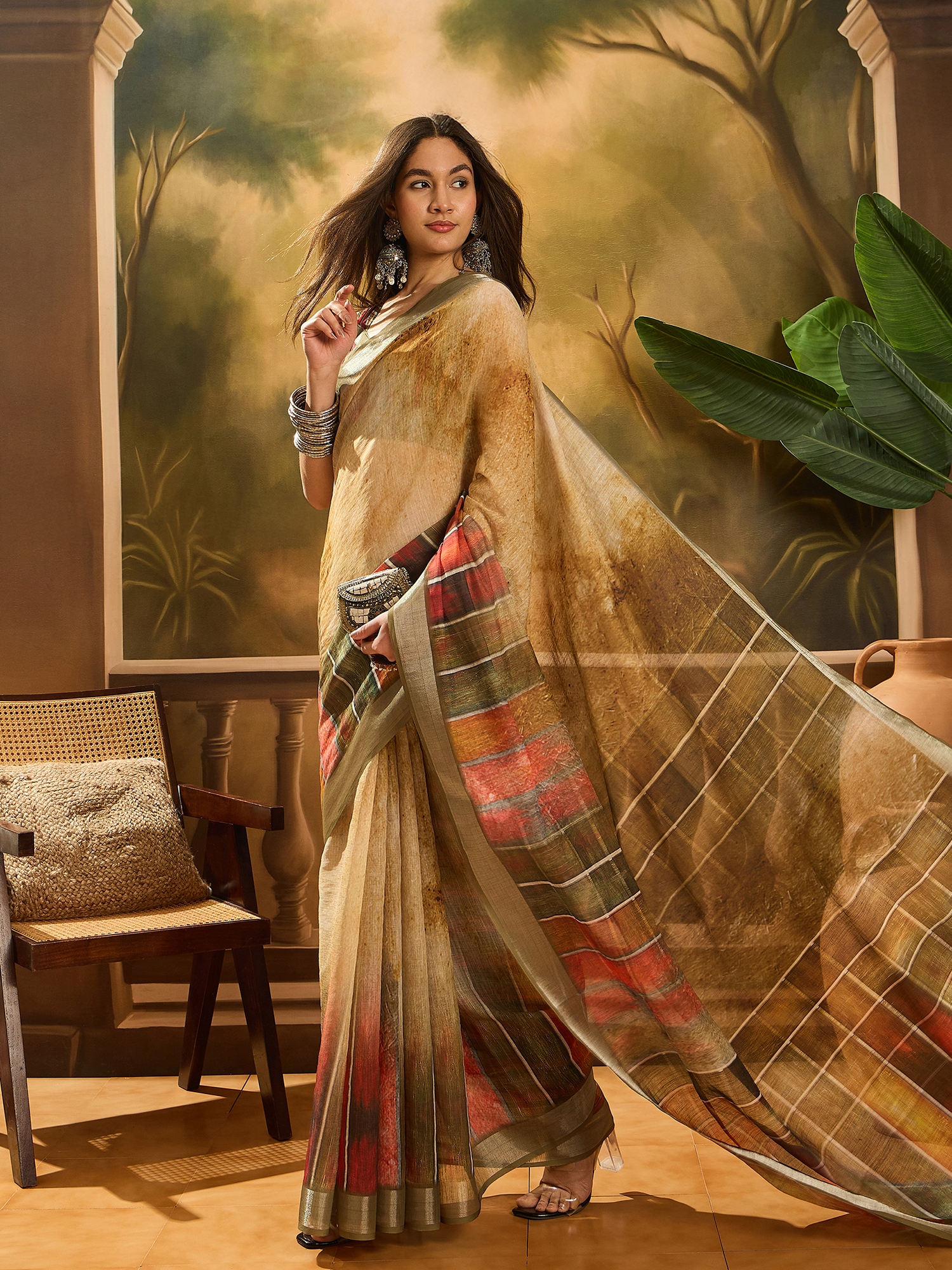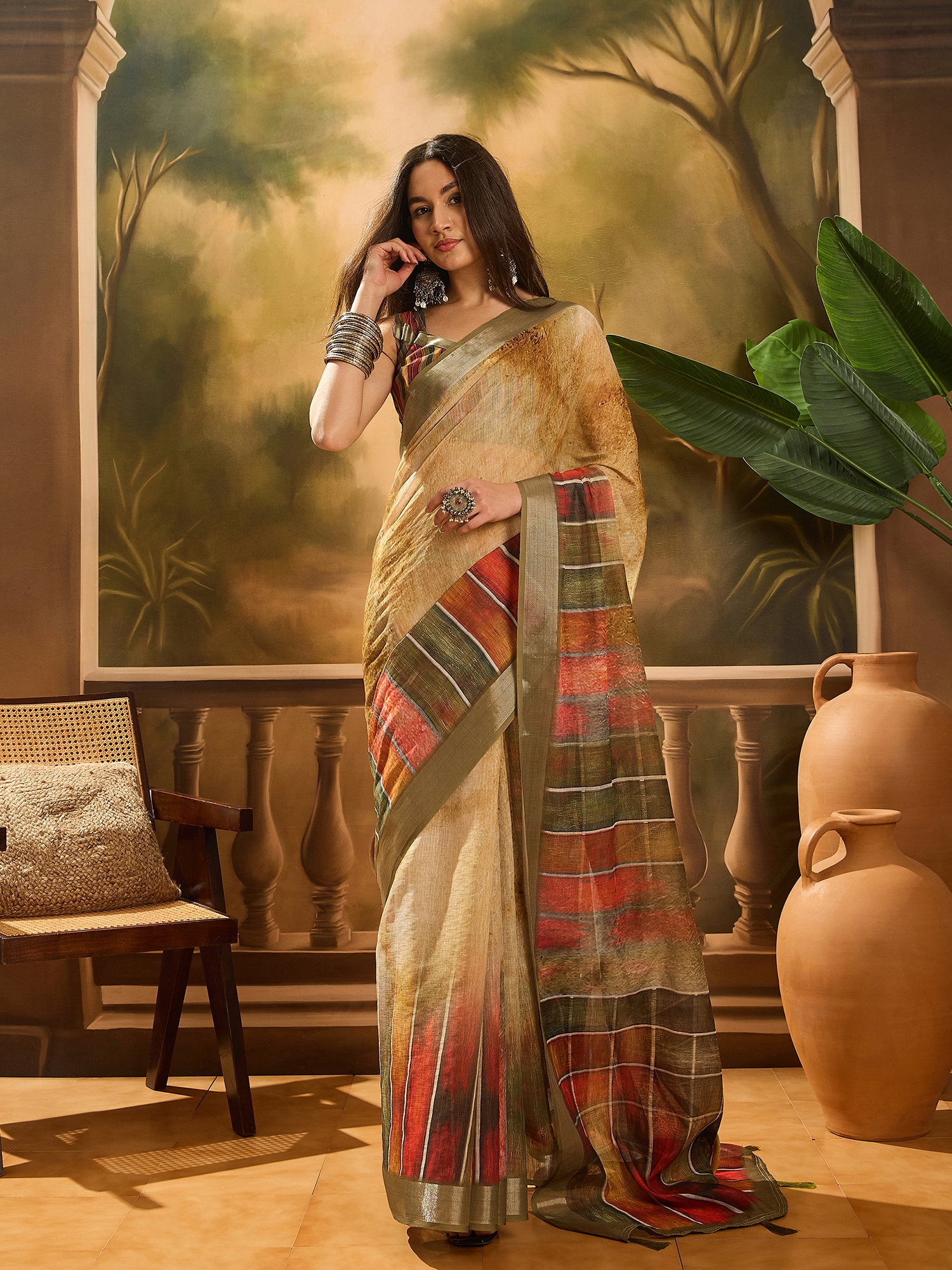 AASTHA FASHION Fashion Dream Womens Coffee Brown Linen Cotton Blend Saree | Soft & Elegant Traditional Wear