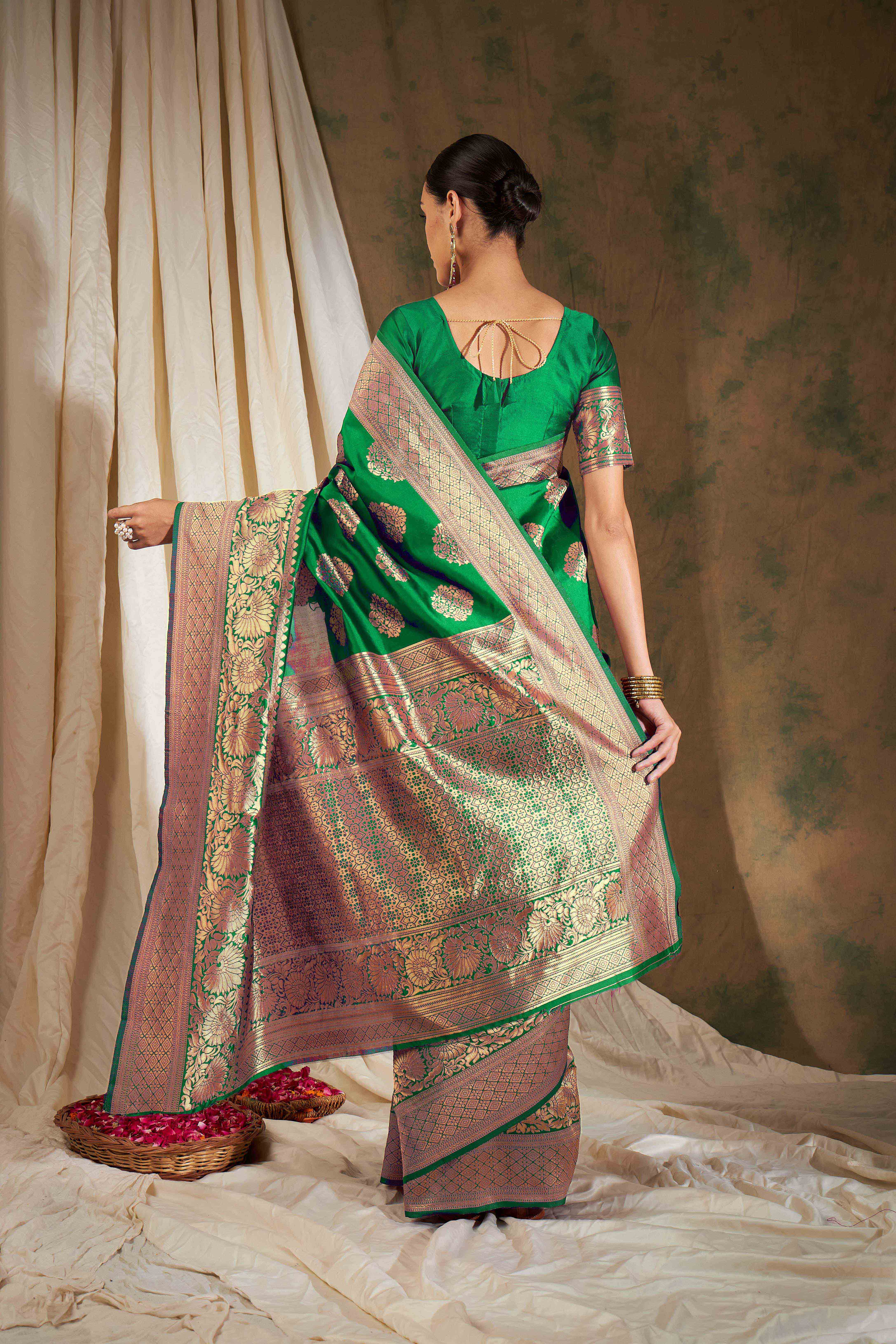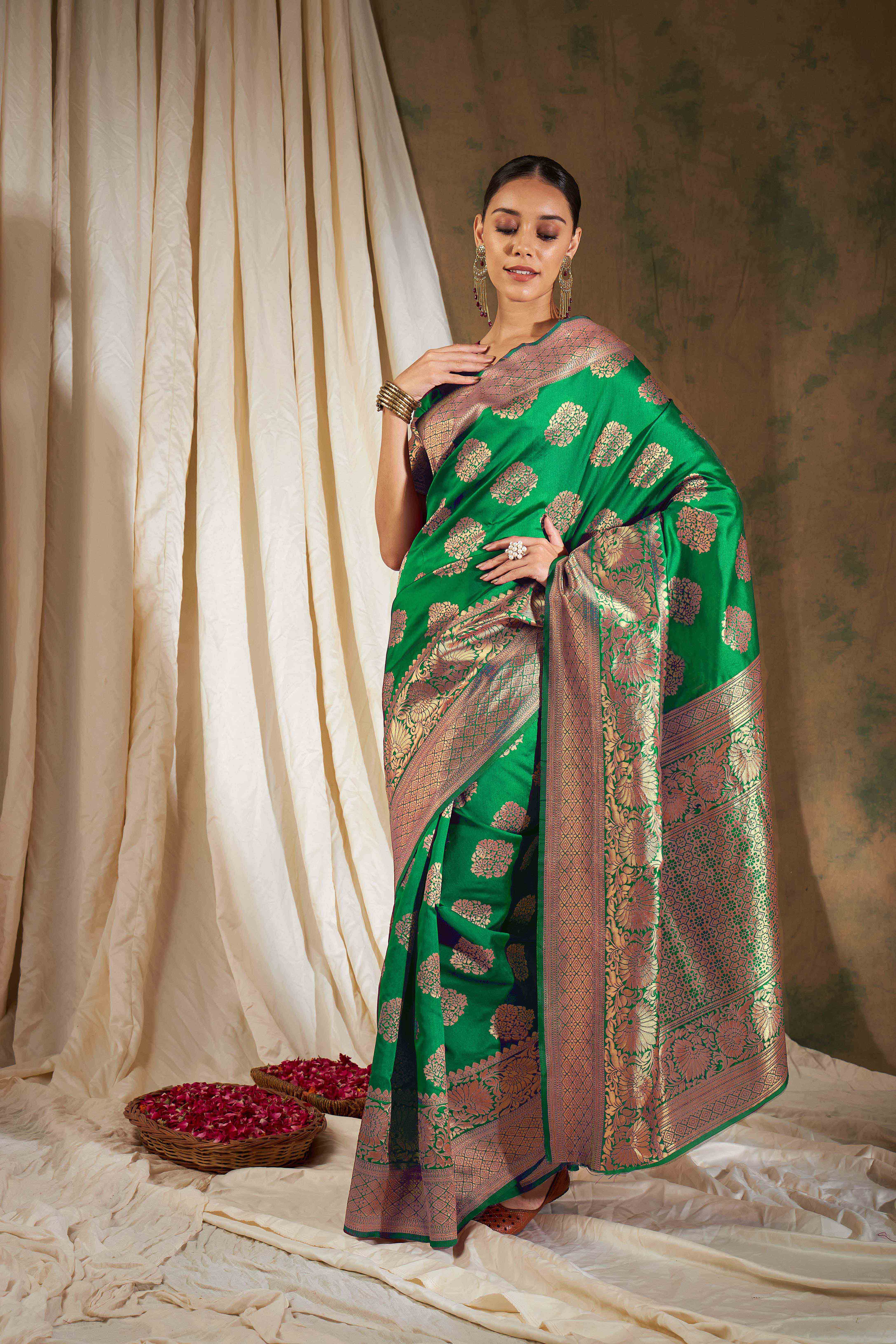 AASTHA FASHION Fashion Dream Womens GREEN Banarasi Silk Saree | Soft & Elegant Traditional Wear