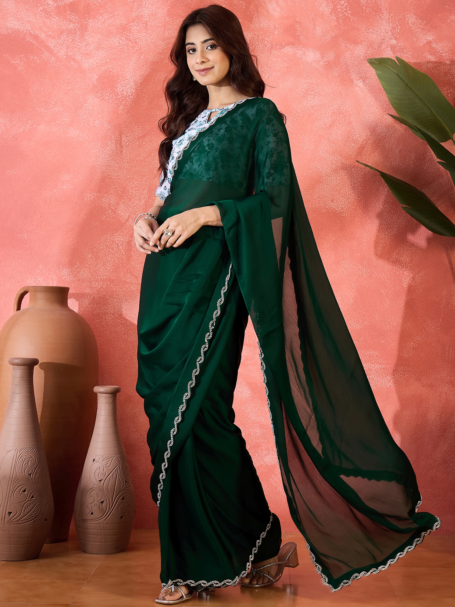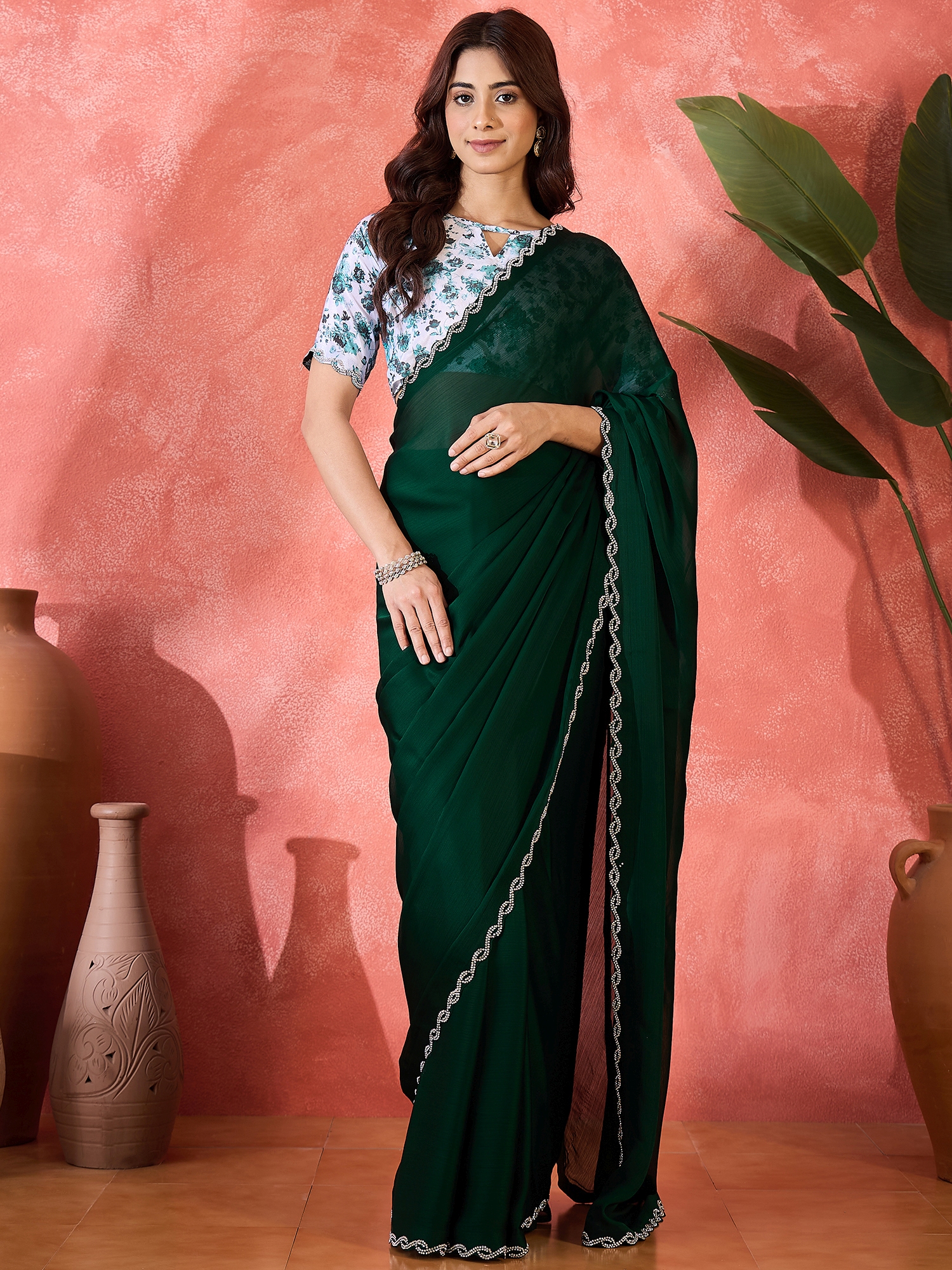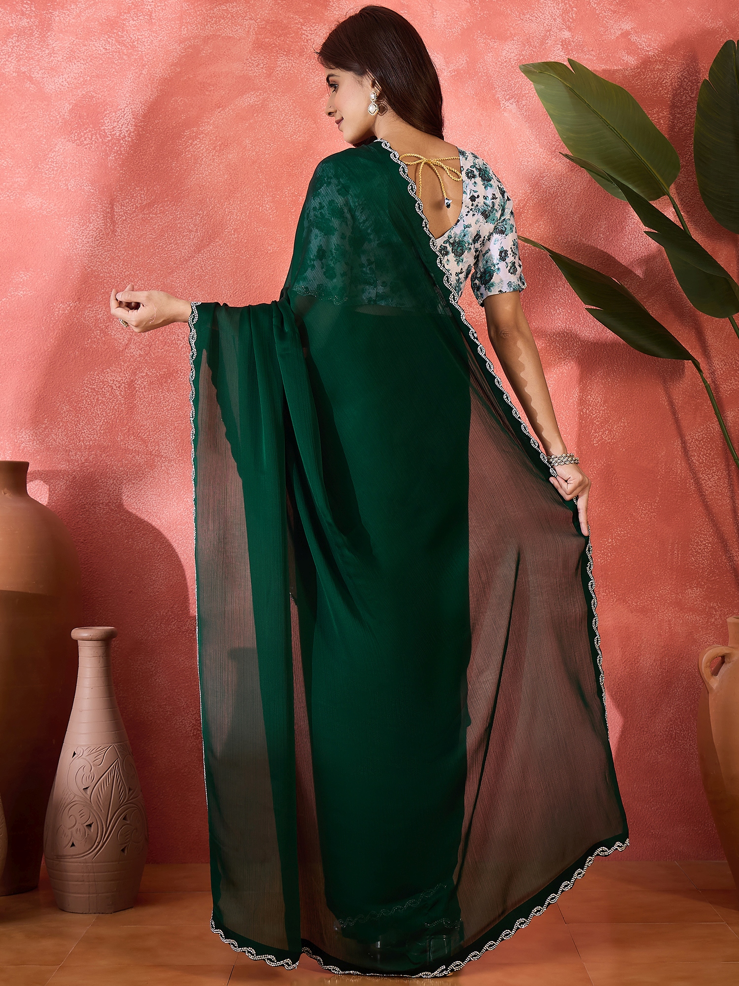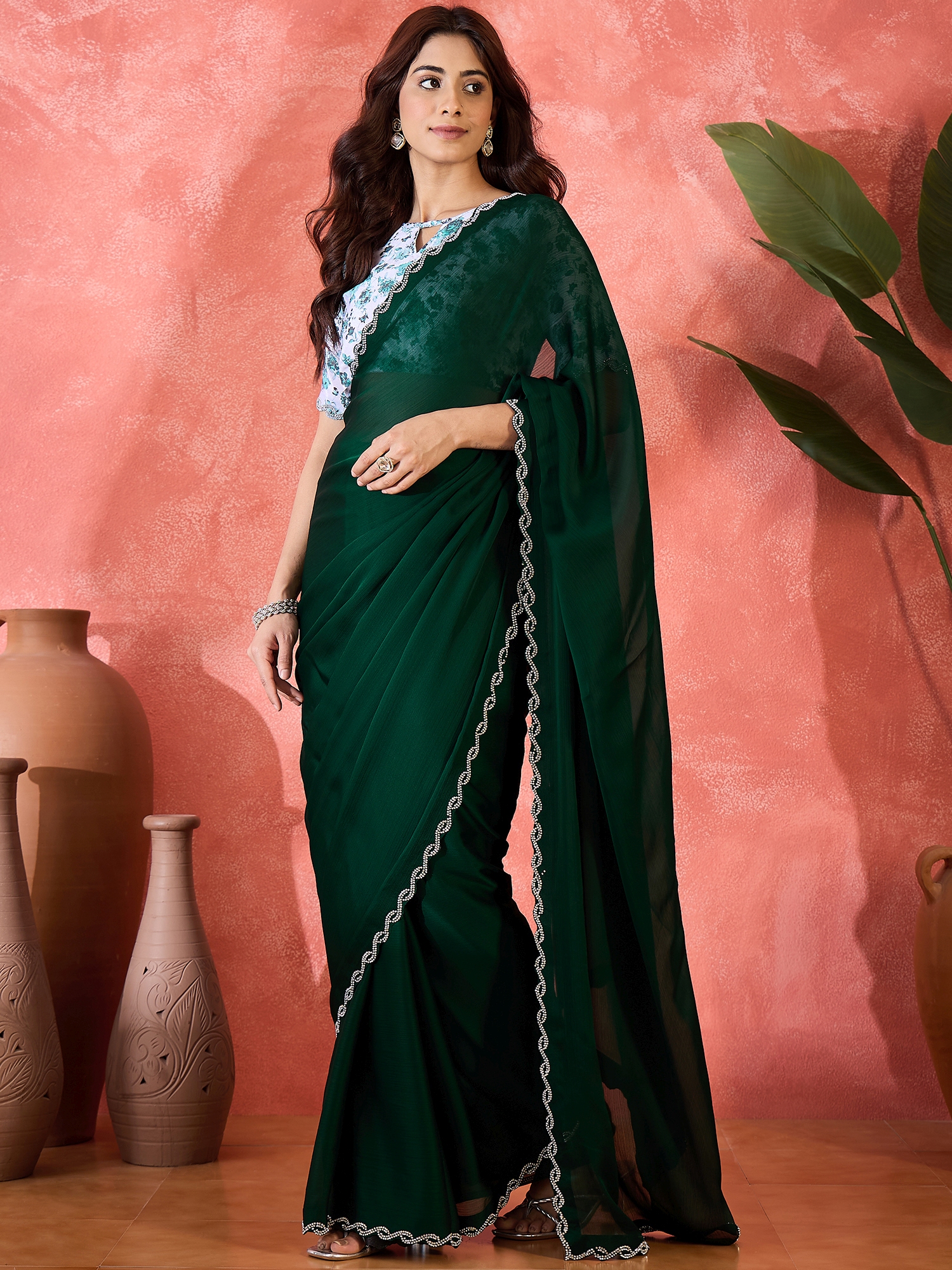 AASTHA FASHION Fashion Dream Womens Green Heavy Satin Chiffon Saree | Soft & Elegant Traditional Wear