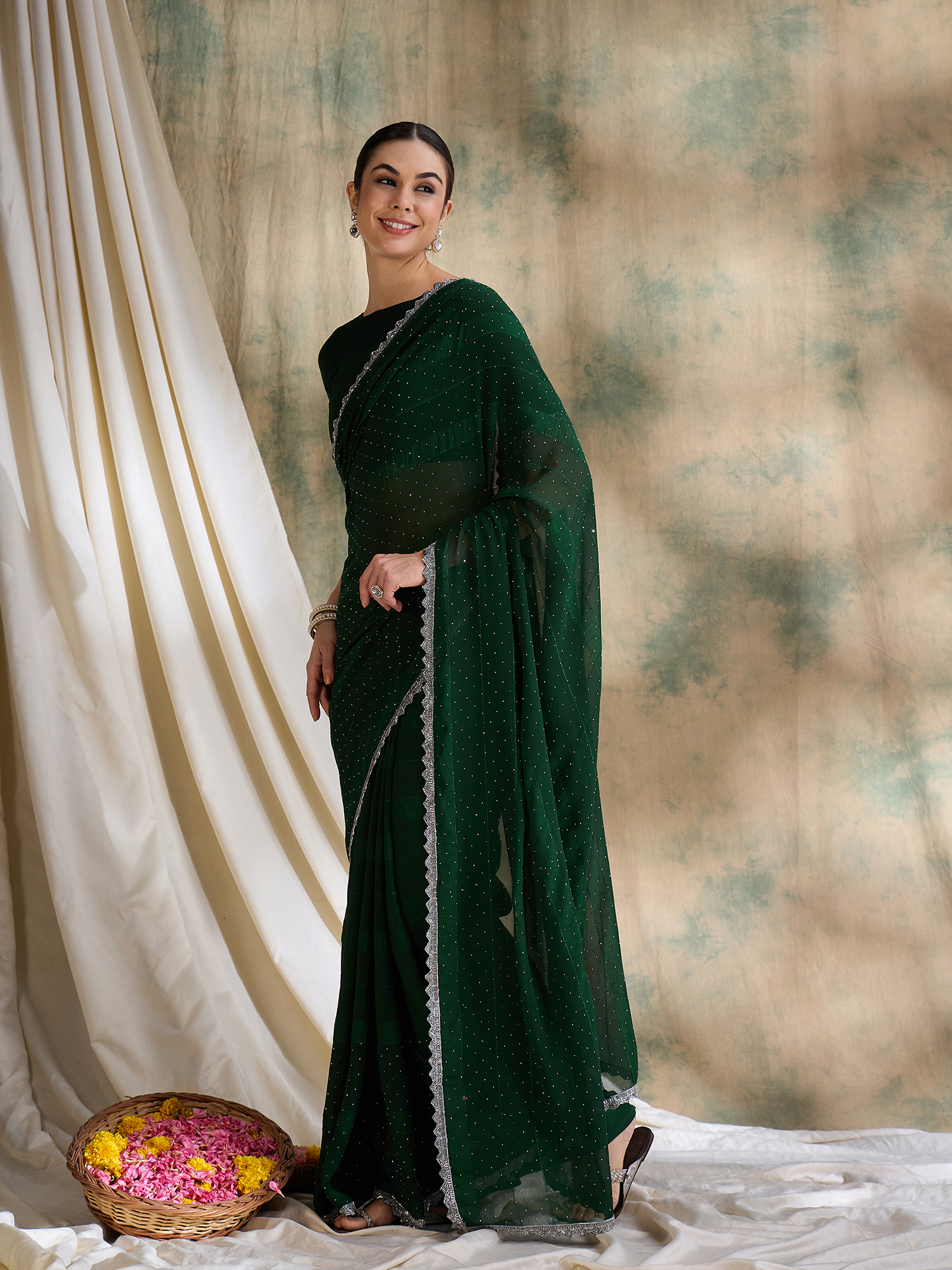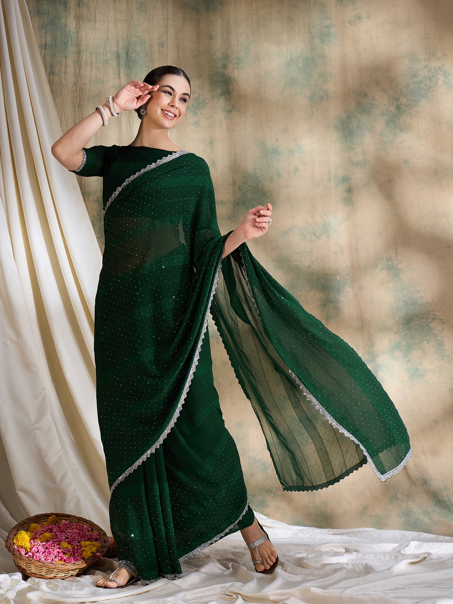 • Saree Fabric-Vichitra Silk ,Blouse Fabric-Silk Blend