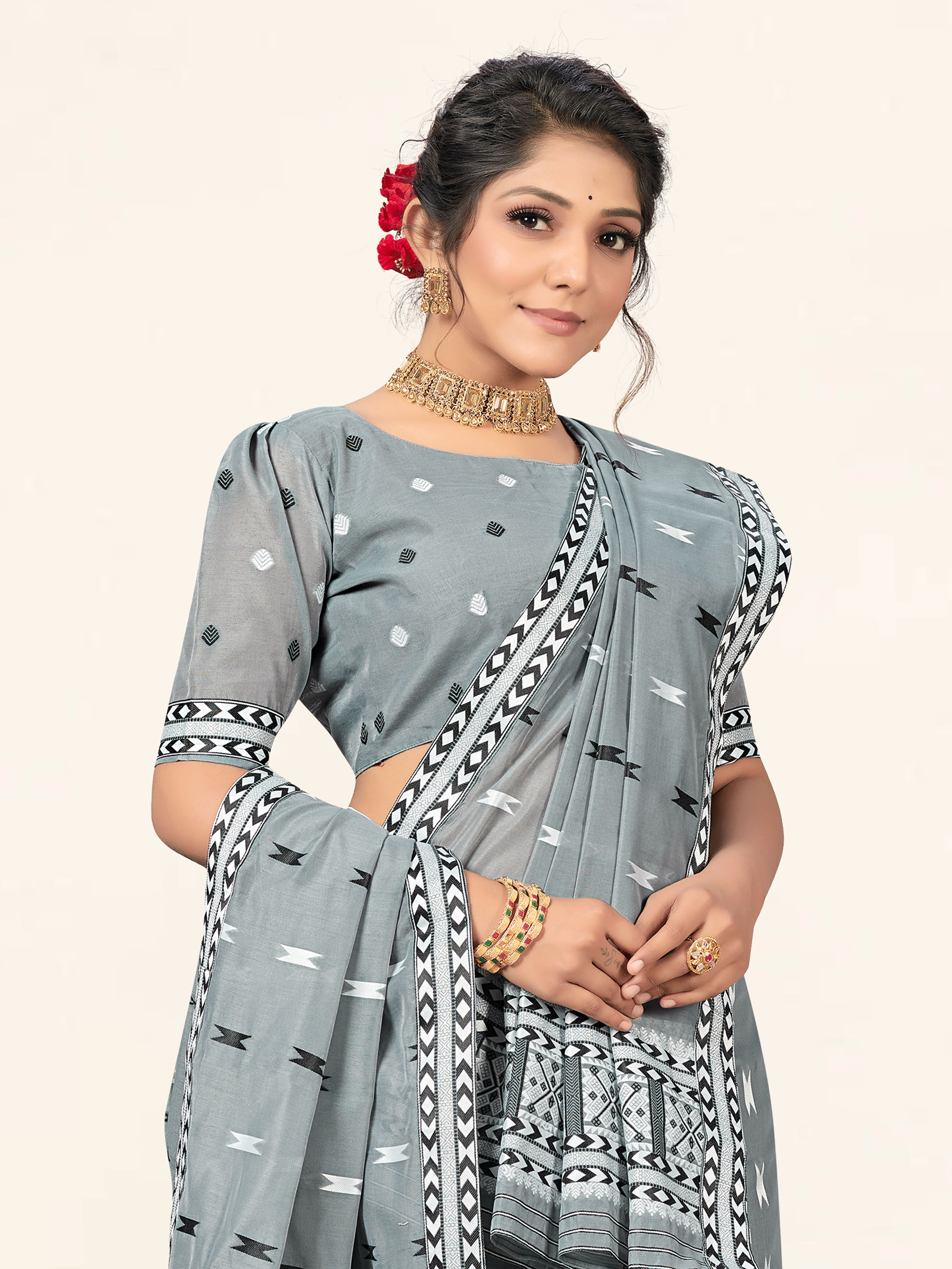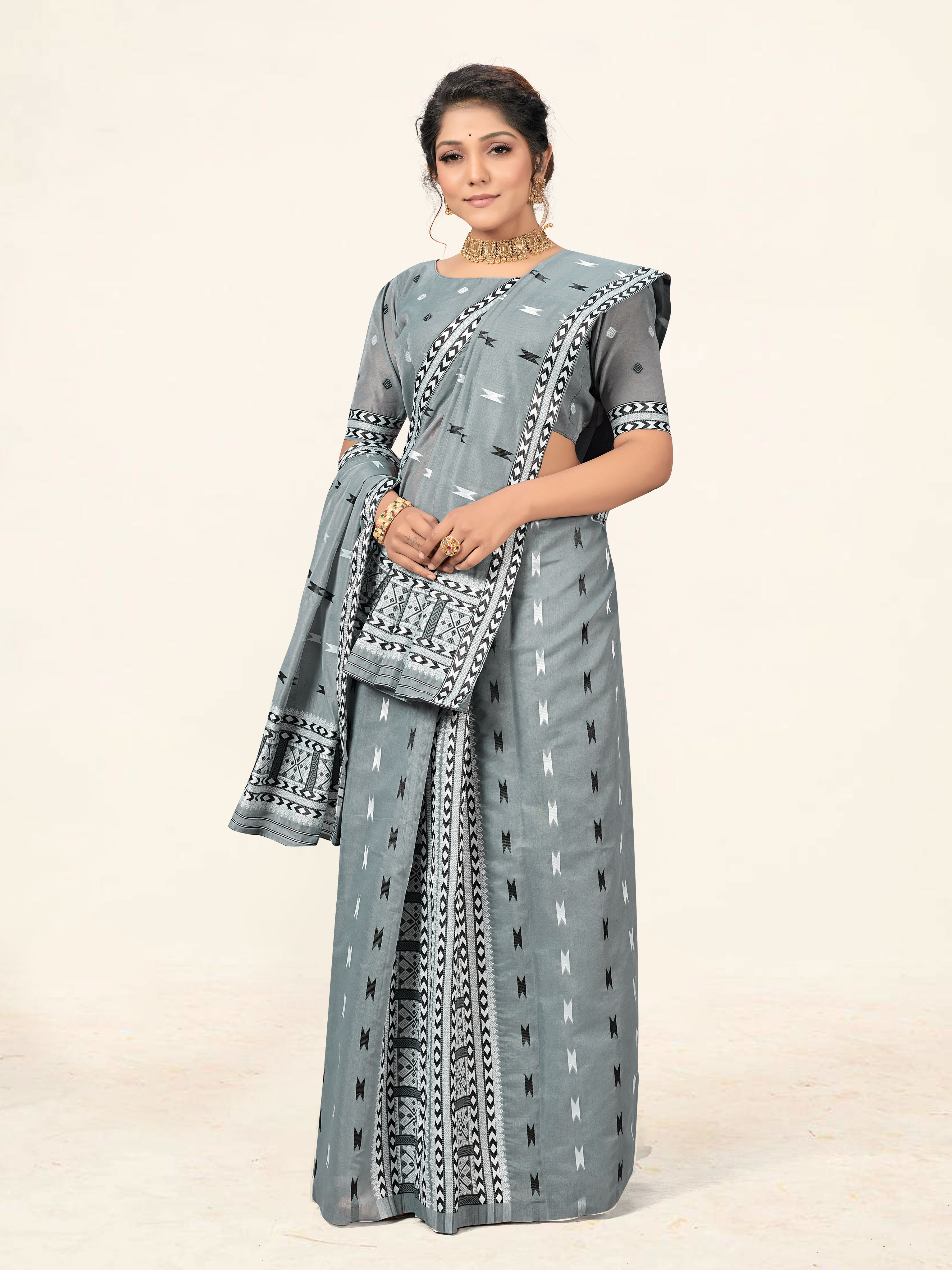 AASTHA FASHION Fashion Dream Womens Grey (Black,White) Cotton Saree | Soft & Elegant Traditional Wear
