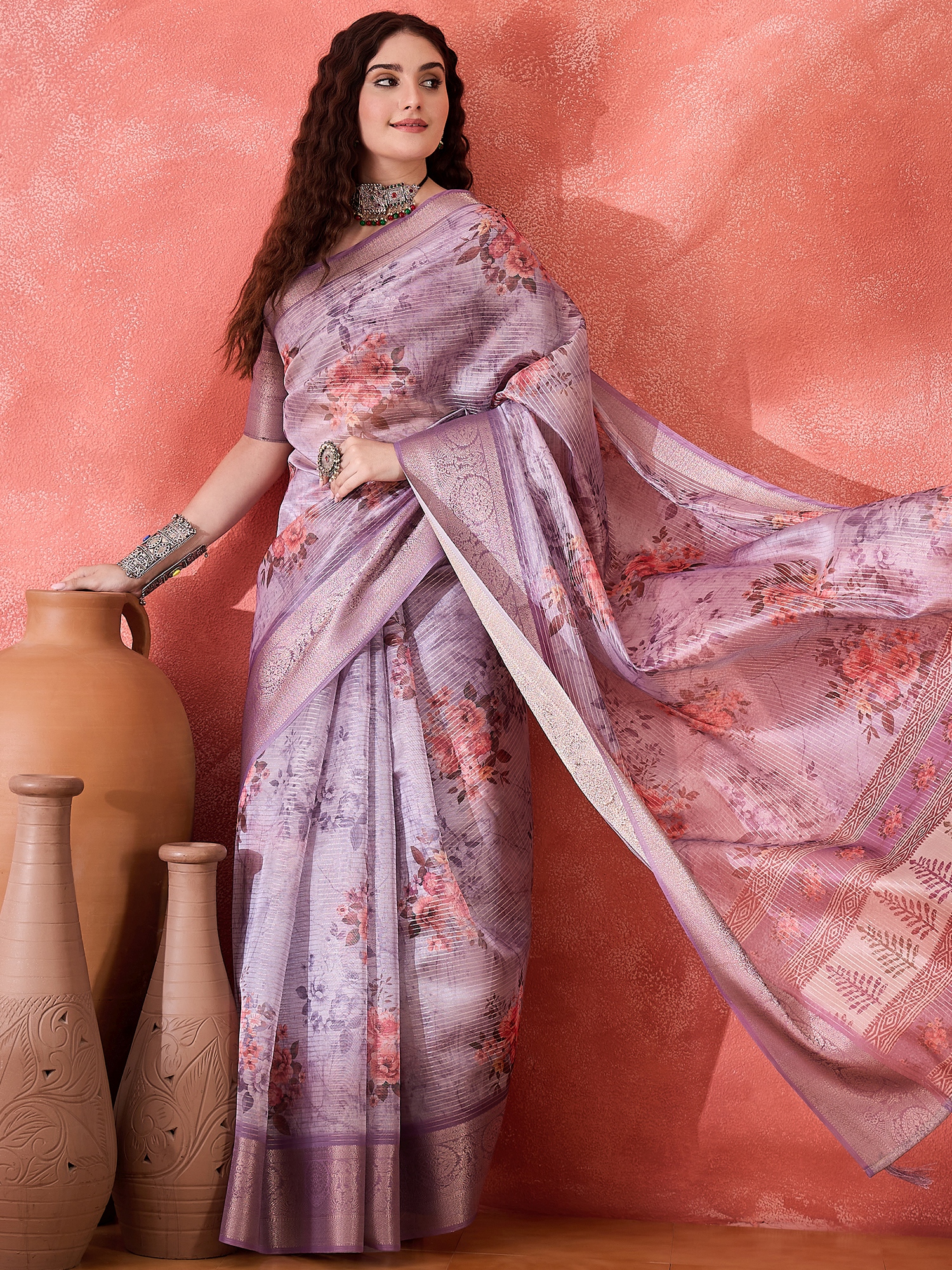• Saree Work-Digital Print ,Blouse Work- Tusser Silk