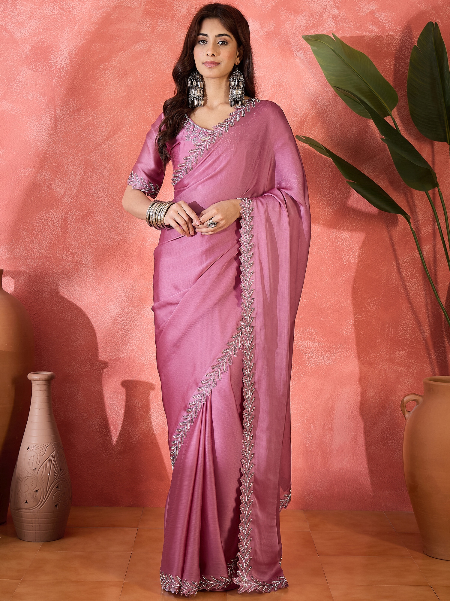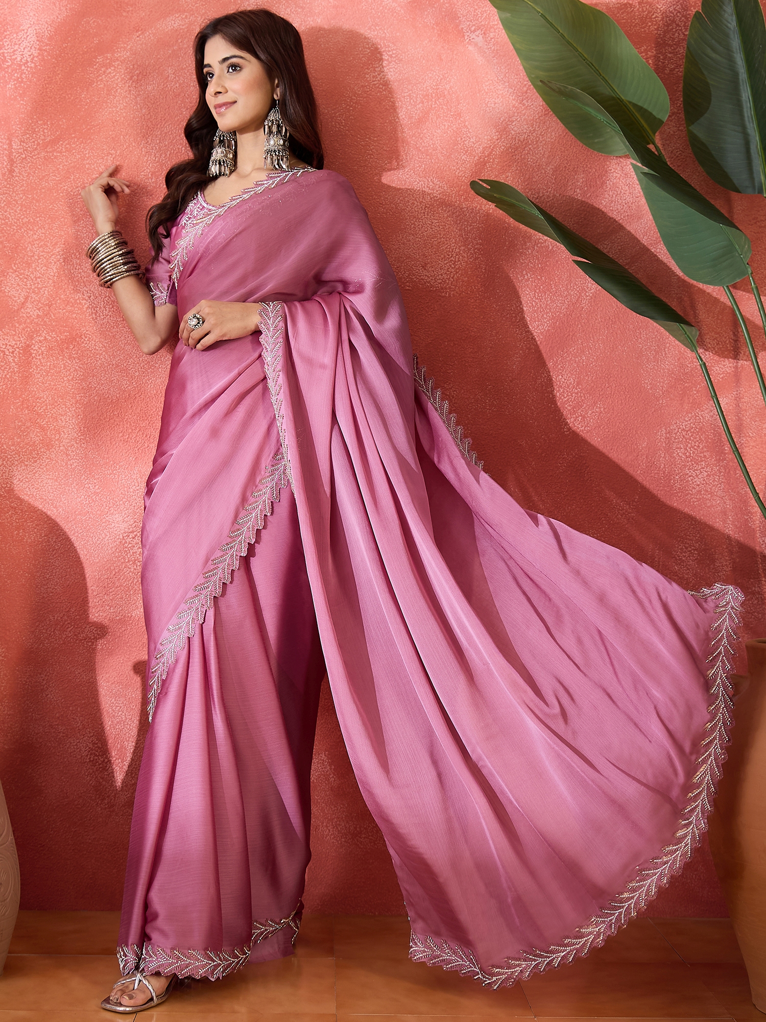 • Saree Fabric-Heavy Satin Chiffon ,Blouse Fabric-Heavy Satin Chiffon