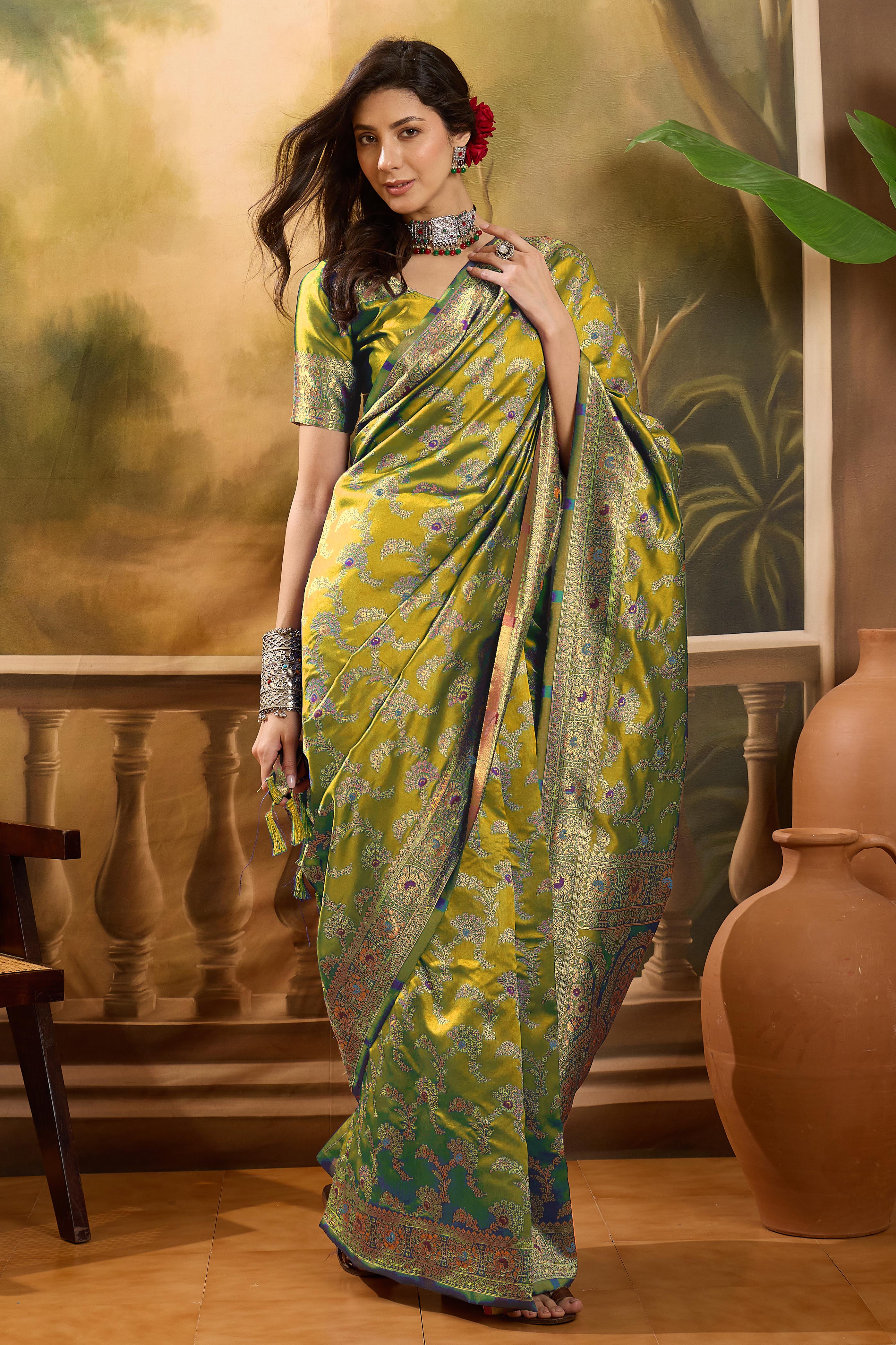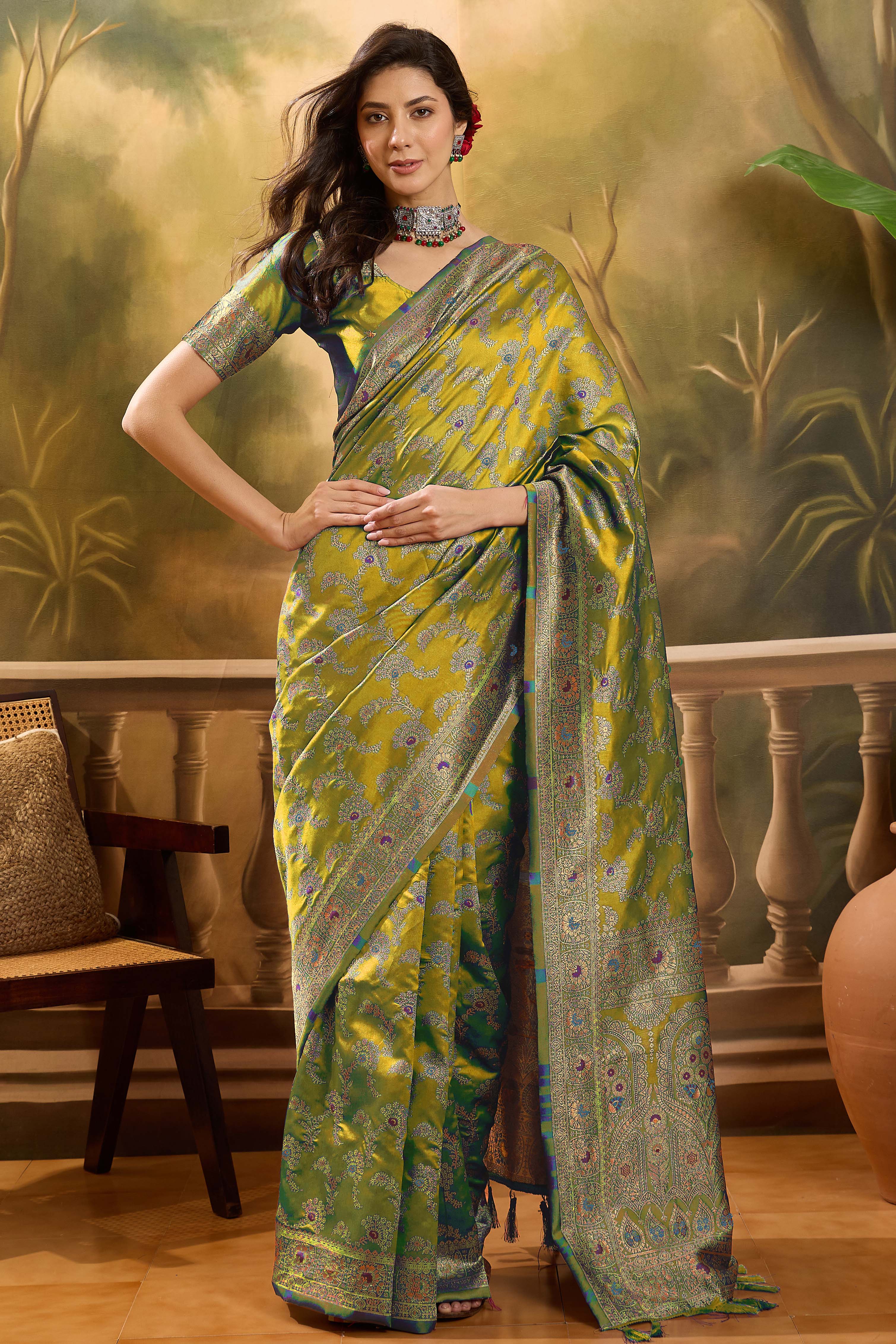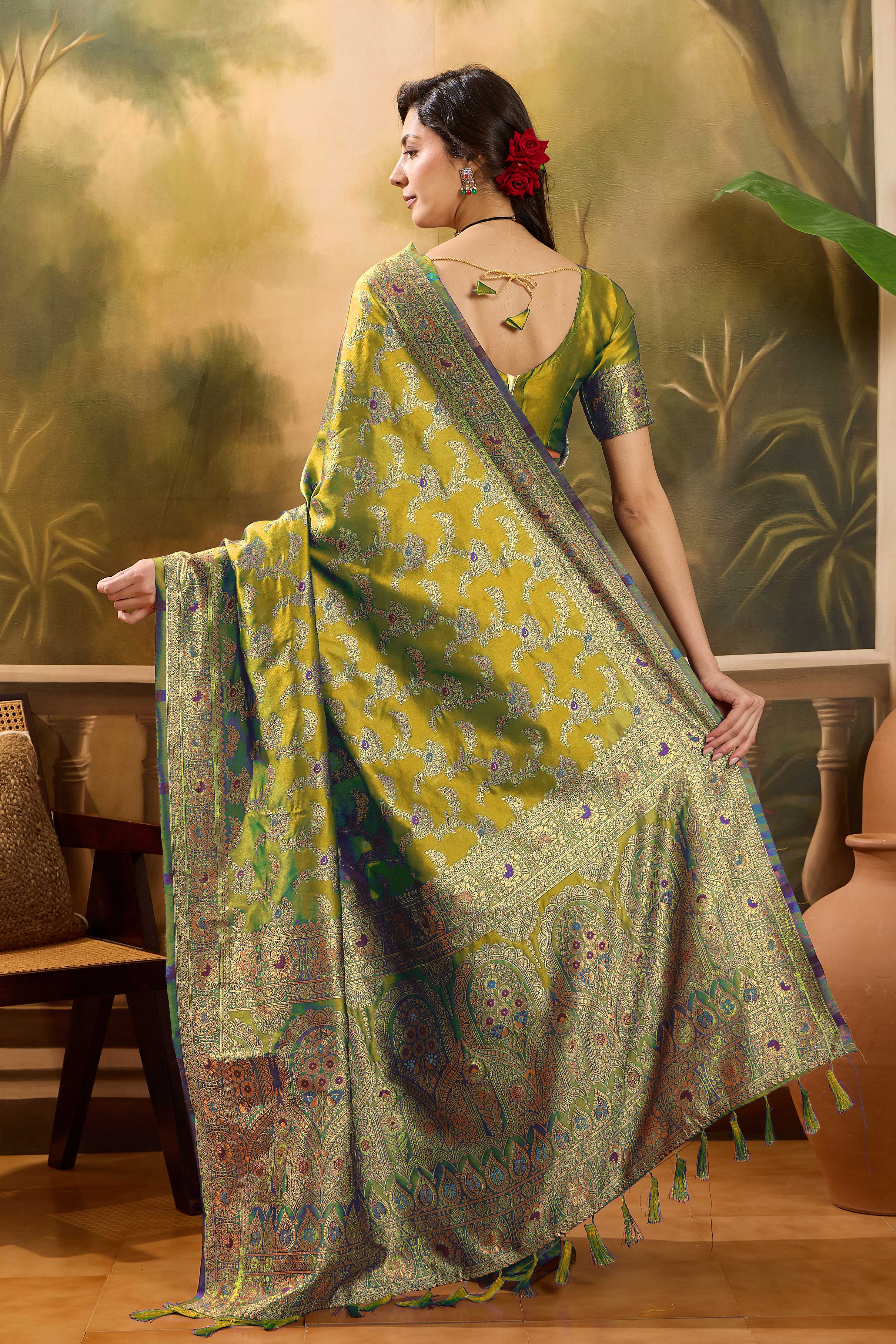 • Saree Work-Weaving ,Blouse Work- Banarasi Jacquard