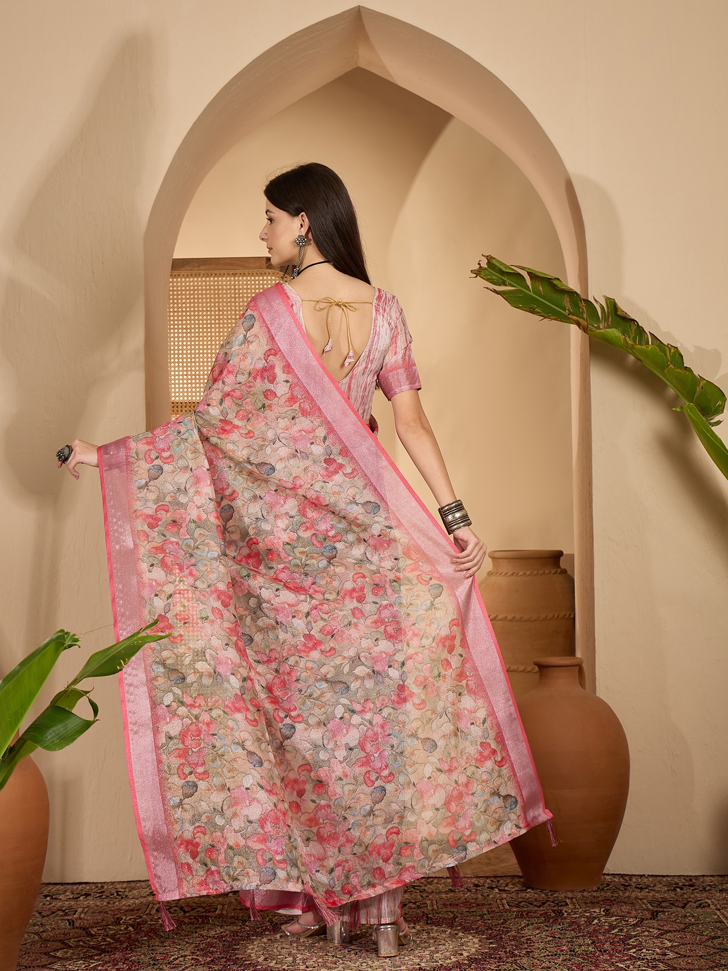 • Saree Fabric-Linen Zari Silver ,Blouse Fabric-Linen Zari Silver