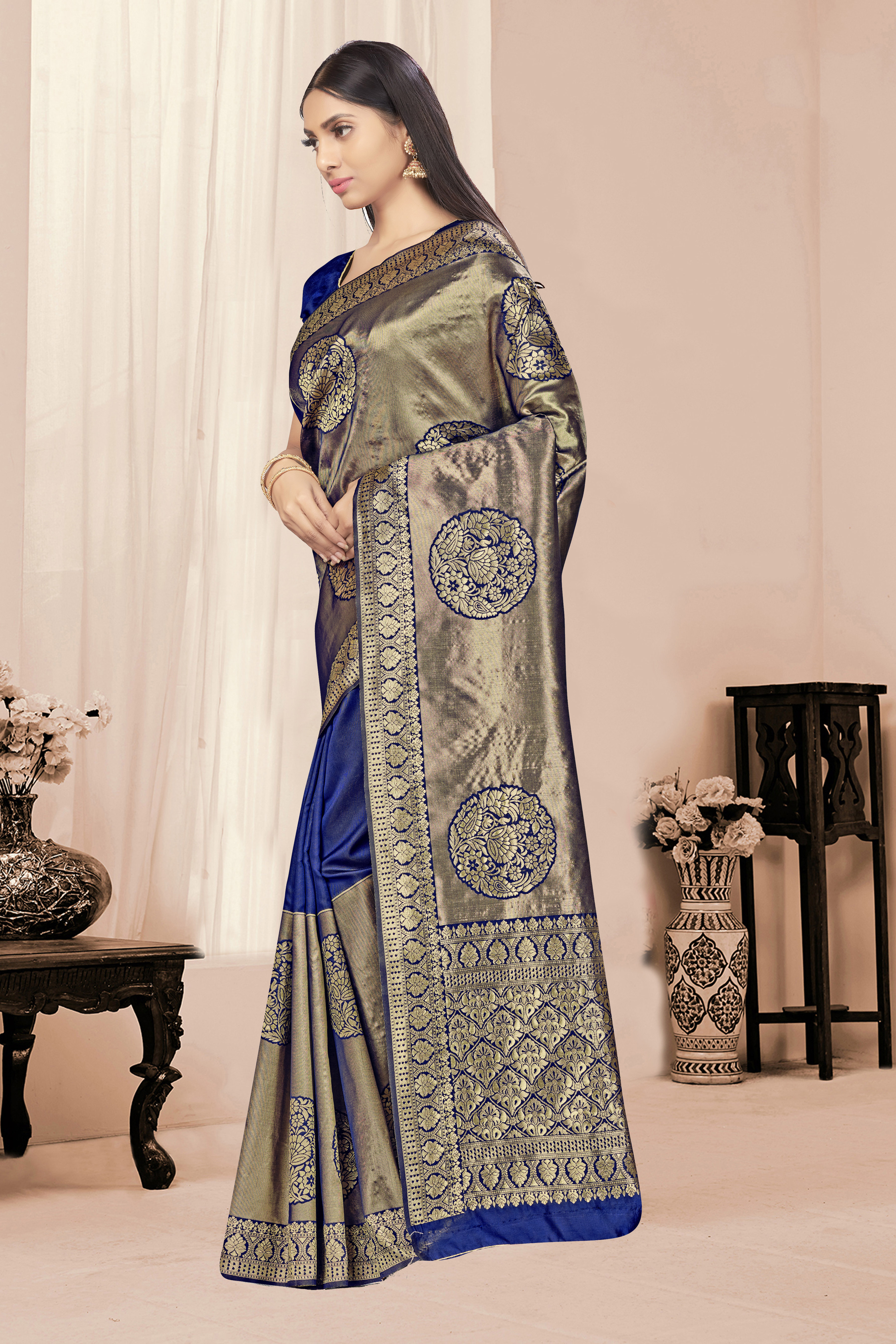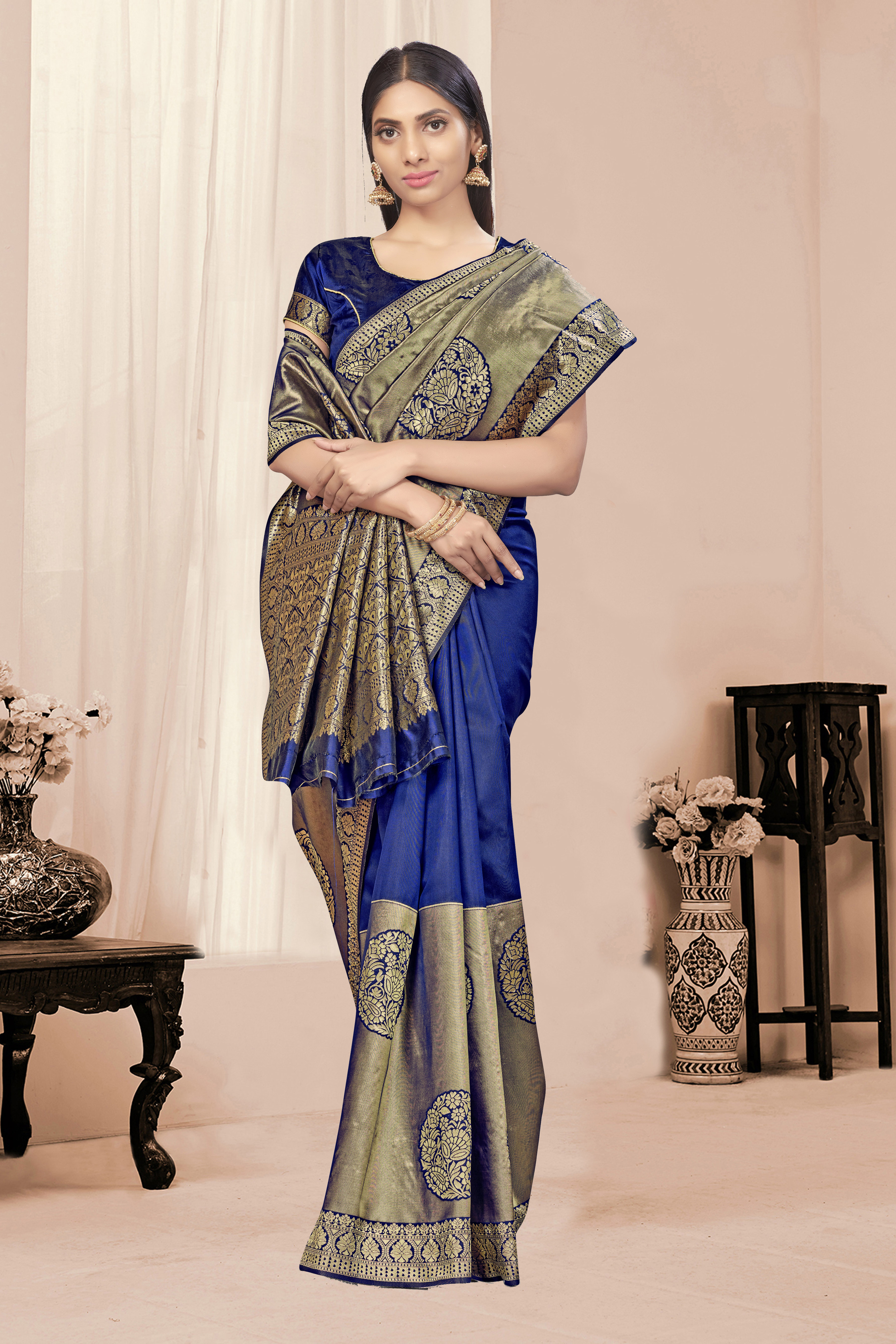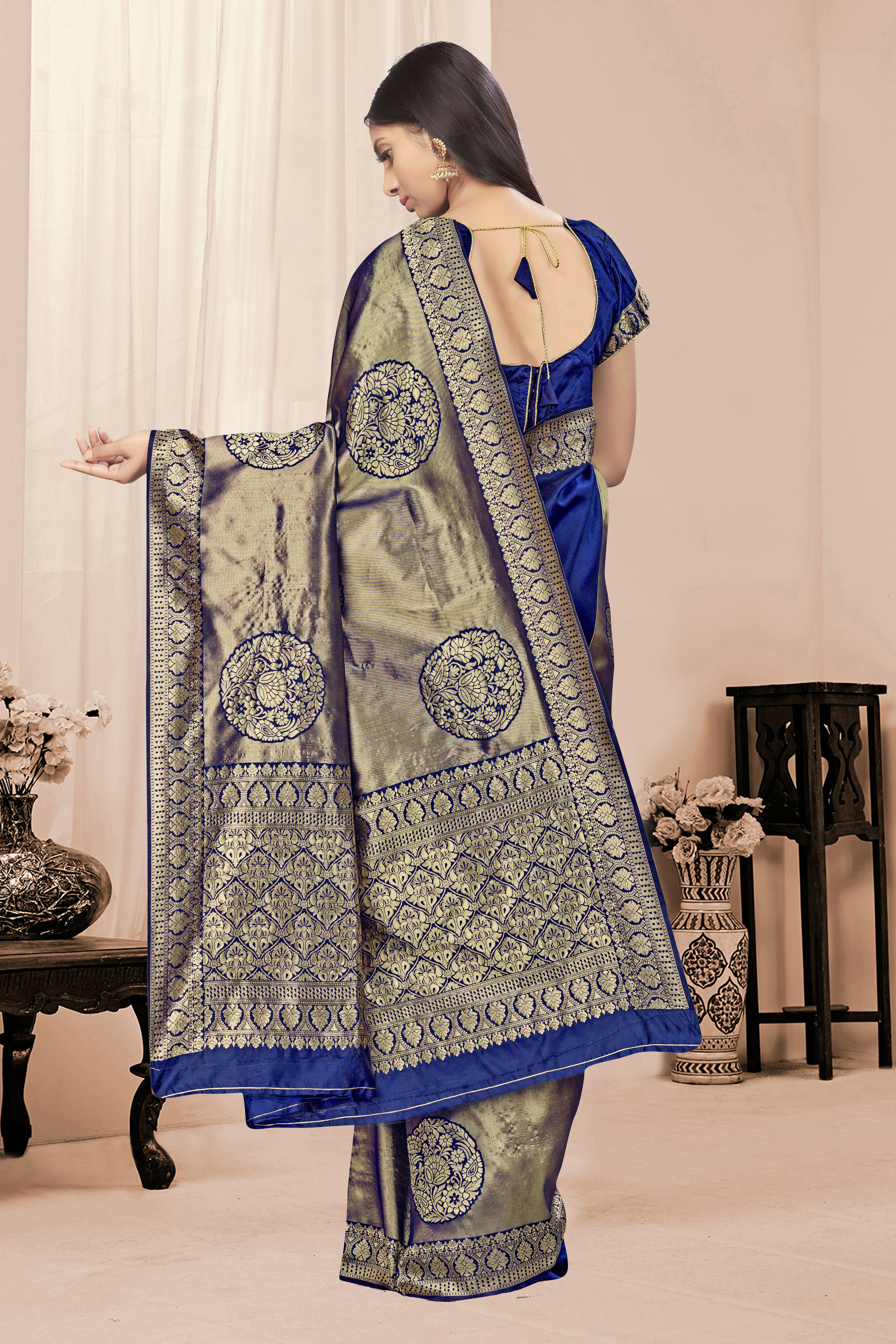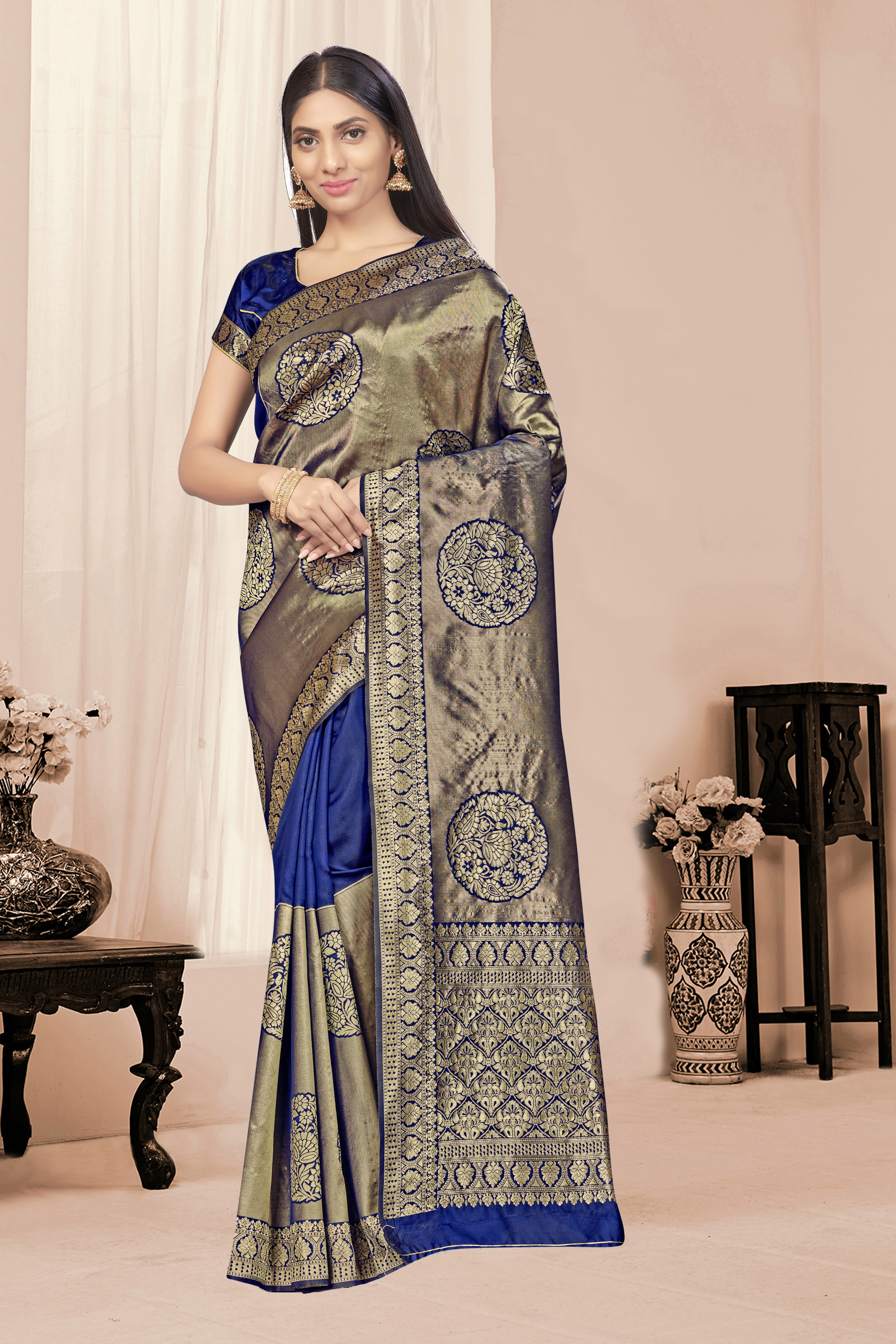 AASTHA FASHION Fashion Dream Womens Navy Blue BANARASI SILK Saree | Soft & Elegant Traditional Wear