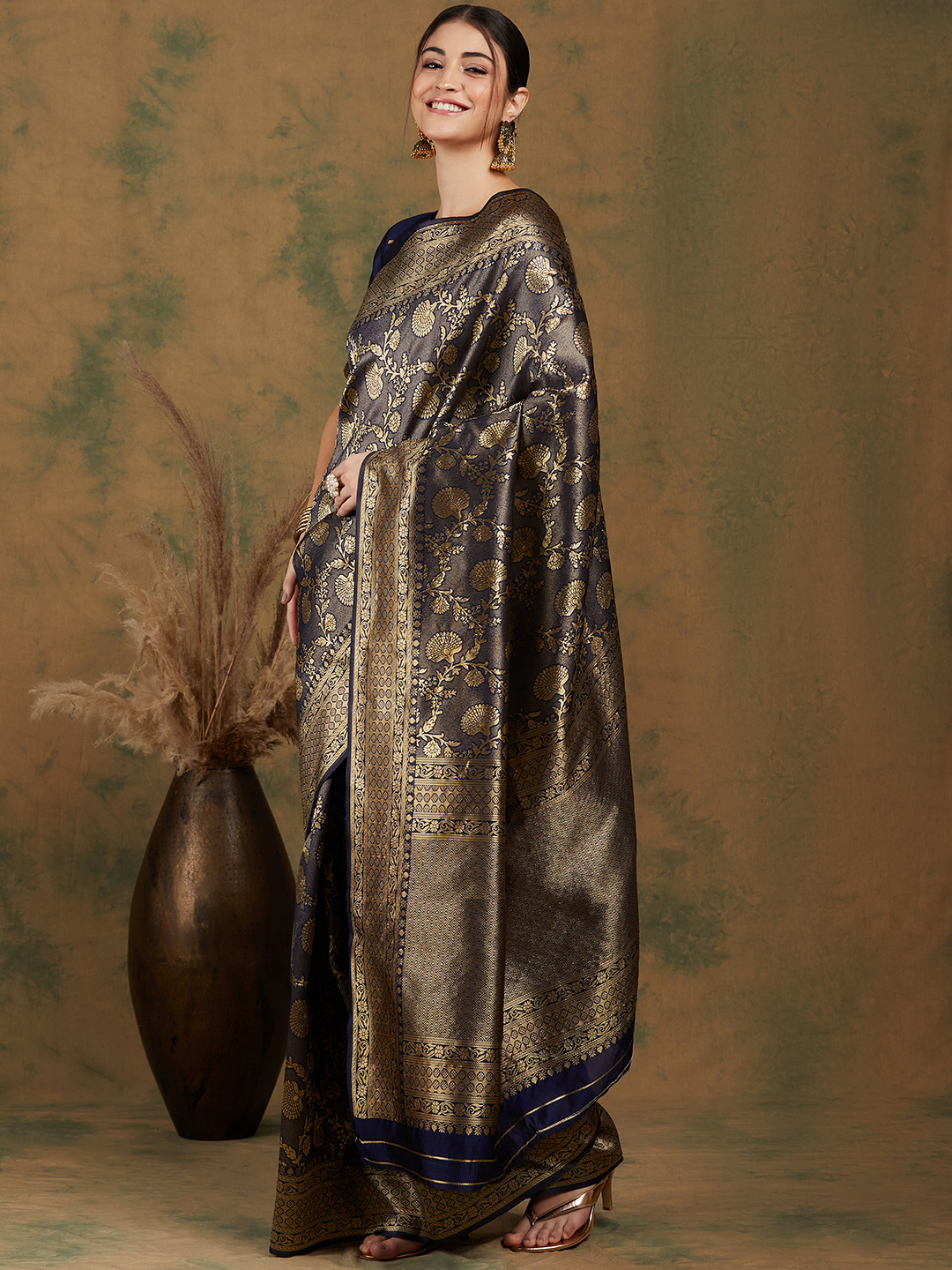AASTHA FASHION Fashion Dream Womens Navy Blue Banarasi Silk Saree | Soft & Elegant Traditional Wear