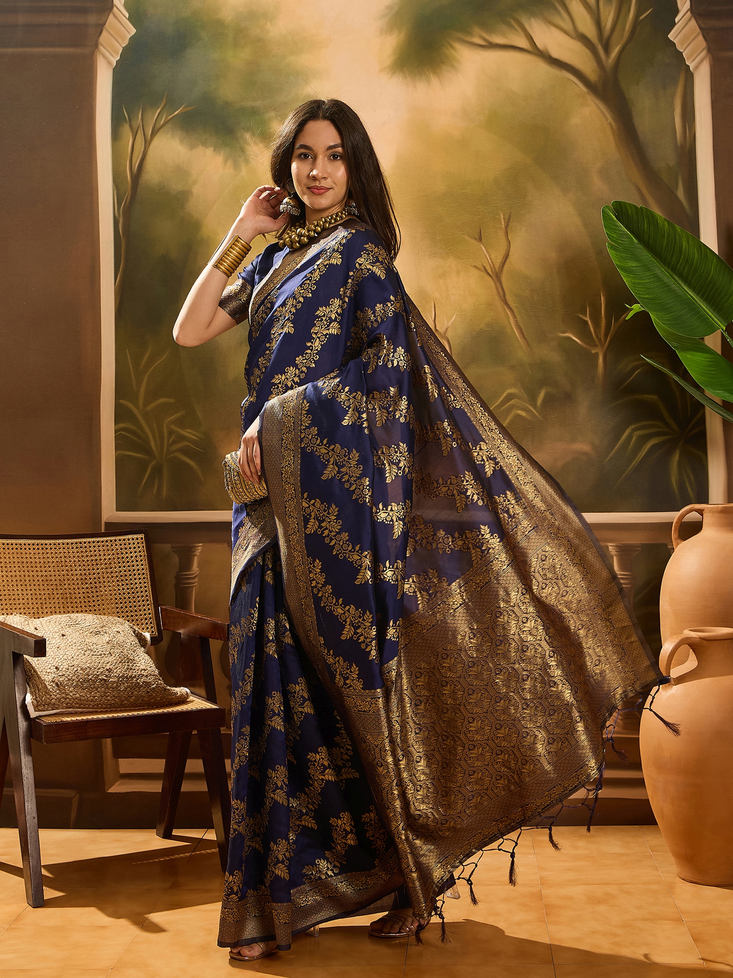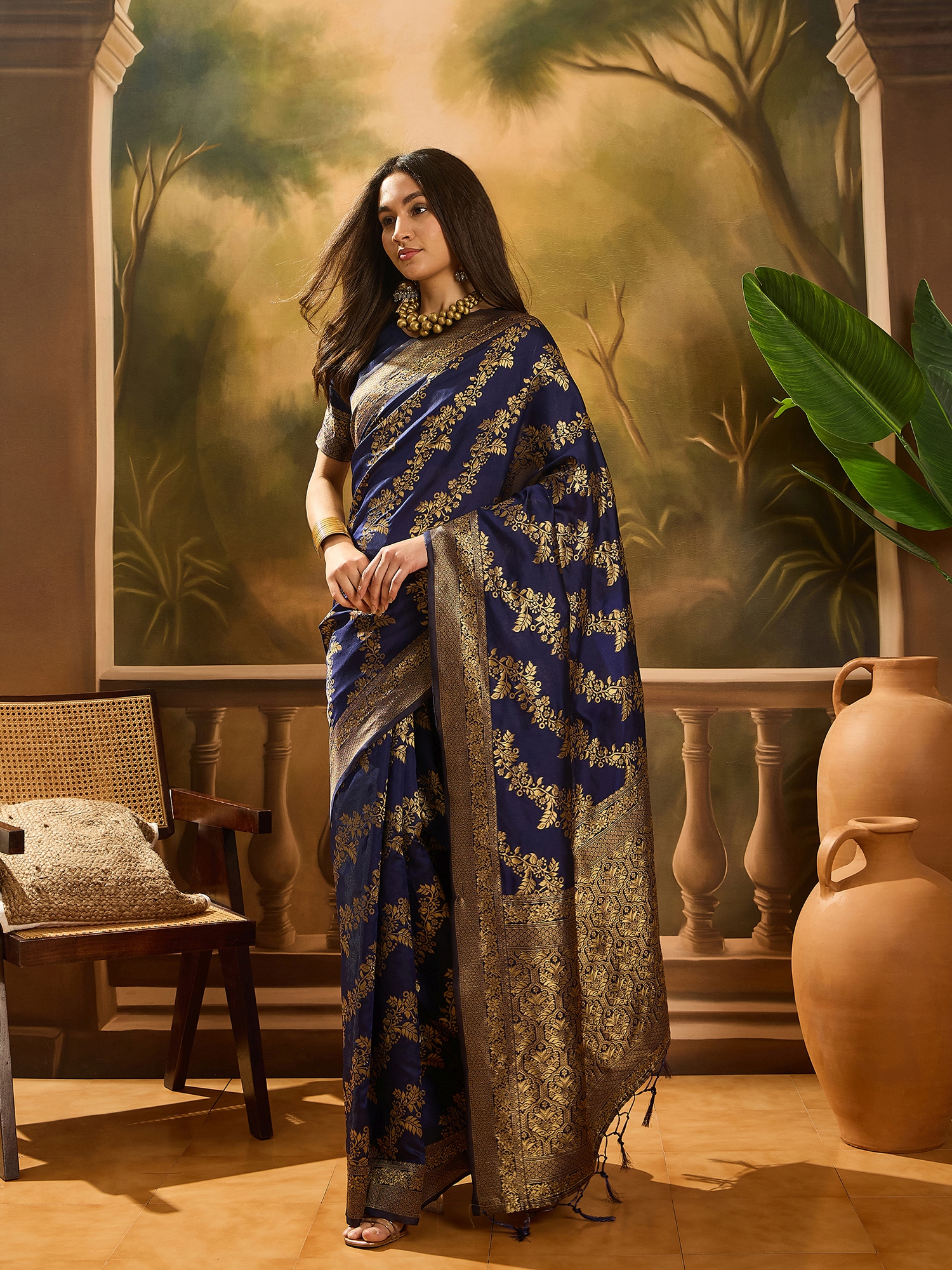 AASTHA FASHION Fashion Dream Womens Navy Blue Banarasi Silk Saree | Soft & Elegant Traditional Wear