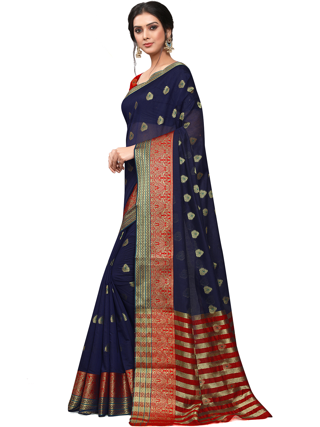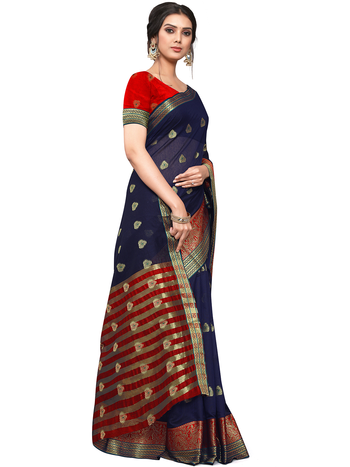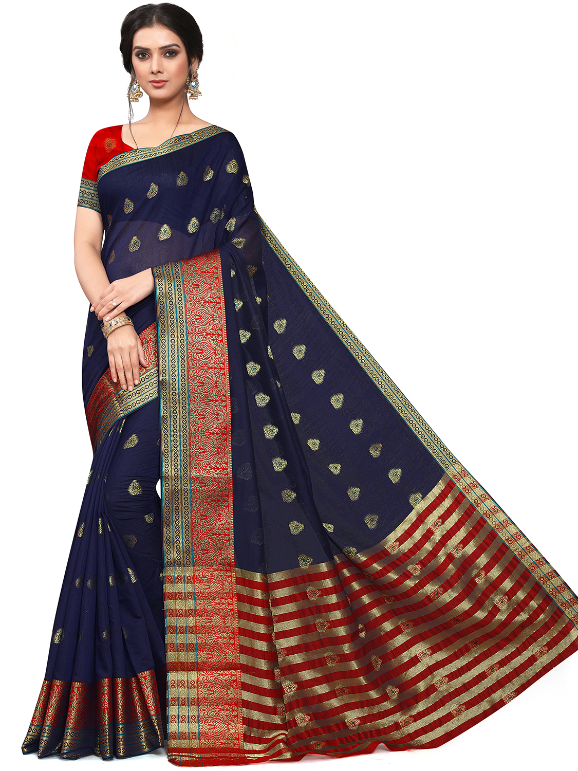 AASTHA FASHION Fashion Dream Womens Navy Blue Cotton Blend Saree | Soft & Elegant Traditional Wear