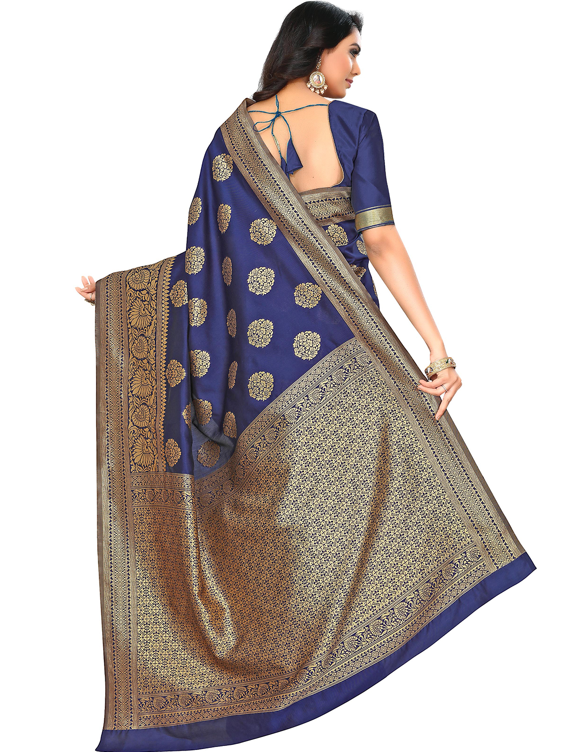 AASTHA FASHION Fashion Dream Womens Navy Blue Silk Blend Saree | Soft & Elegant Traditional Wear