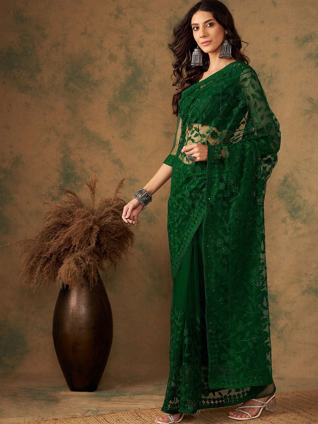 Fashion Dream Womens Olive Net Saree | Soft & Elegant Traditional Wear