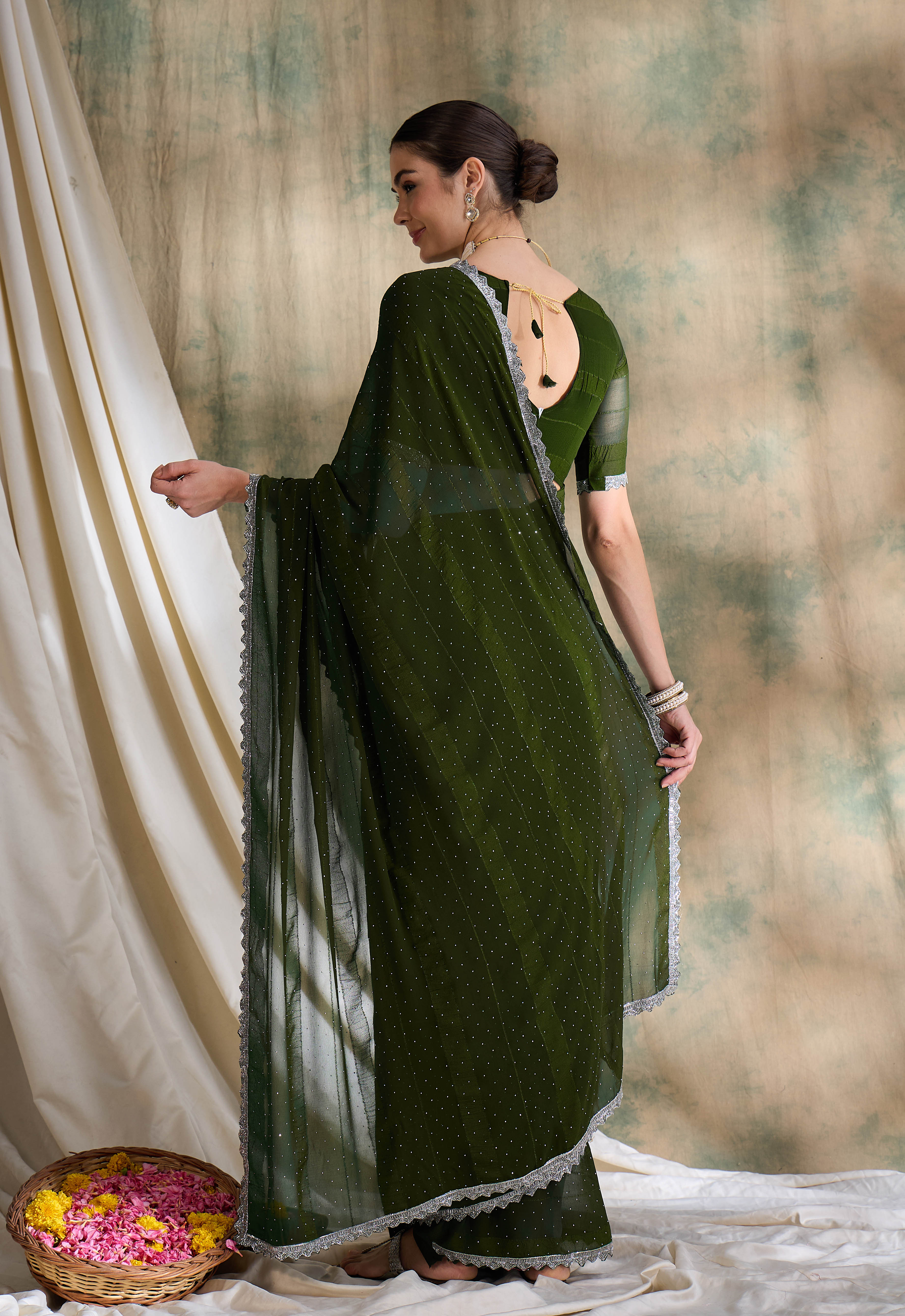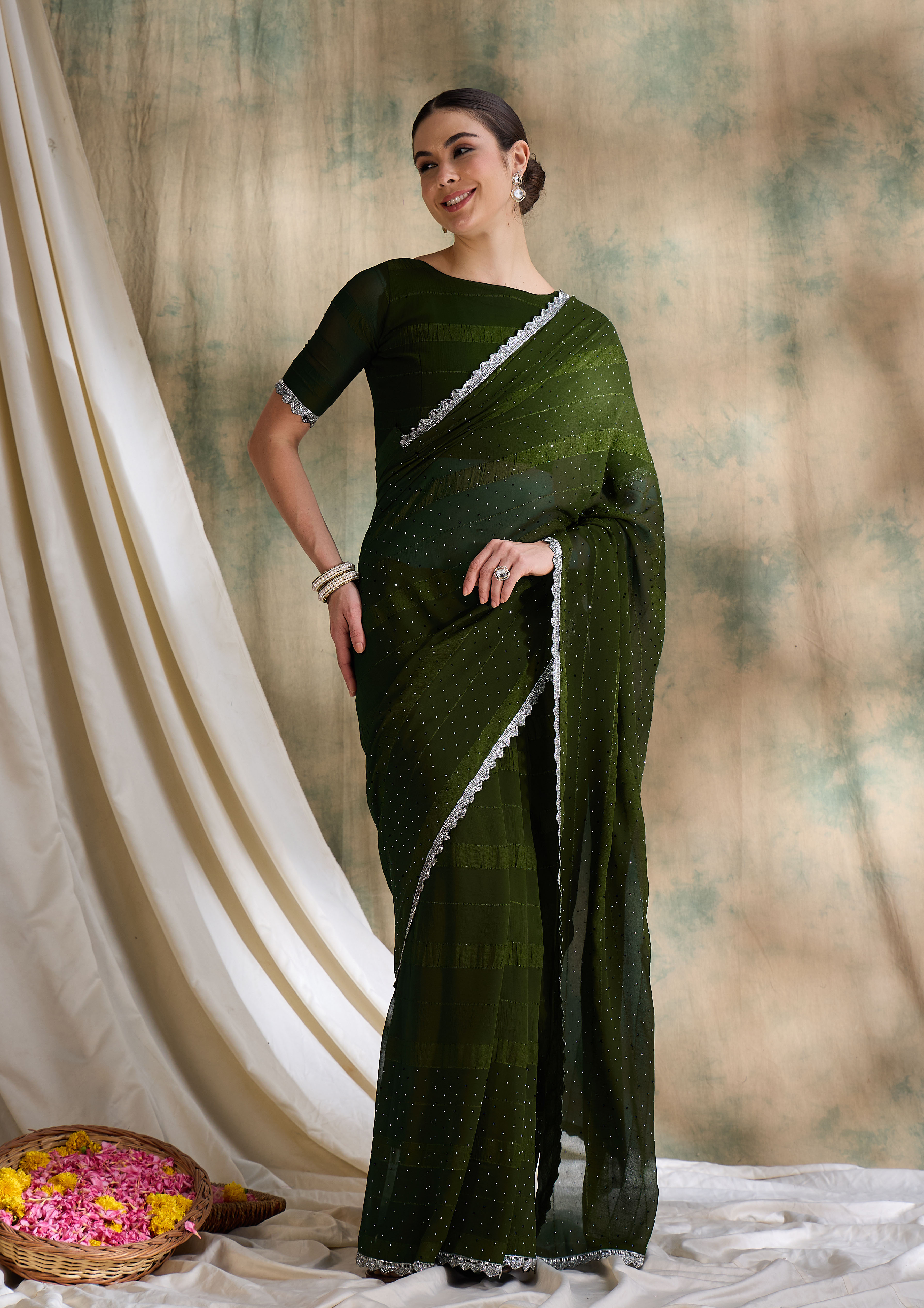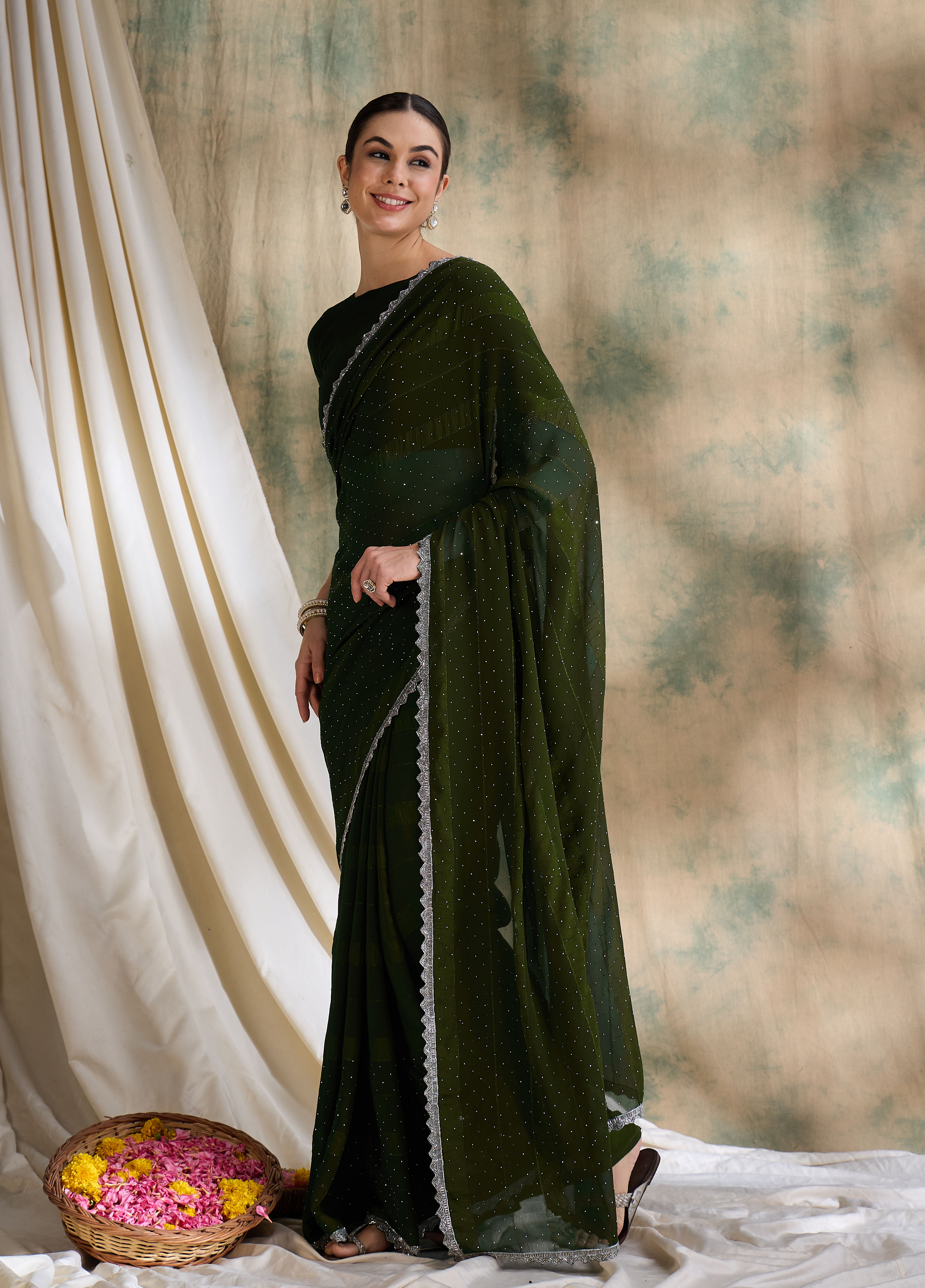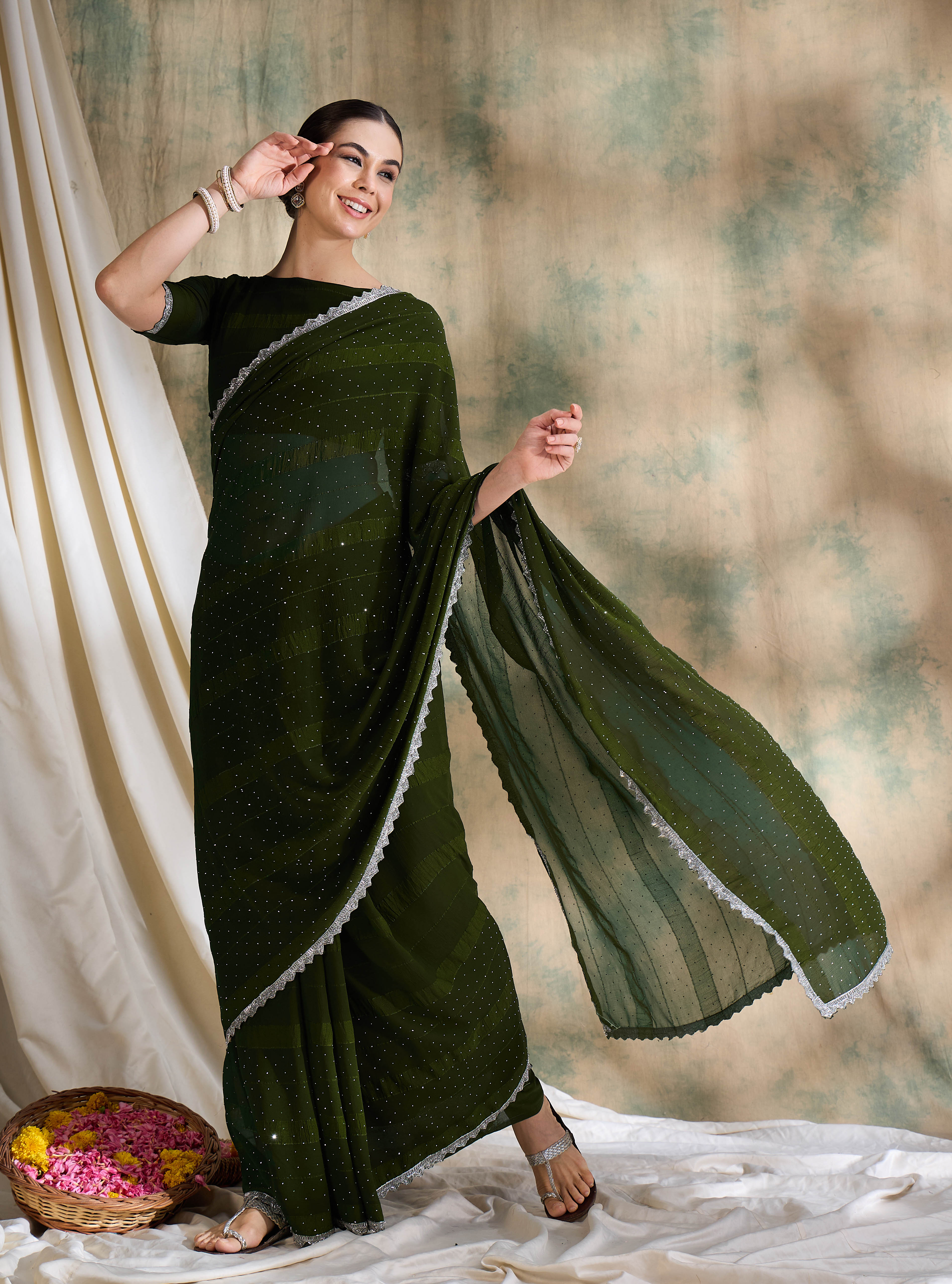 AASTHA FASHION Fashion Dream Womens Olive Vichitra Silk Saree | Soft & Elegant Traditional Wear