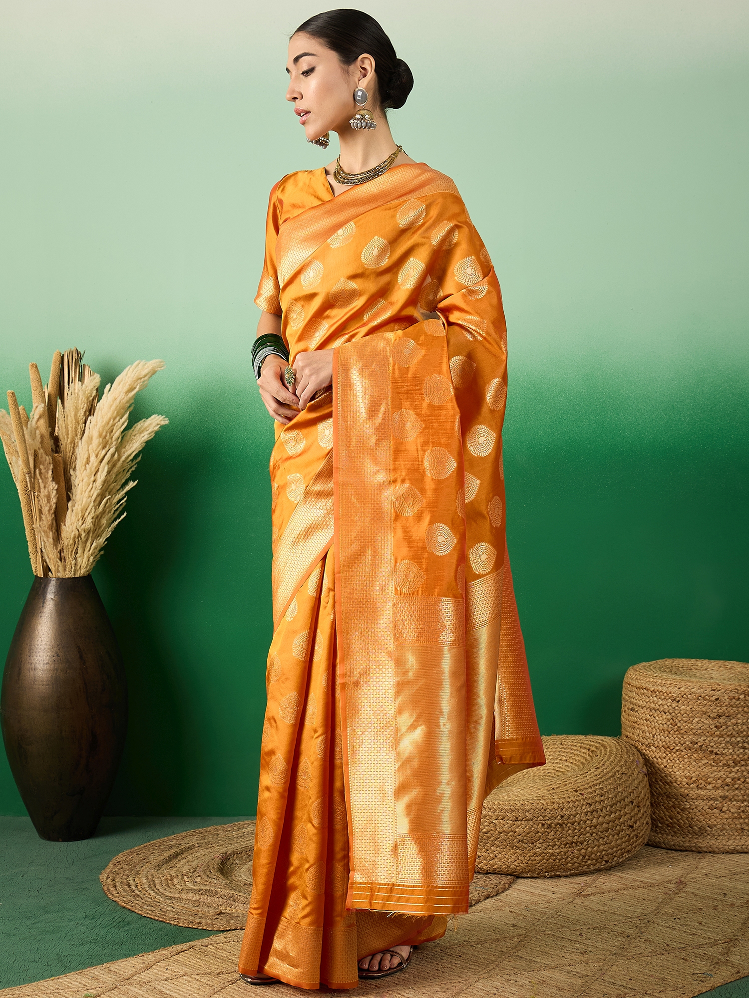 AASTHA FASHION Fashion Dream Womens Orange Banarasi Silk Saree | Soft & Elegant Traditional Wear