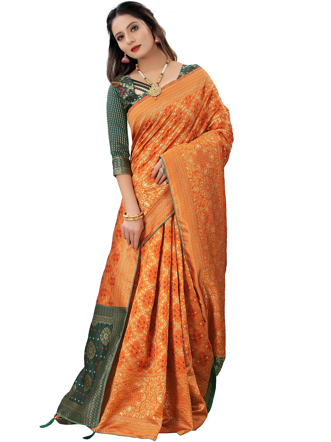 AASTHA FASHION Fashion Dream Womens Orange Cotton Silk Blend Saree | Soft & Elegant Traditional Wear