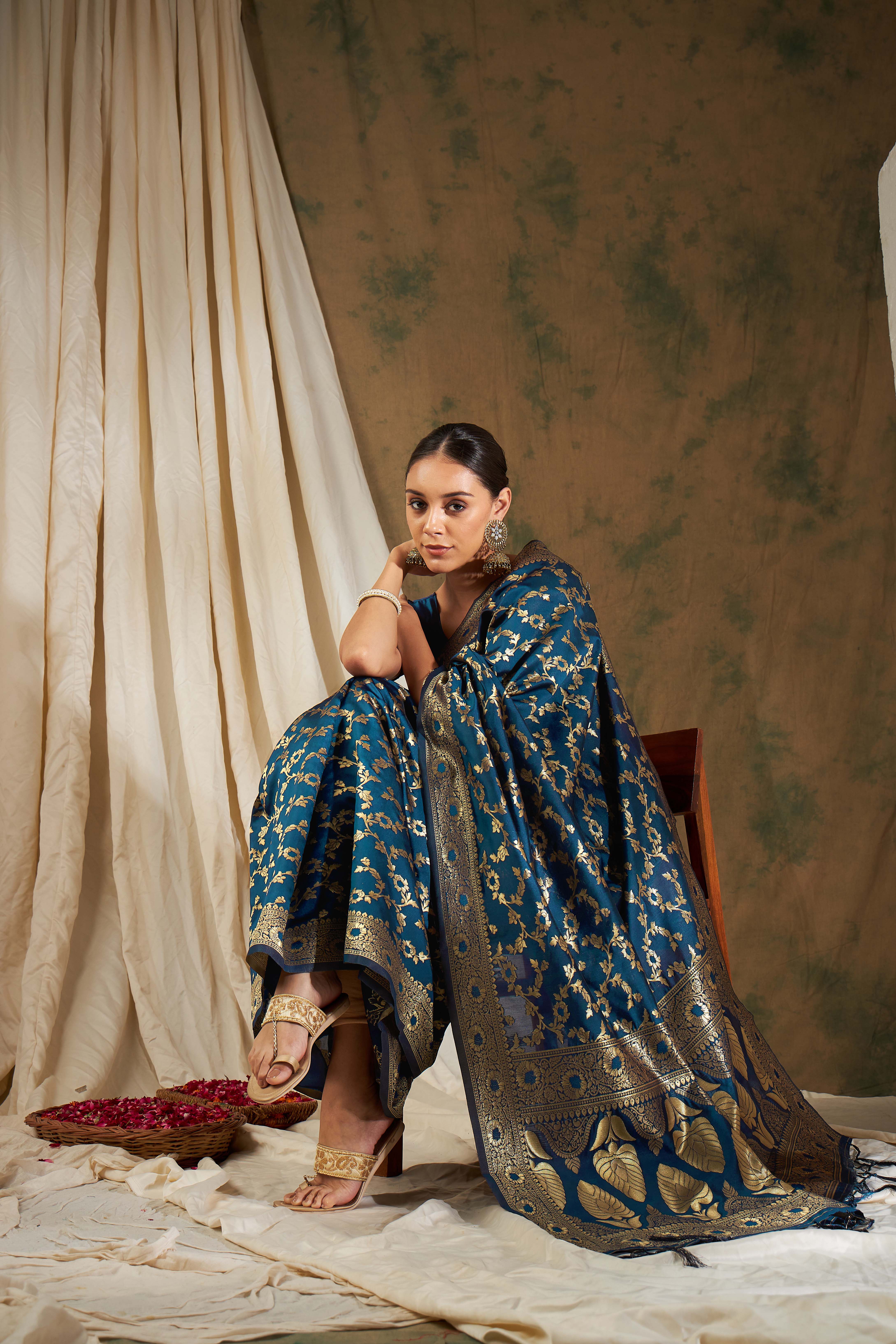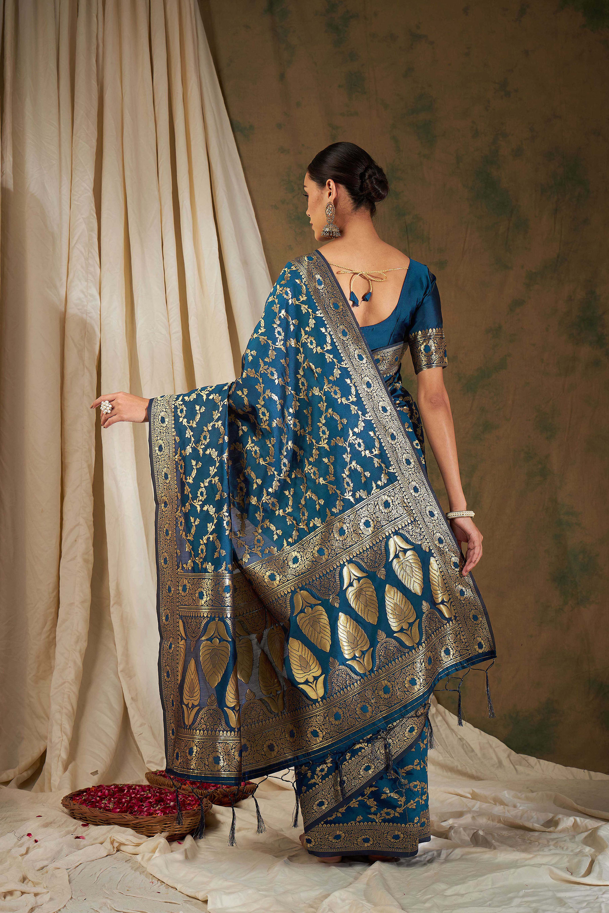 AASTHA FASHION Fashion Dream Womens Petrol Blue Banarasi Silk Saree | Soft & Elegant Traditional Wear