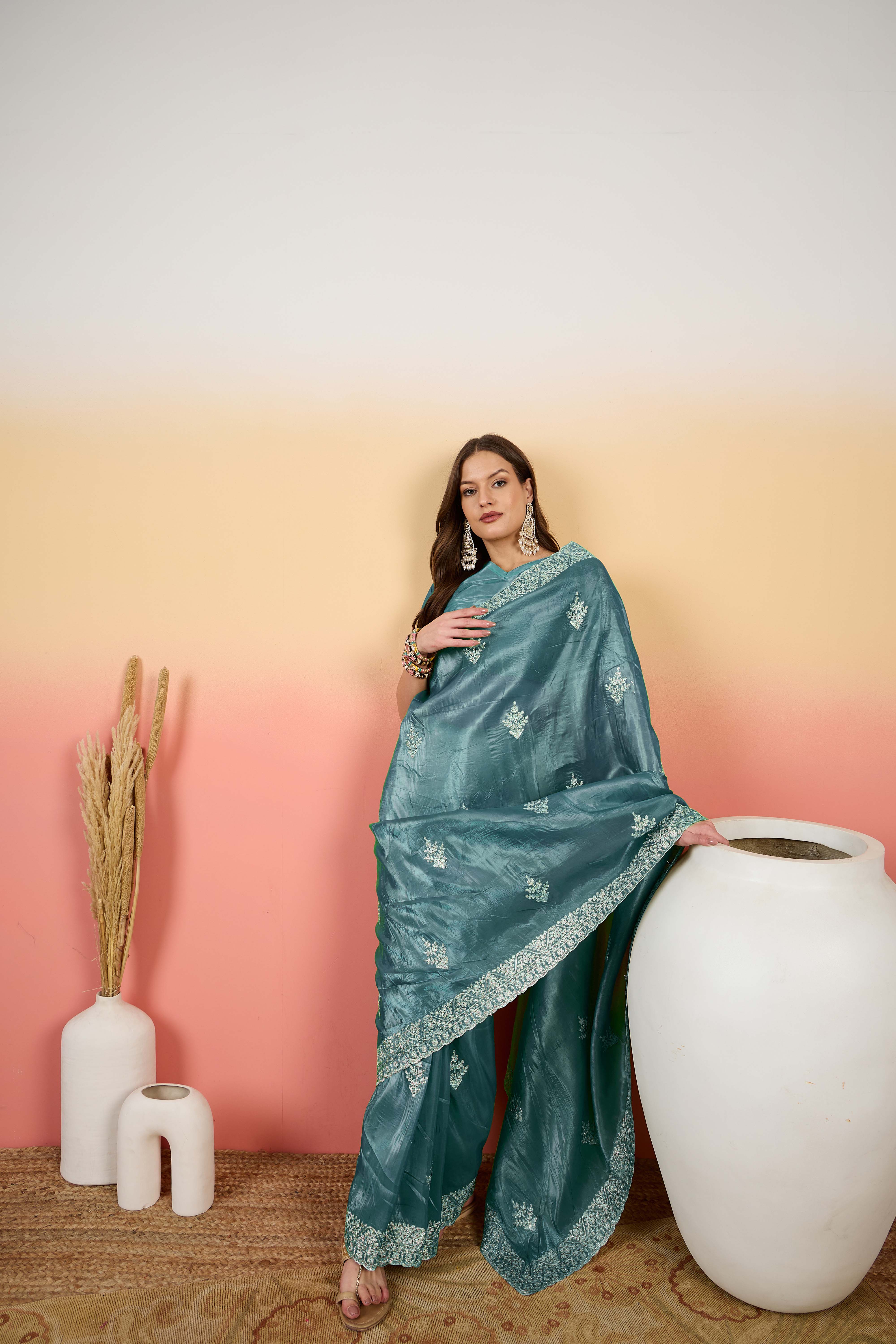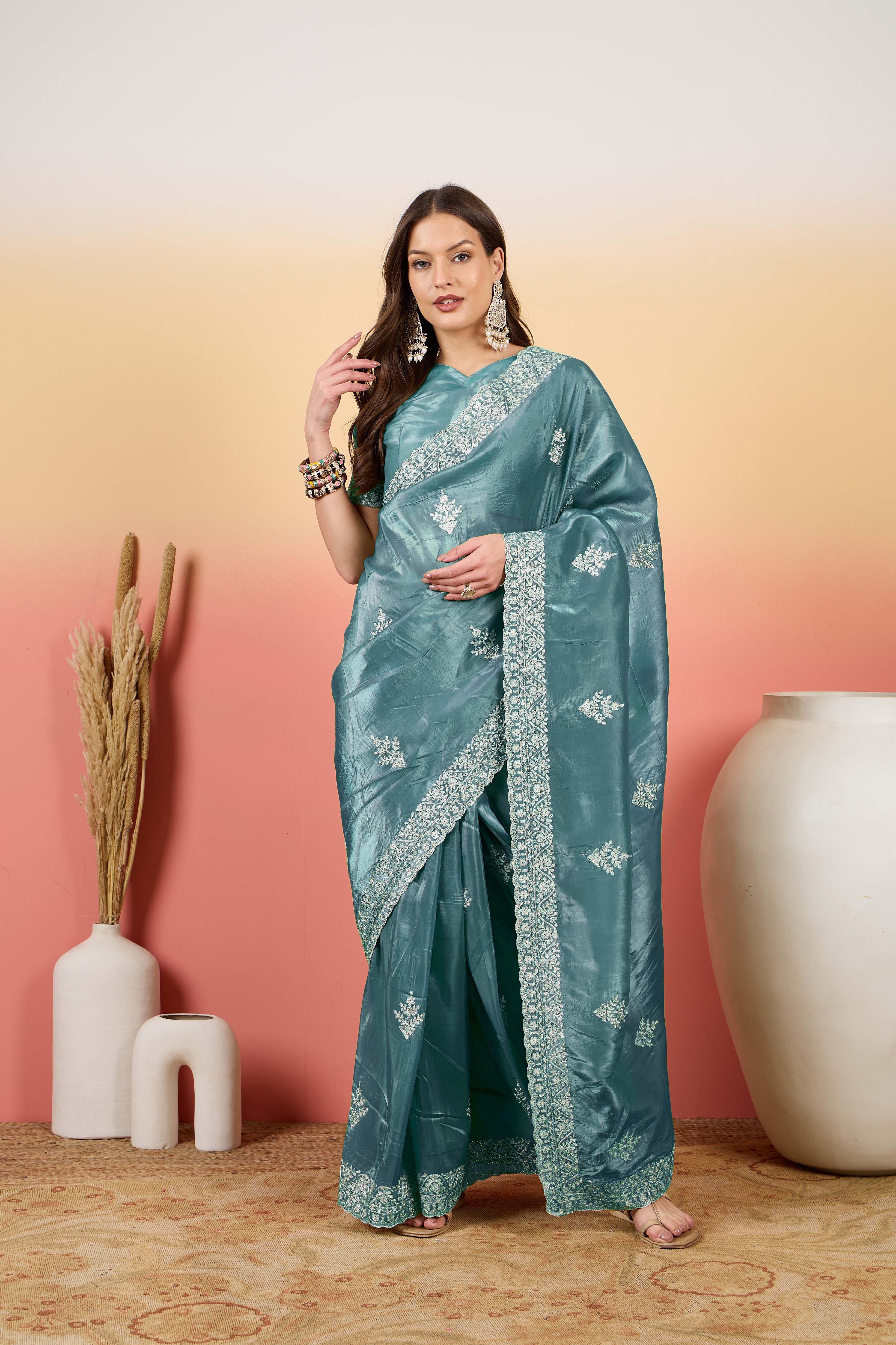 AASTHA FASHION Fashion Dream Womens Petrol Blue Gold Crush Saree | Soft & Elegant Traditional Wear