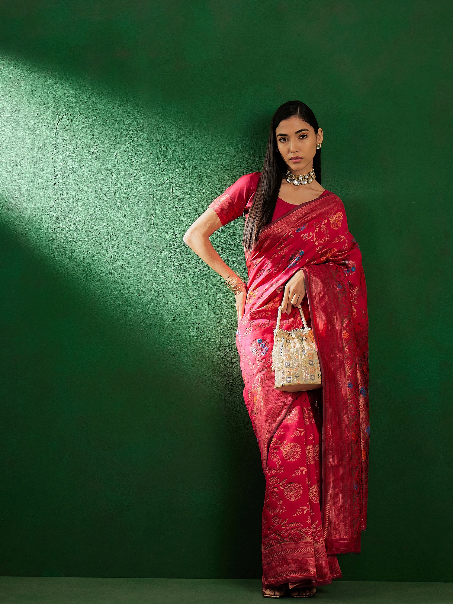 • Saree Fabric-Banarasi Silk ,Blouse Fabric-Banarasi Silk